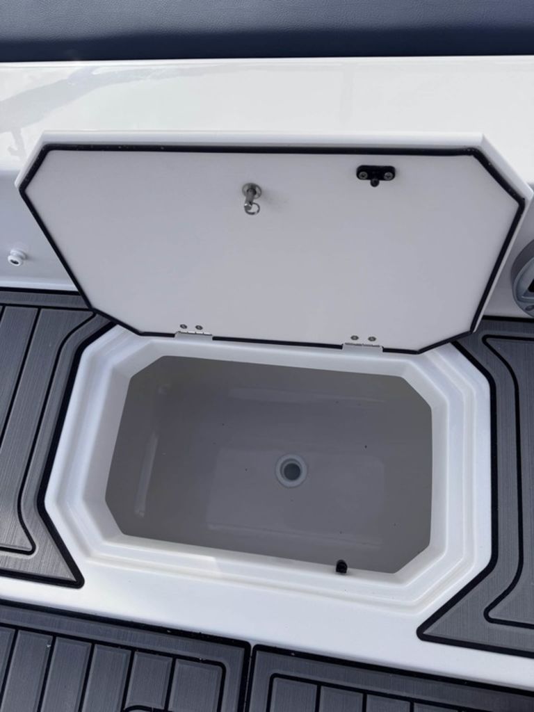 From bow to stern, this model is designed with family-friendly features. The spacious open layout seats up to 14 passengers comfortably, with plush marine-grade upholstery and ergonomic helm seating. Generous storage compartments throughout keep gear, coolers, and water toys neatly tucked away but always within reach.