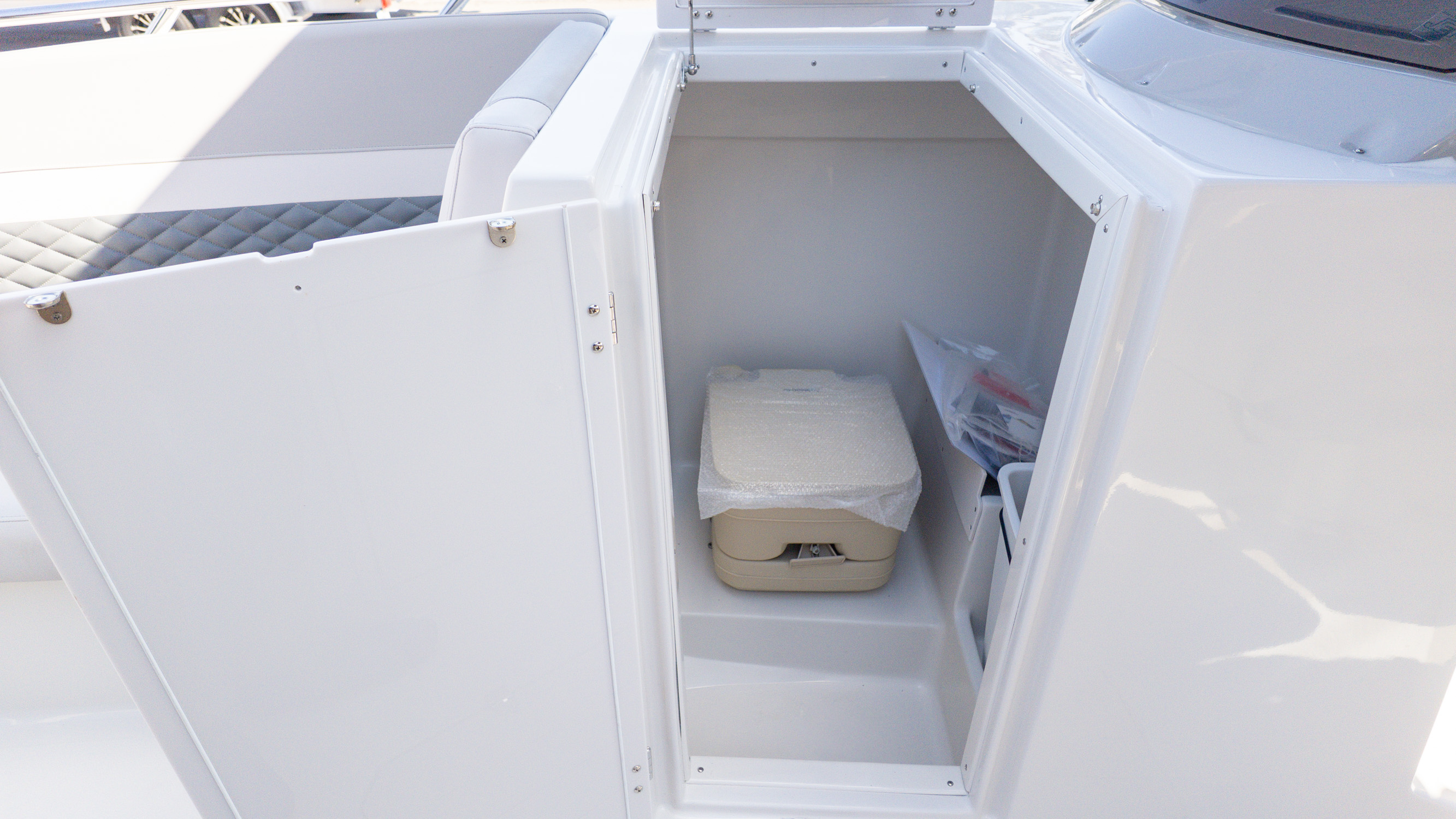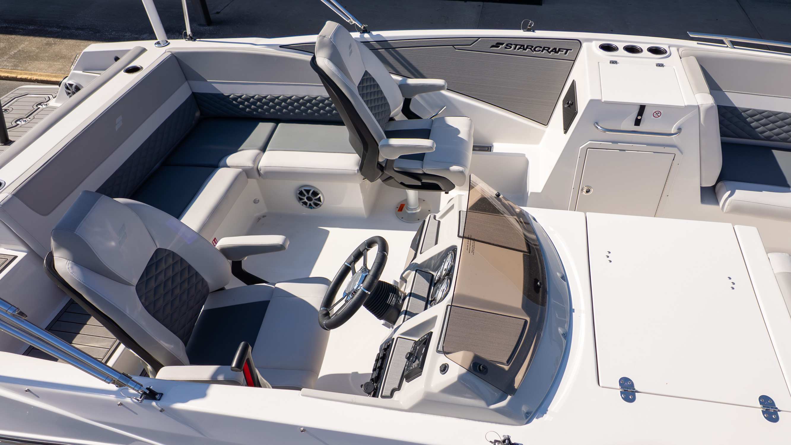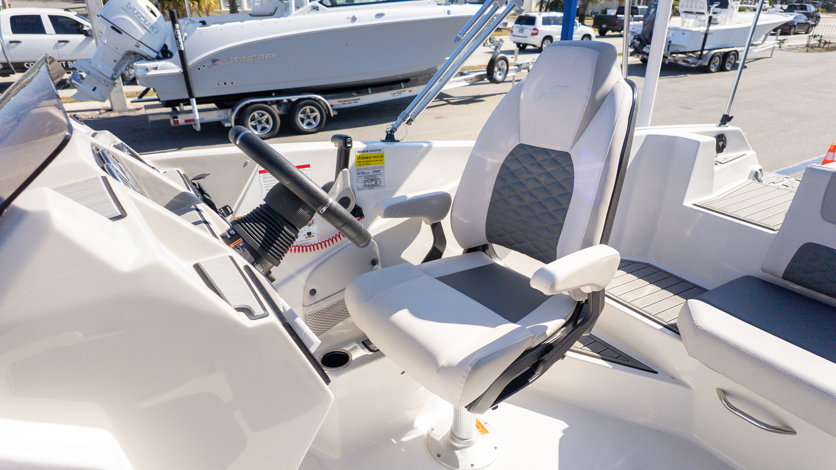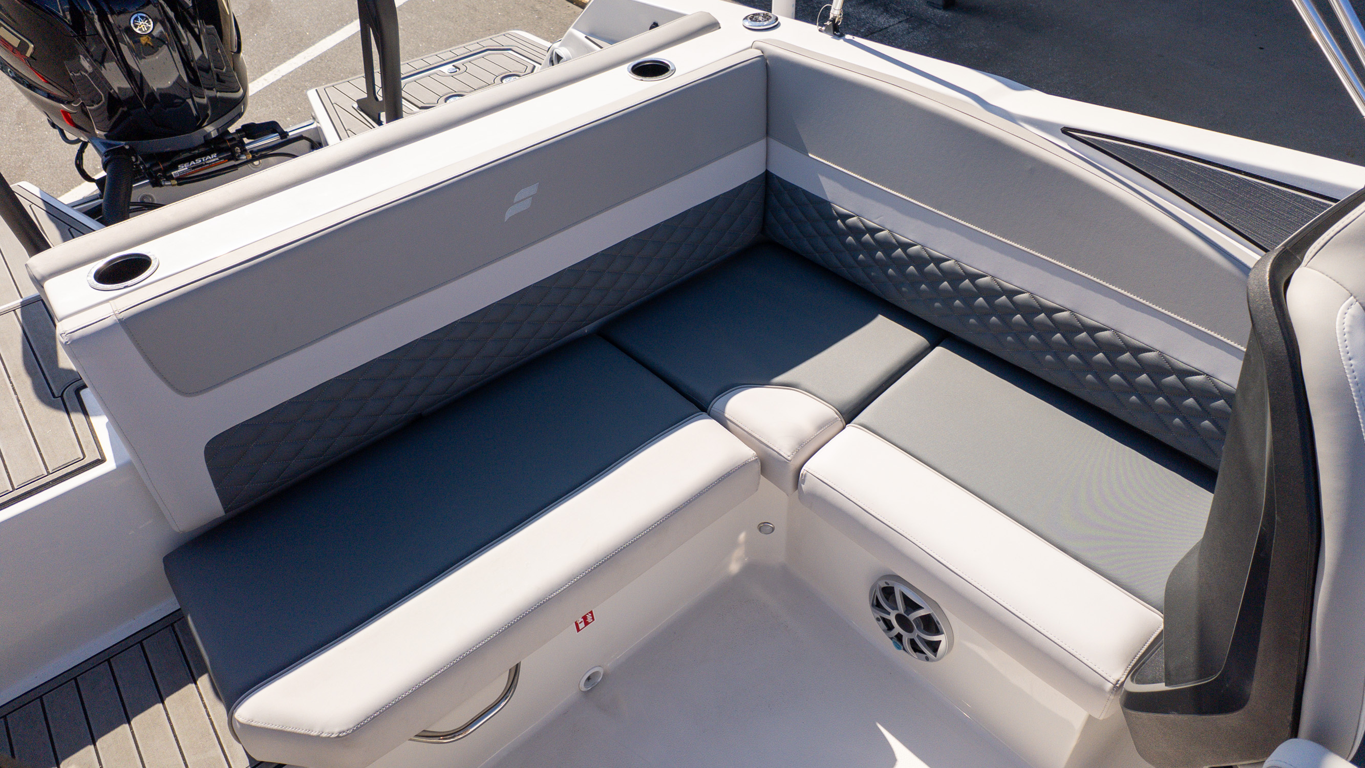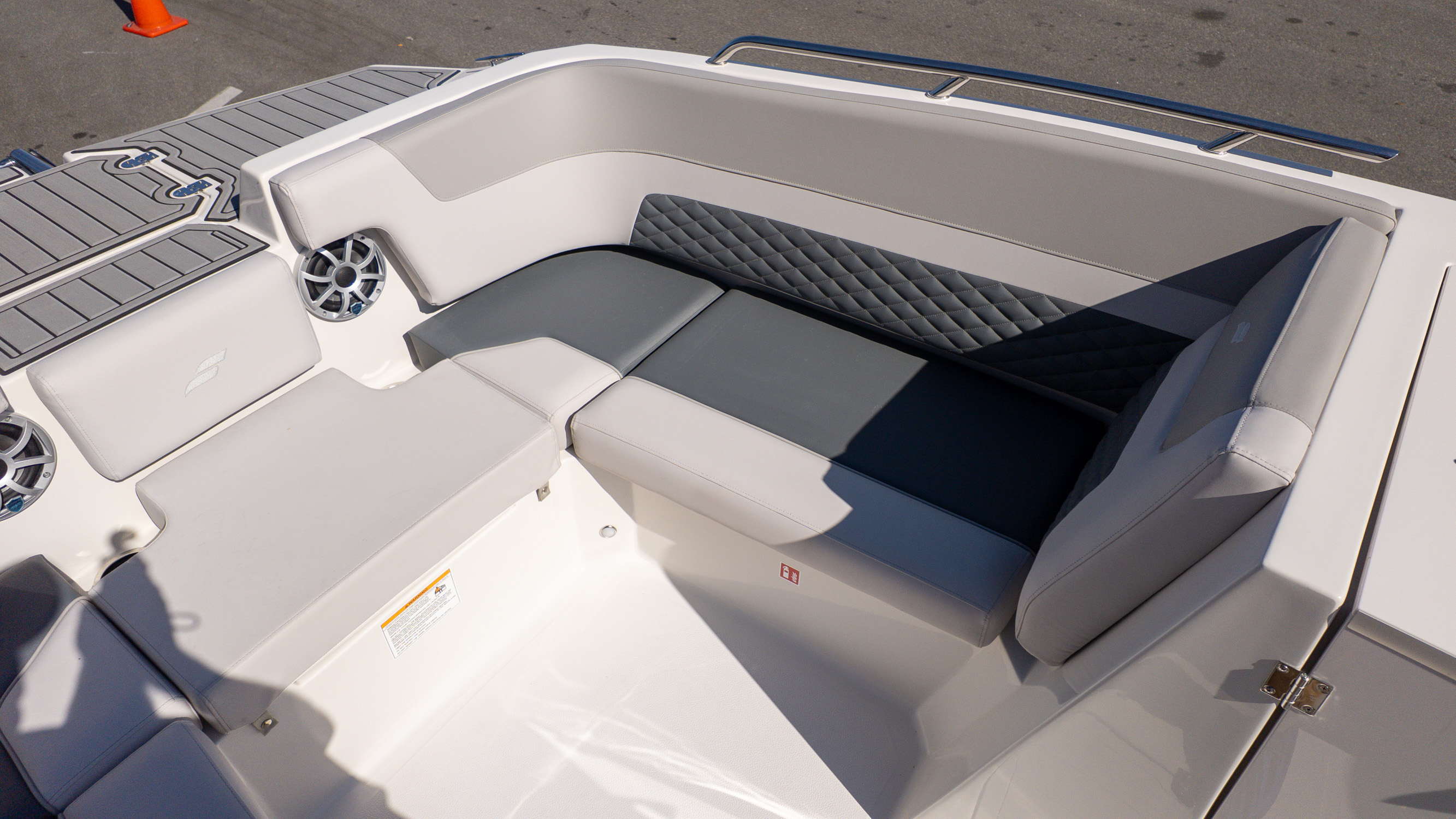 With its clean monochromatic styling, premium finishes, and thoughtful upgrades from the executive package, this is a boat for families who entertain often, friend groups who stay out all day, and boaters who want versatility without compromise. It’s bold, social, and always ready for whatever the day turns into.