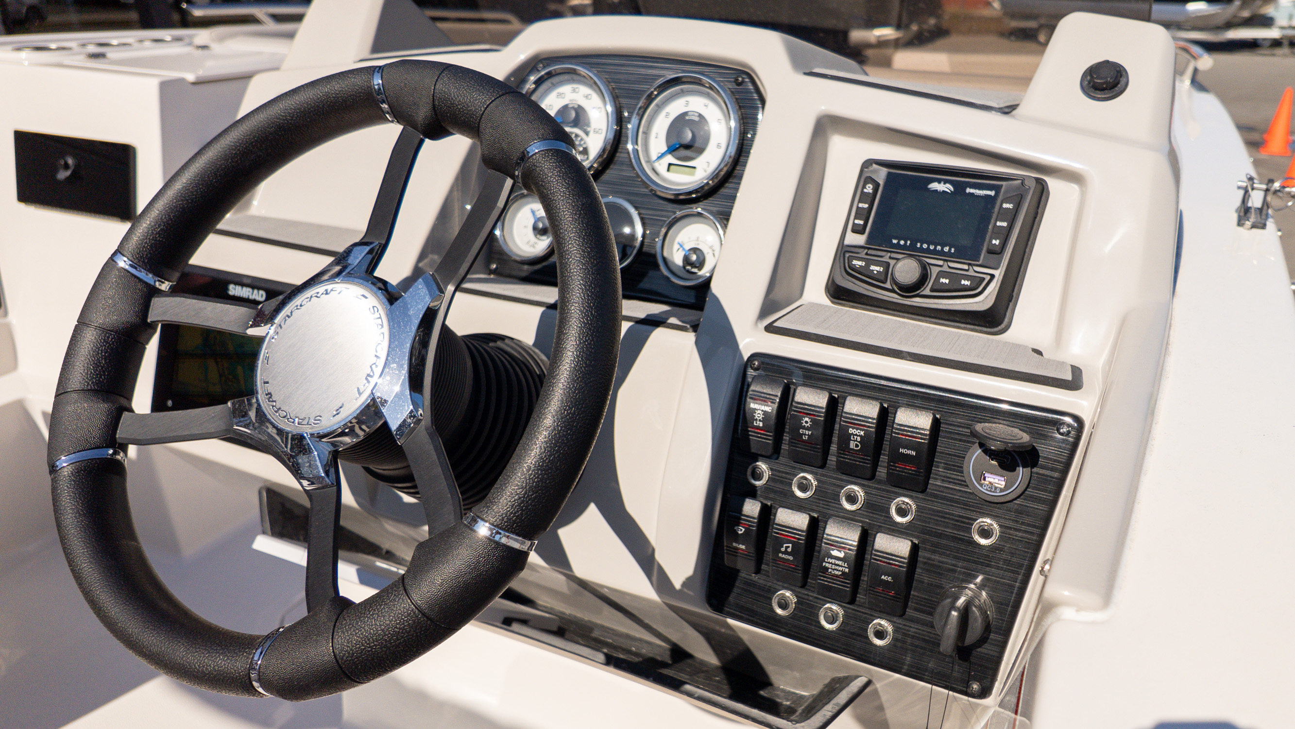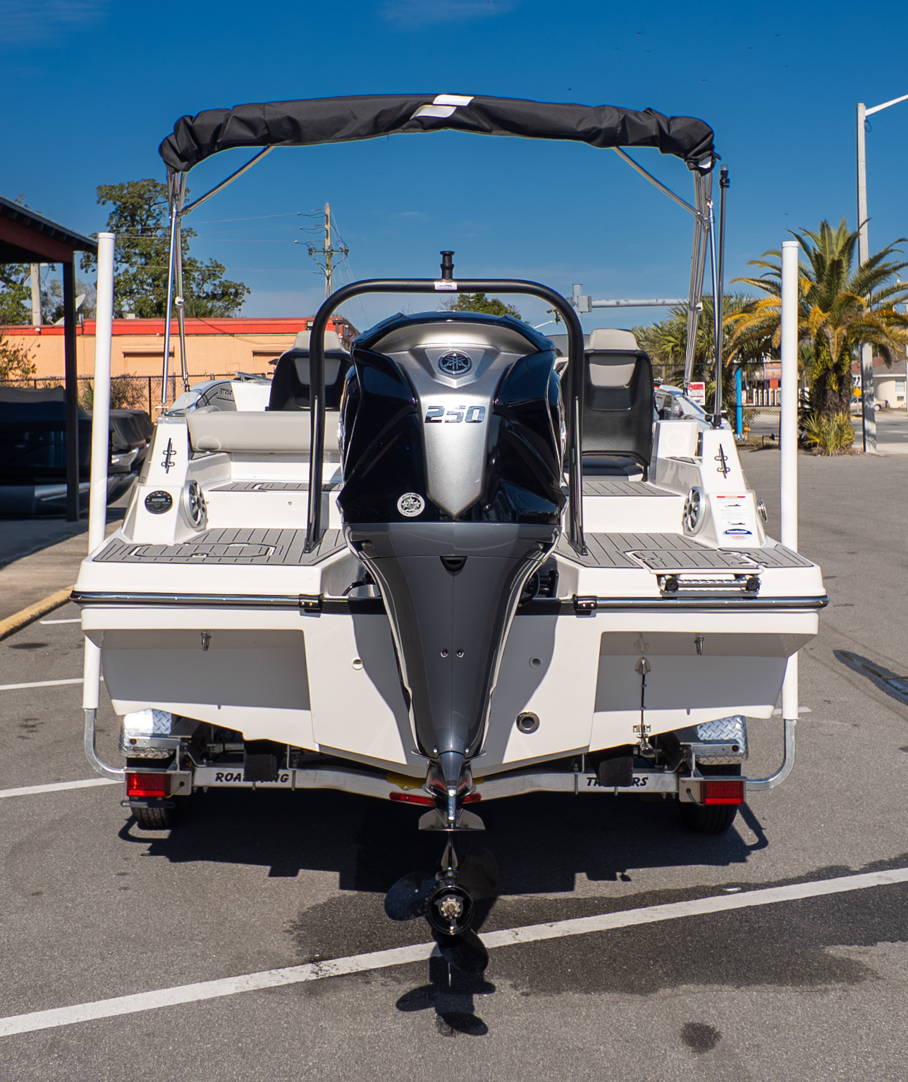 This boat really shines for active days on the water. It’s built for tubing runs, watersports sessions, and quick acceleration when the mood strikes, all powered by a Yamaha 250 that delivers smooth, confident performance. The upgraded audio system brings the energy, turning floating afternoons into full-on hangouts with music carrying across the water.