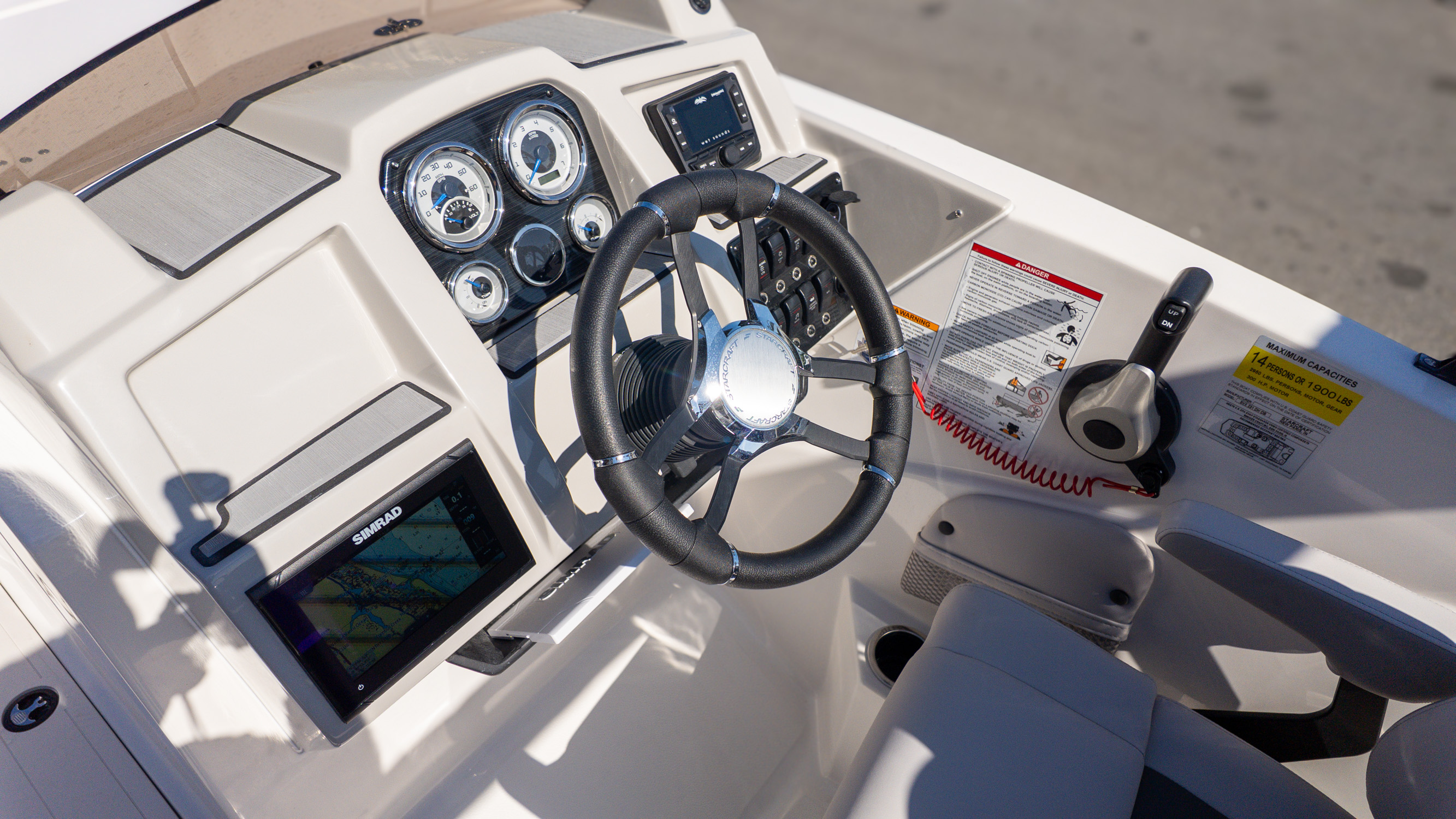 This is the boat for boaters who want it all turned up a notch. Big water confidence, serious social space, and a polished look that feels just as right pulling into a busy sandbar as it does cruising wide-open stretches of water. The dual helm layout invites conversation, letting everyone stay connected whether you’re underway or kicked back enjoying the moment.