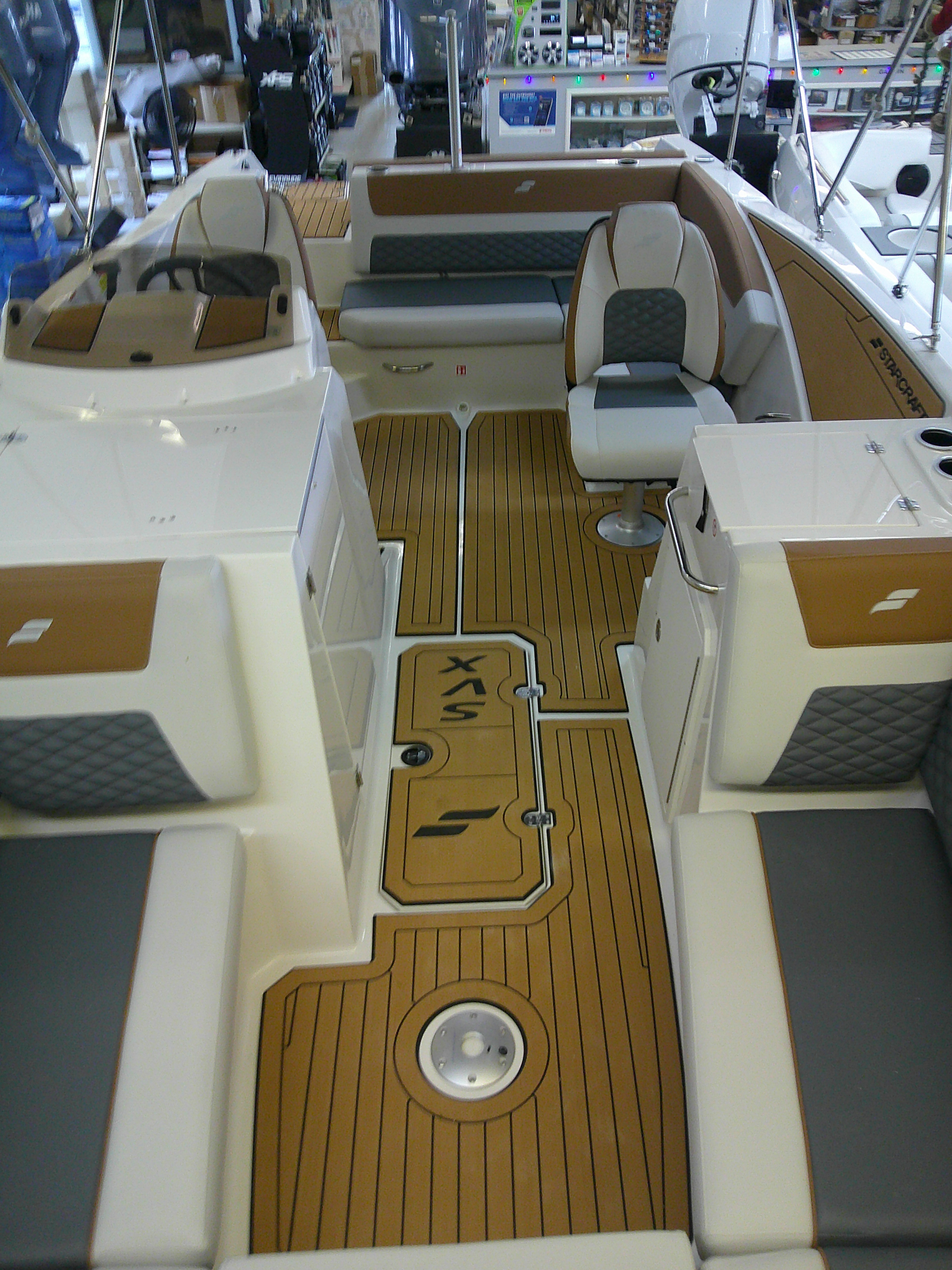 Brand new starcraft deckboat. Model is a SVX 231 OB DH. Boat Comes with a yamaha F250XB. Full Stainless bimini top. Full cockpit cover. Marine matting. Equipped with the executive package. Dual livewells. Front table kit. LED docking lights. Ski Tow Pylon. Wet Sound audio plus package w/ 4 speakers. Transom Shower. Boat will run 60MPH equipped with a F250XB. Other engines can be installed but it is packaged at this price with the F250.