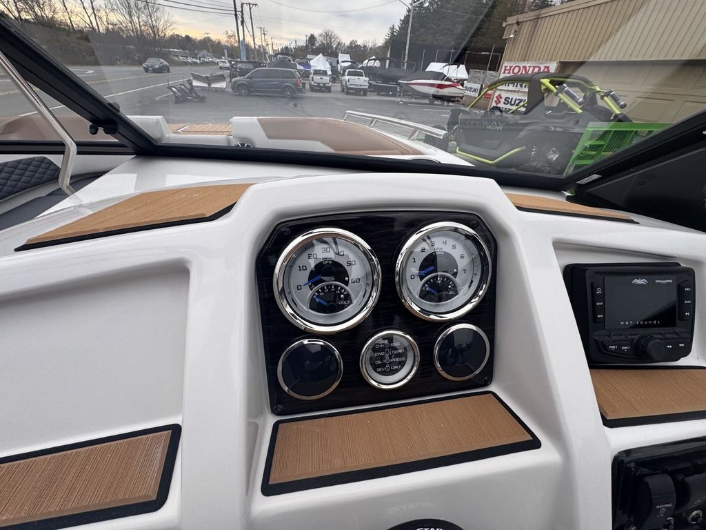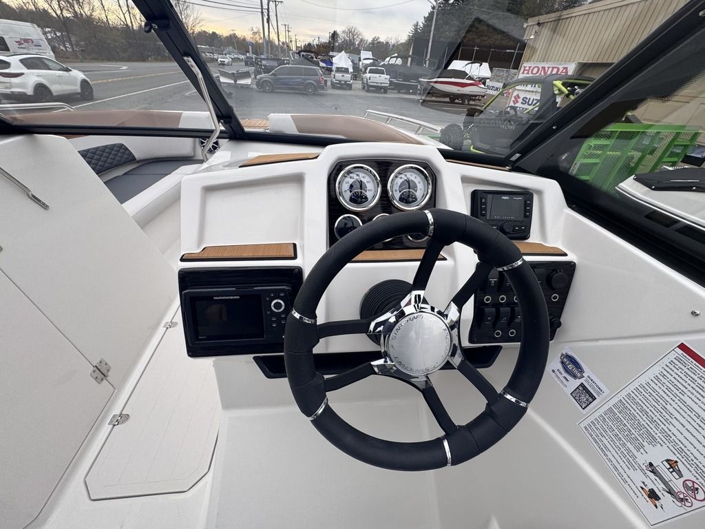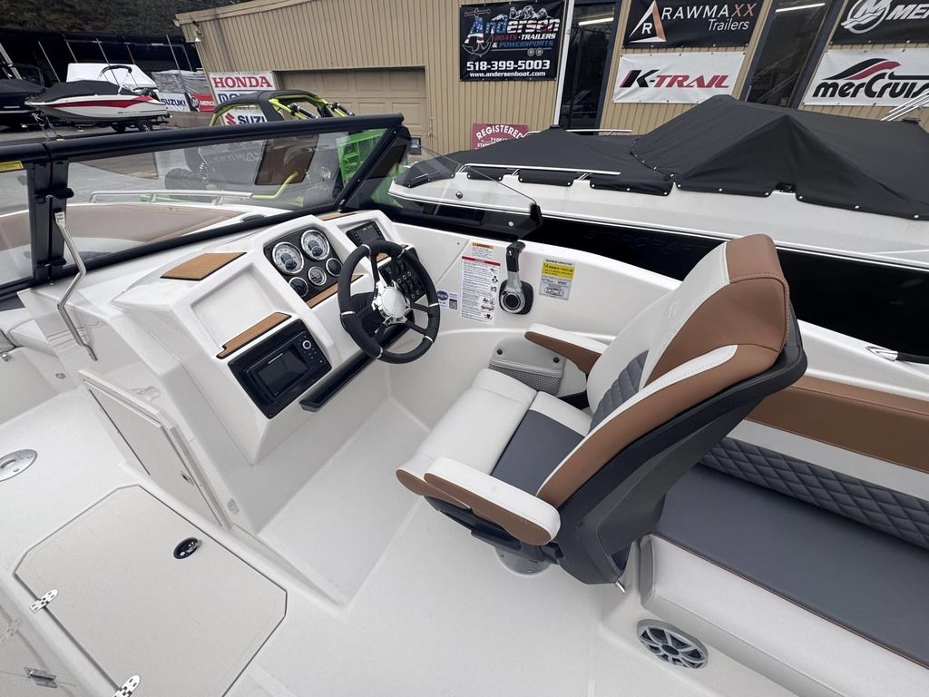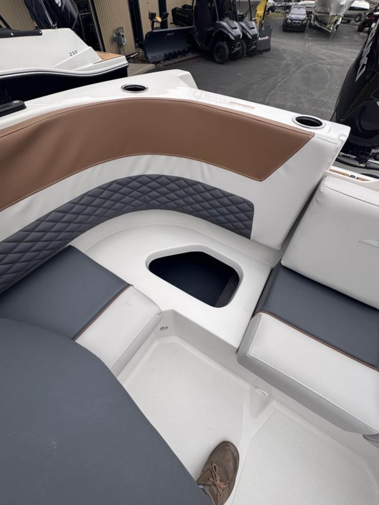 With its wide 102-inch beam and open floor plan, the SVX 210 DC offers spacious seating for up to 14 passengers, featuring plush marine-grade upholstery and wraparound lounges perfect for entertaining or relaxing. Ample in-deck and under-seat storage keeps your gear organized and easily accessible, while the deep cockpit and full windshield provide a safe, comfortable ride for everyone on board.
