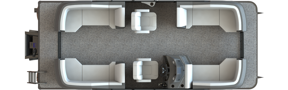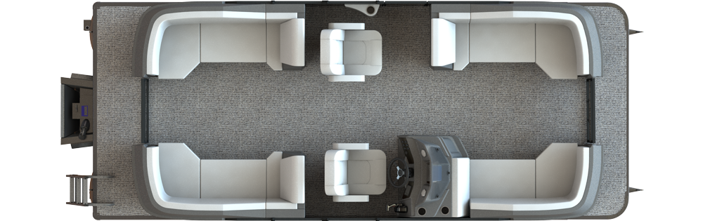 With four wraparound couches and dual helm chairs, the VX 22 R DH creates three comfortable and convenient conversation areas, perfect for relaxing and entertaining on the water. Built with roto-molded corners, this sleek matte black pontoon is made to withstand the elements while maintaining its top-tier style.