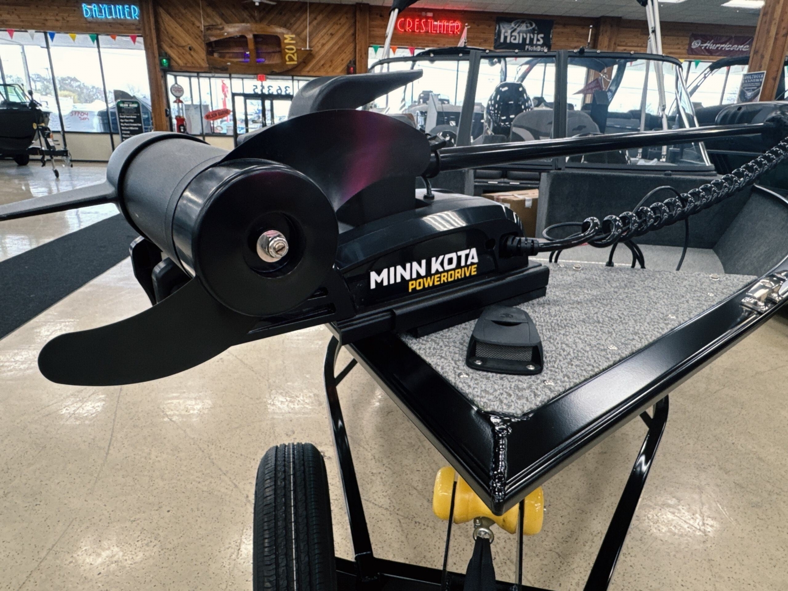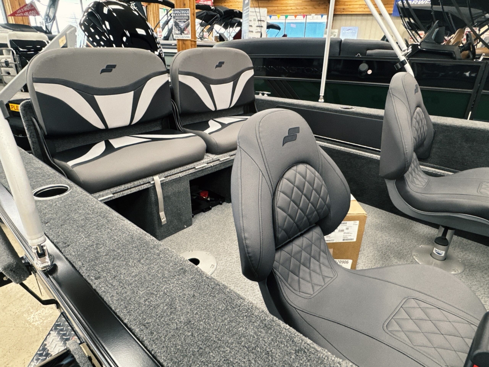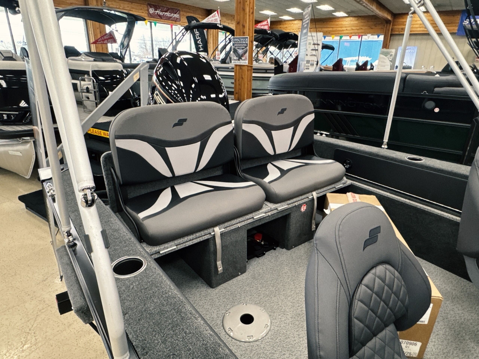 Powered by a Yamaha VMAX 90hpIncludes: Helix 555pd Trolling MotorFisherman's topTrailerable ratchet cover2 bank battery chargerstern flipdown benchswim platform with ladder
