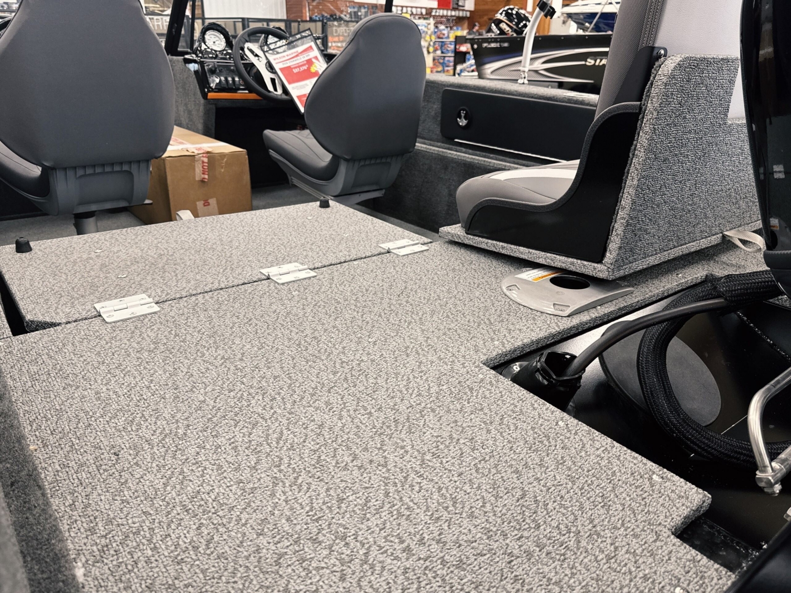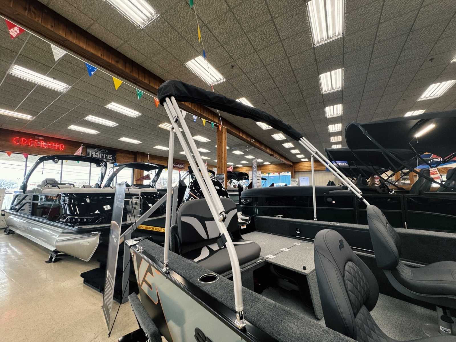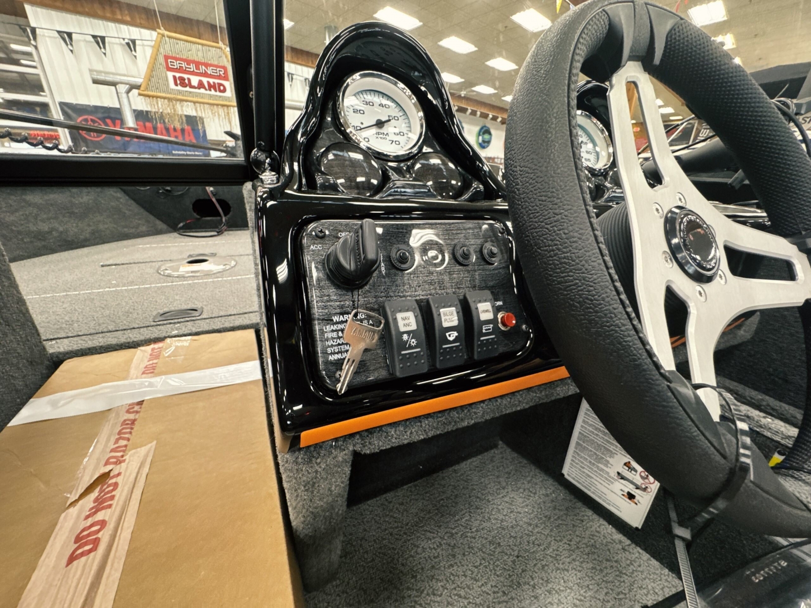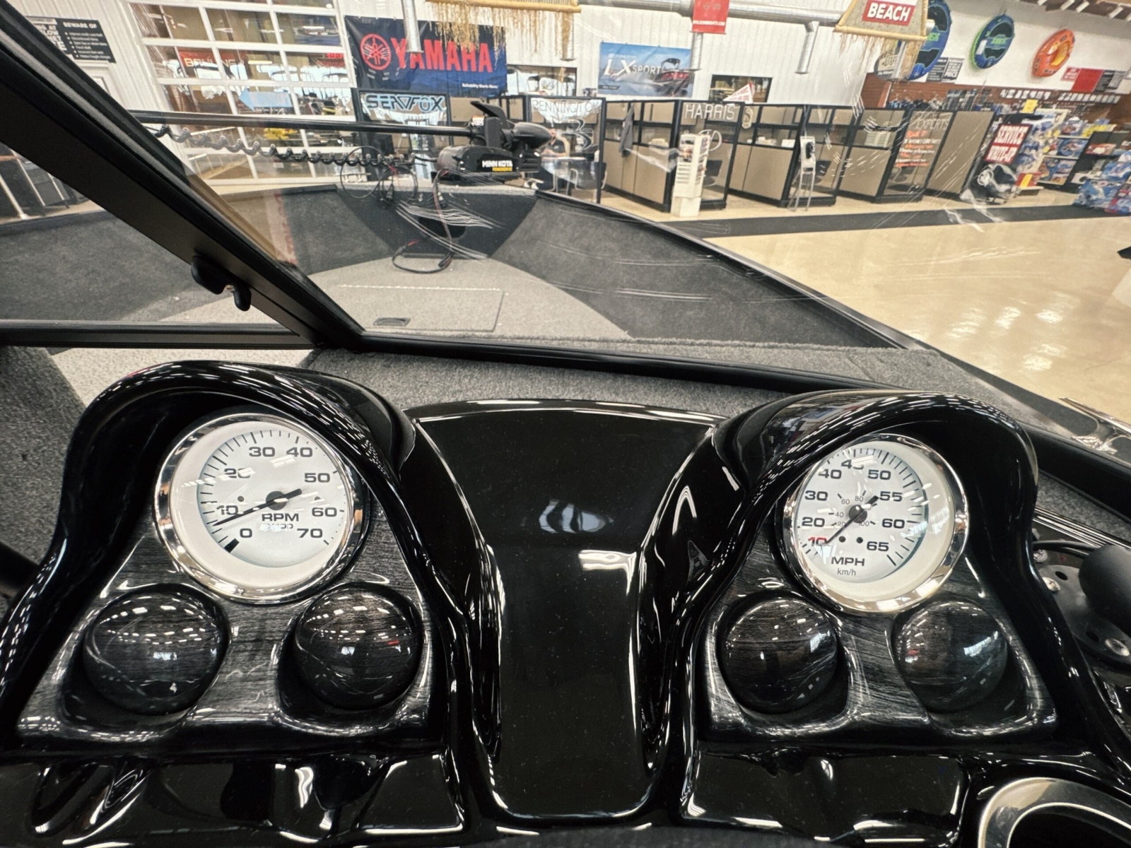 Powered by a Yamaha VMAX 90hpIncludes: Helix 555pd Trolling MotorFisherman's topTrailerable ratchet cover2 bank battery chargerstern flipdown benchswim platform with ladder