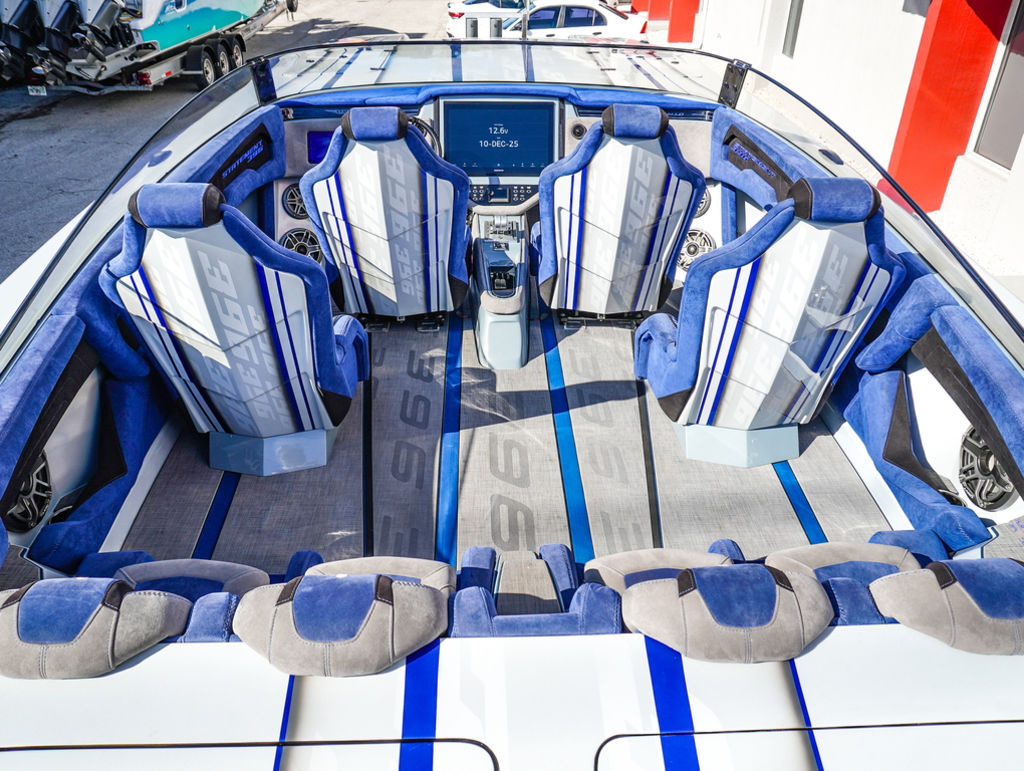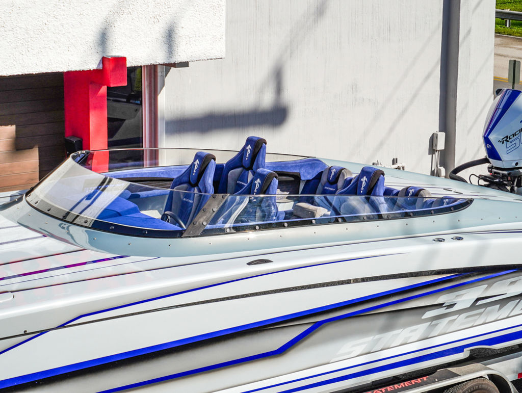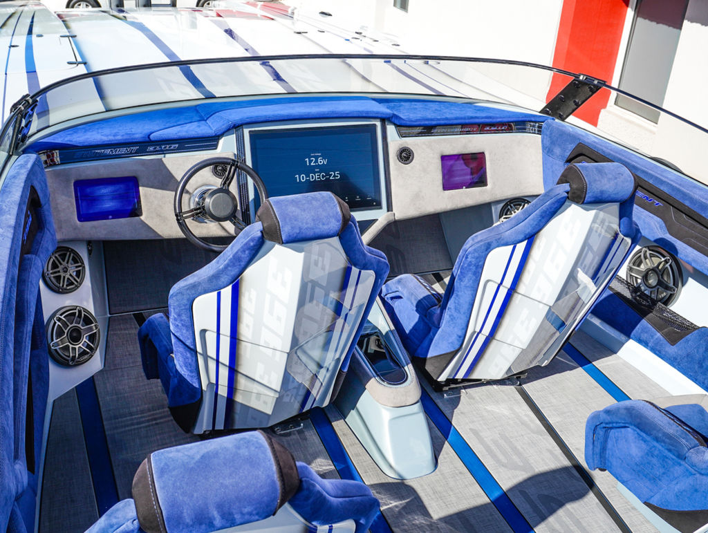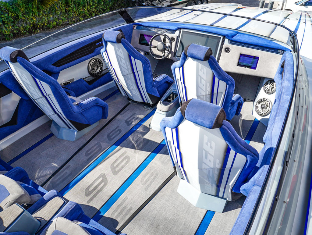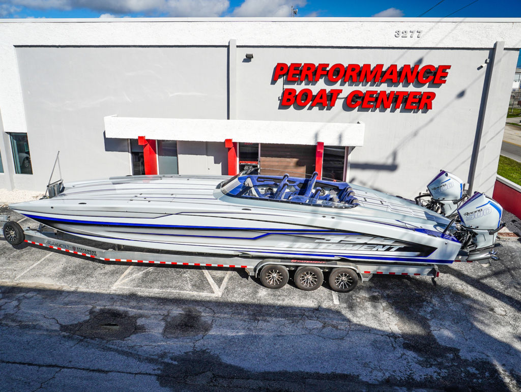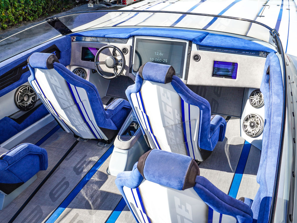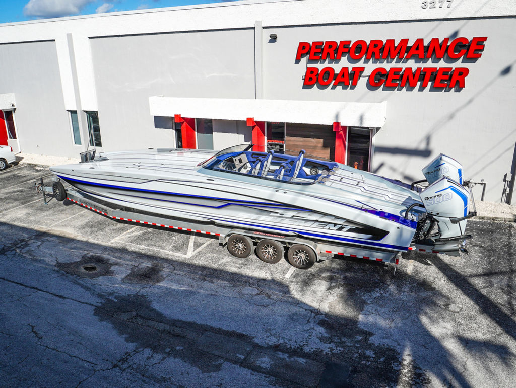2026 Statement 396 Powered by Twin Mercury Racing 500R's w/ only 72 hours! 8 Seat Cockpit configuration w/ Pop-up Bolsters on all 8 Seats, Alcantera Interior, Seadek Flooring, Blackout Hardware, HUGE JL Audio Stereo, 22inch Garmin Chartplotter GPS, 2 Mercury Vessel Views, Dash Blowers, Accent Lighting throughout, Under Water lighting, Swim ladder, Cockpit cover, and Custom Triple Axle Aluminum Trailer Included!