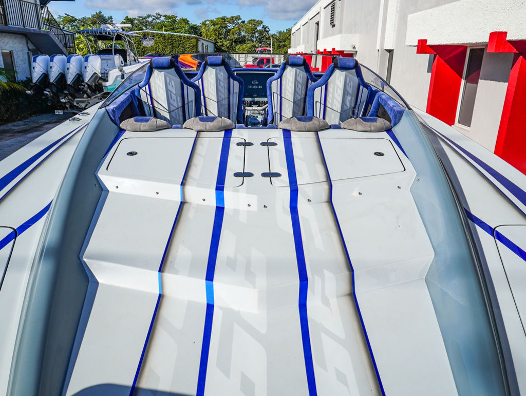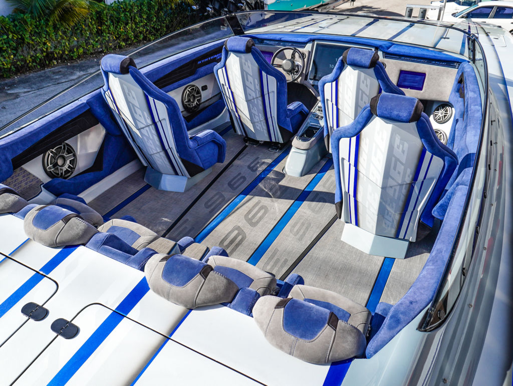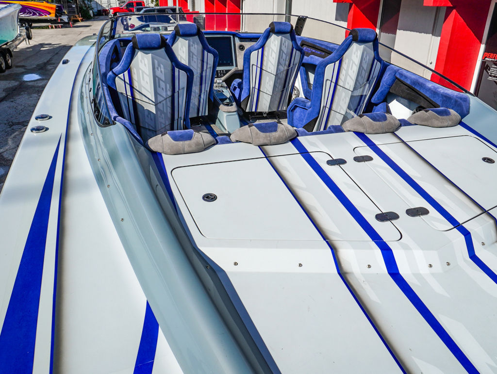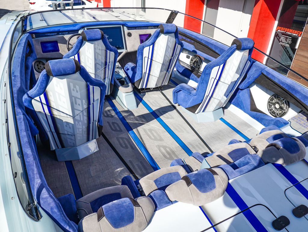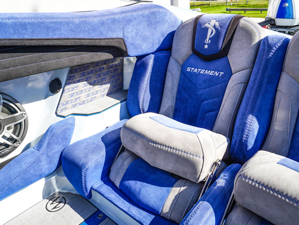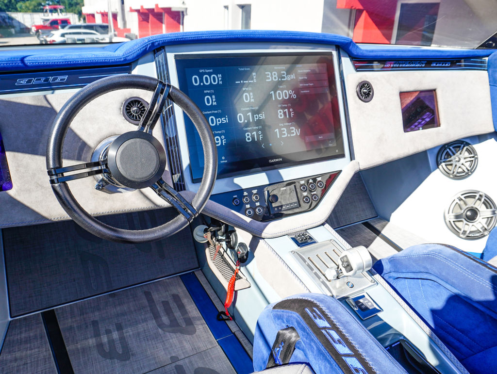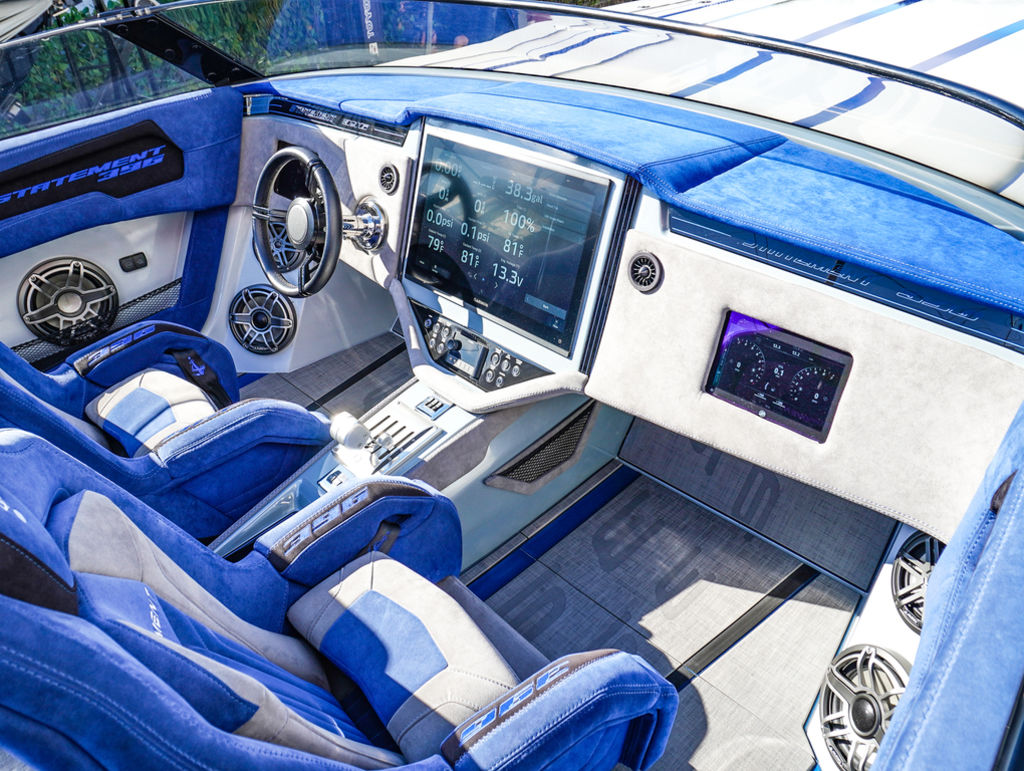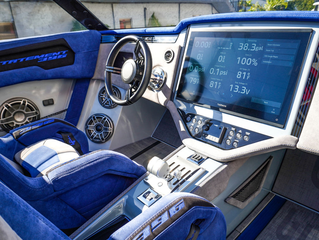 2026 Statement 396 Powered by Twin Mercury Racing 500R's w/ only 72 hours! 8 Seat Cockpit configuration w/ Pop-up Bolsters on all 8 Seats, Alcantera Interior, Seadek Flooring, Blackout Hardware, HUGE JL Audio Stereo, 22inch Garmin Chartplotter GPS, 2 Mercury Vessel Views, Dash Blowers, Accent Lighting throughout, Under Water lighting, Swim ladder, Cockpit cover, and Custom Triple Axle Aluminum Trailer Included!