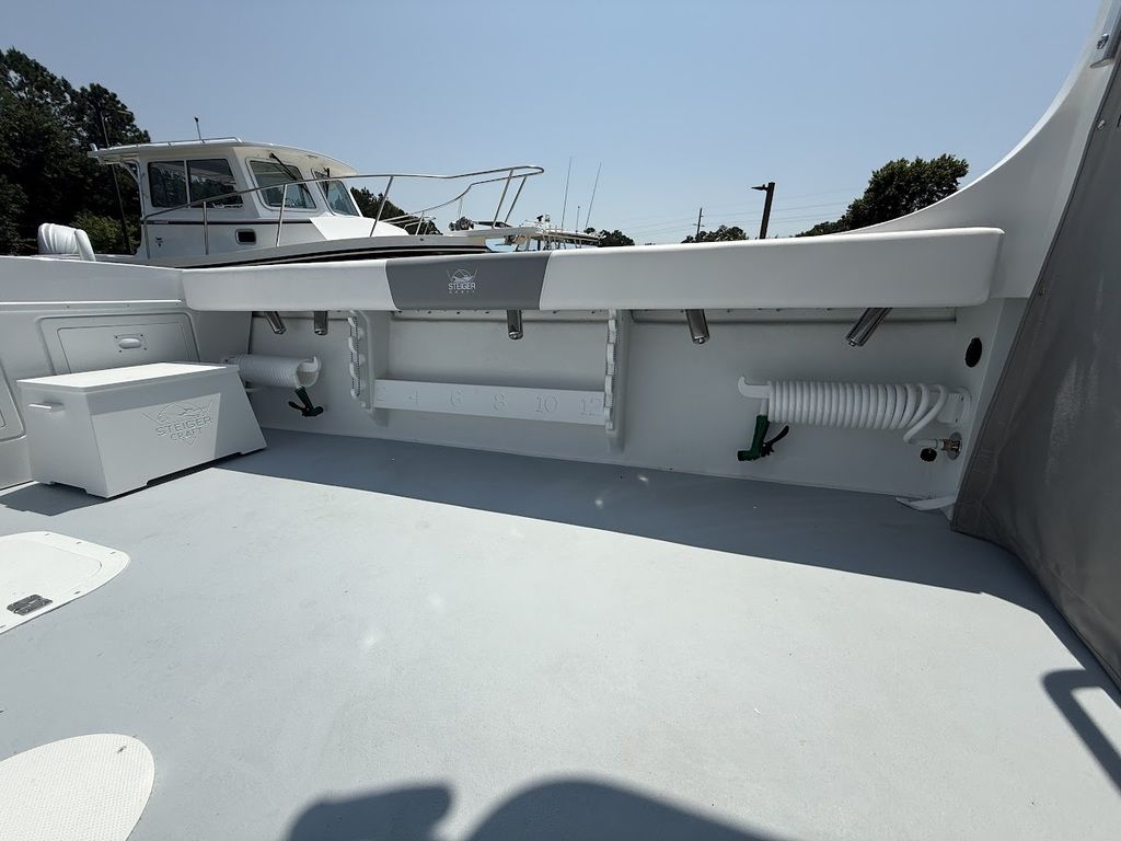 Steiger Craft is thrilled to announce our redesigned 28 Fisherman. This tried and true model is an incredible fishing machine and has been updated with brand new features. Walk into the cabin and notice the newly designed dash which is ergonomically better, giving you an enhanced and improved view. Its angled in such a way that you can view the dash from the back of the boat. The new 28 Fisherman has an increased live well, and is just as large as our 31 models. A much larger cockpit space has been incorporated to give you the ample space needed for fishing. The Steiger Craft 28 Fisherman will get you to the fishing grounds and back fast, its economically reasonable and offers the same incredible fishability as all of our other models. The 28 Fisherman comes standard with twin 250 Yamaha’s which are upgradeable to 300’s.