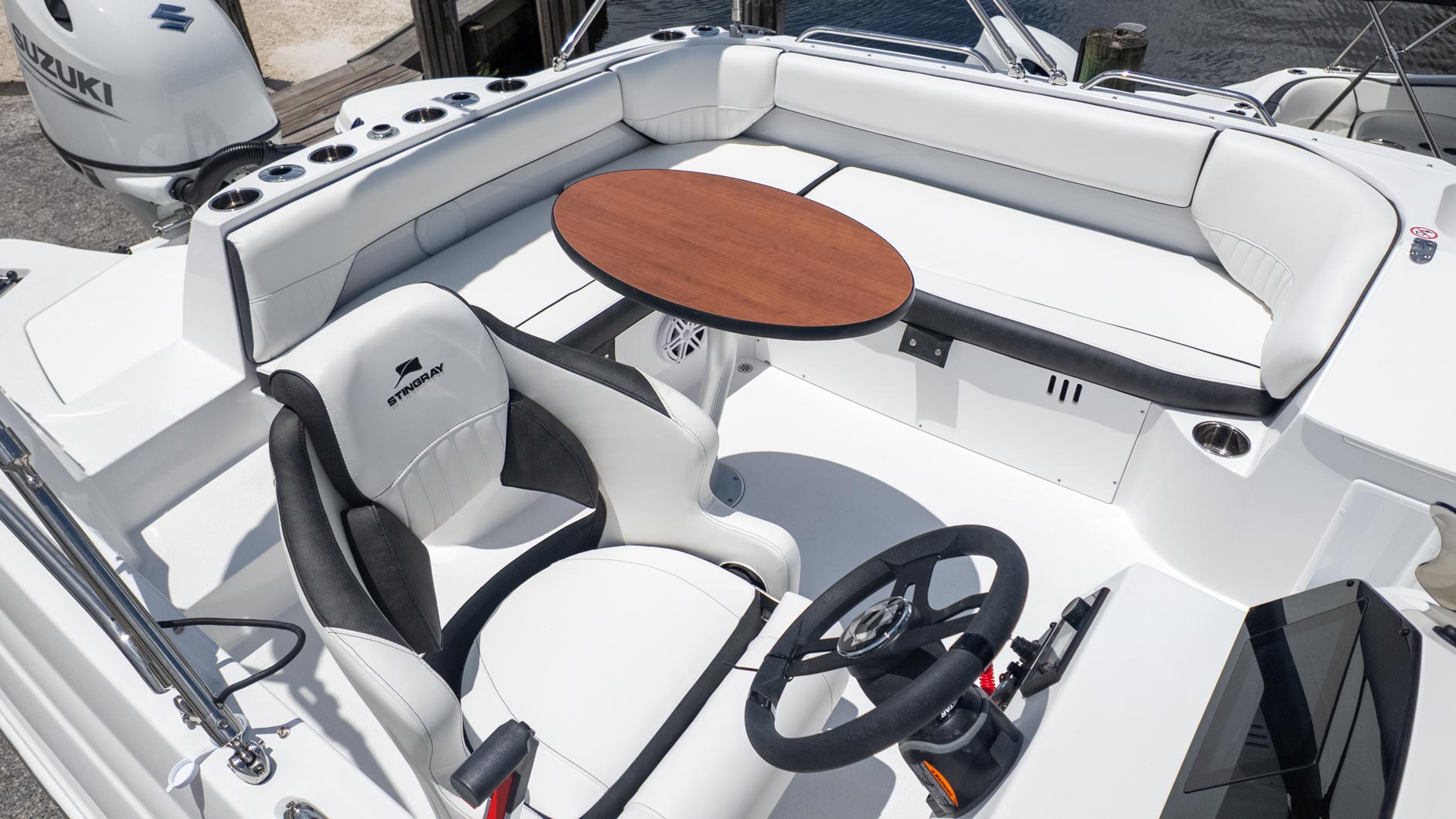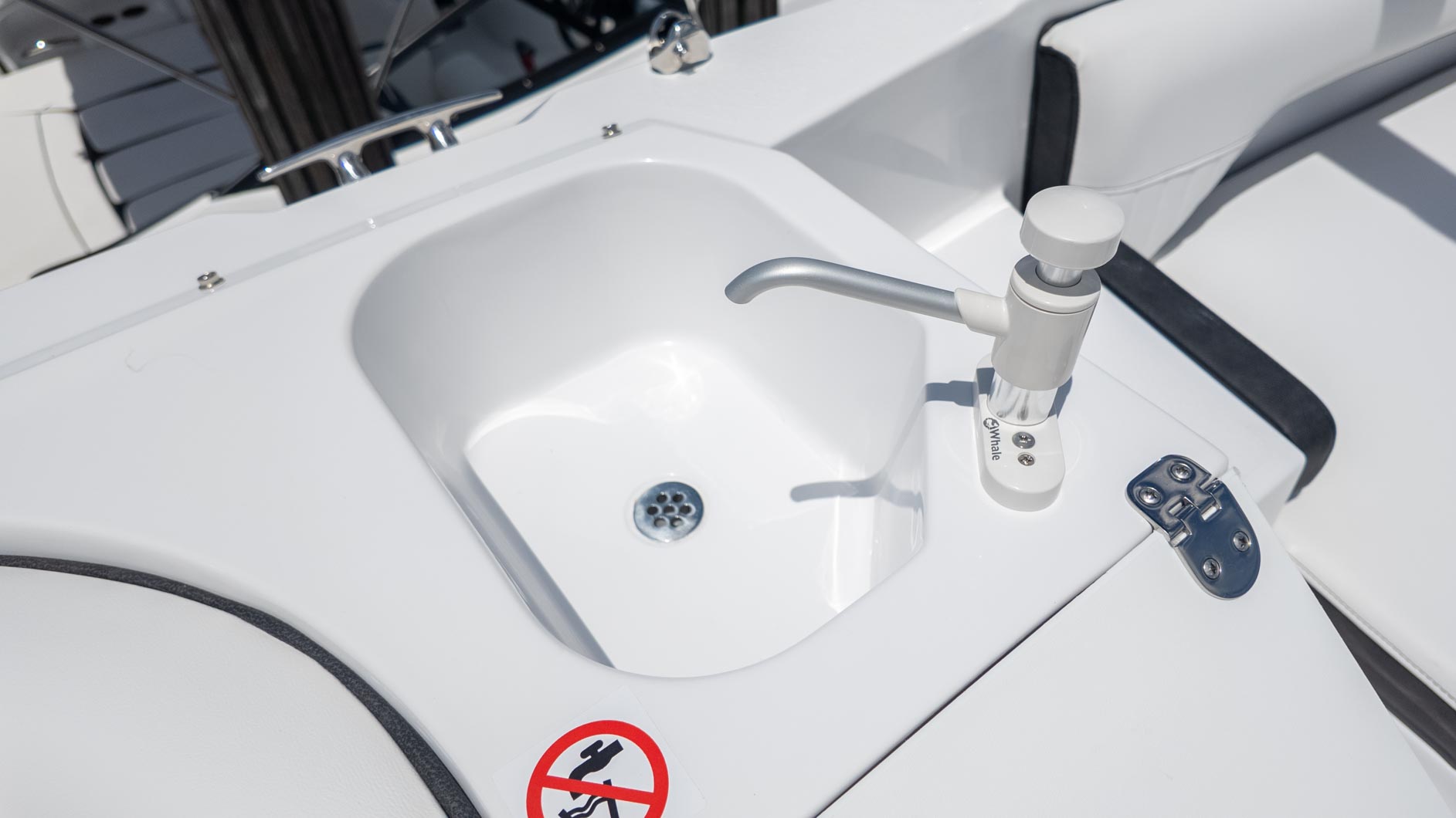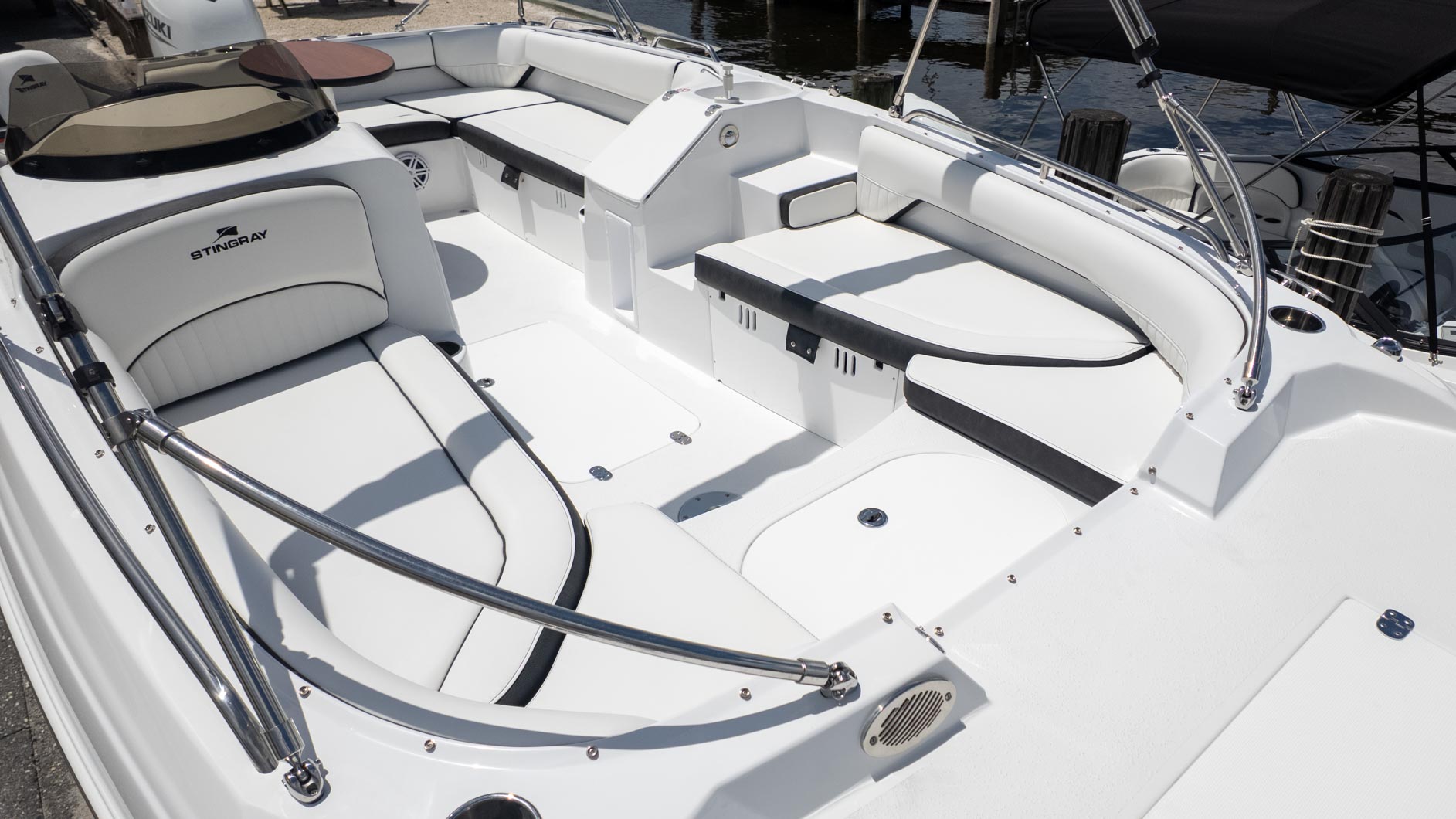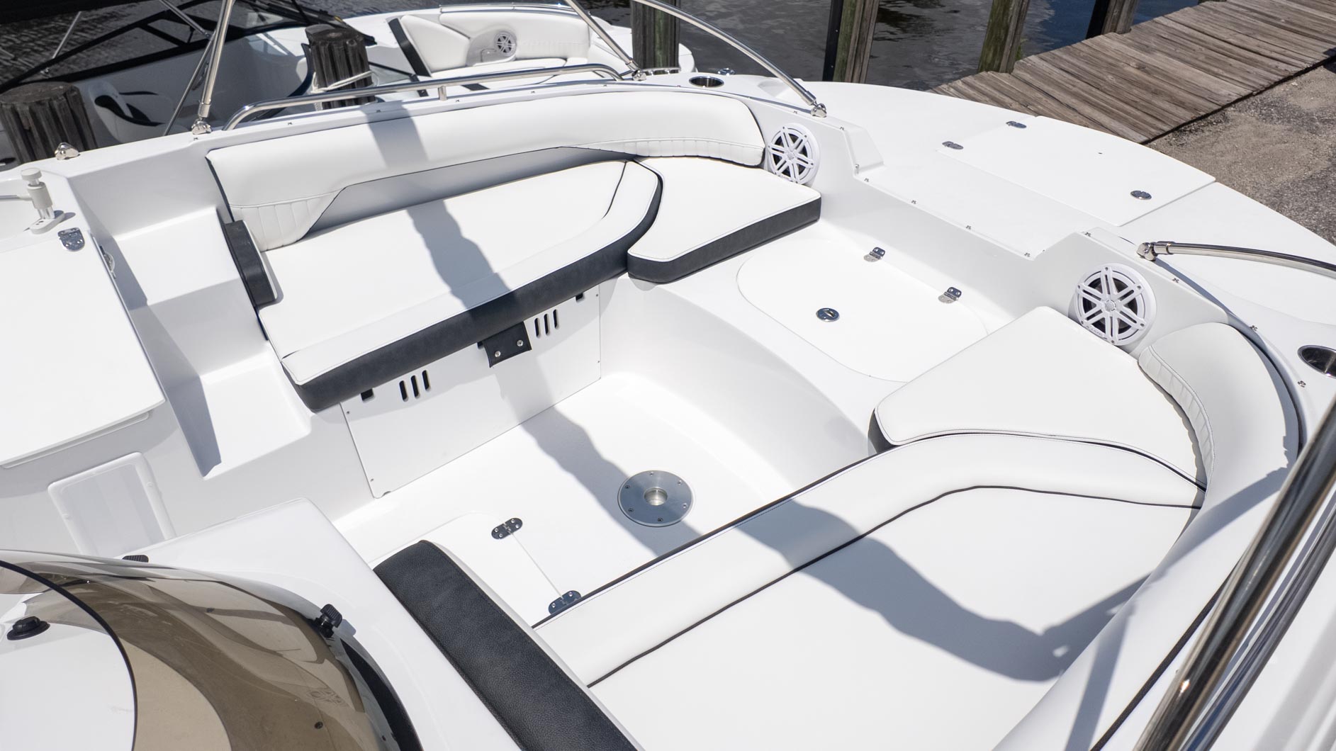 For the water sports enthusiasts, the removable stainless steel ski pole is a game-changer, promising endless hours of wakeboarding and tubing thrills. When it's time to relax, the cockpit table floor mount(s) is perfect for a shoreside picnic, and the freshwater sink in the cockpit is a convenient touch. This boat is truly built for making the most of every moment on the water.