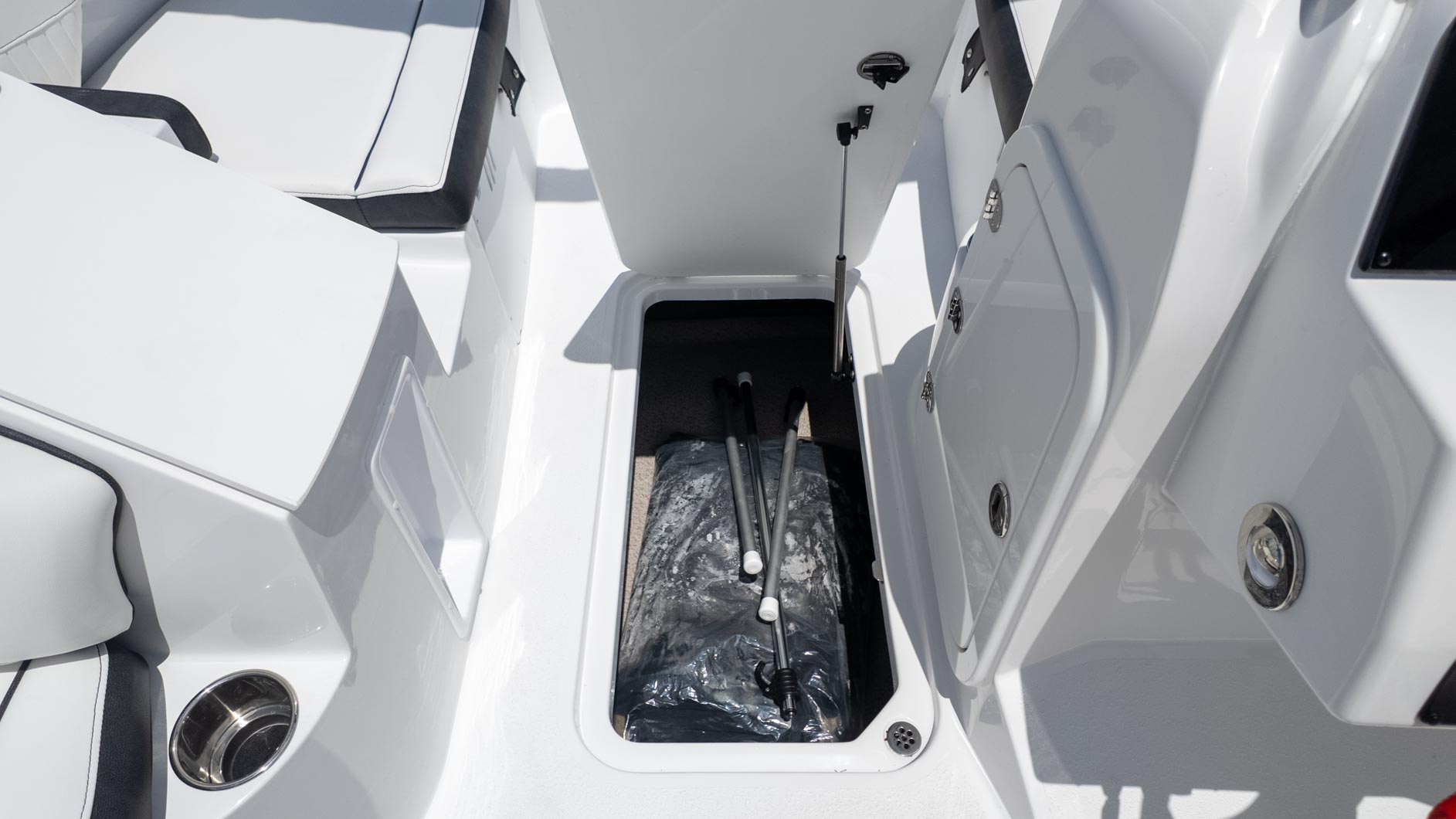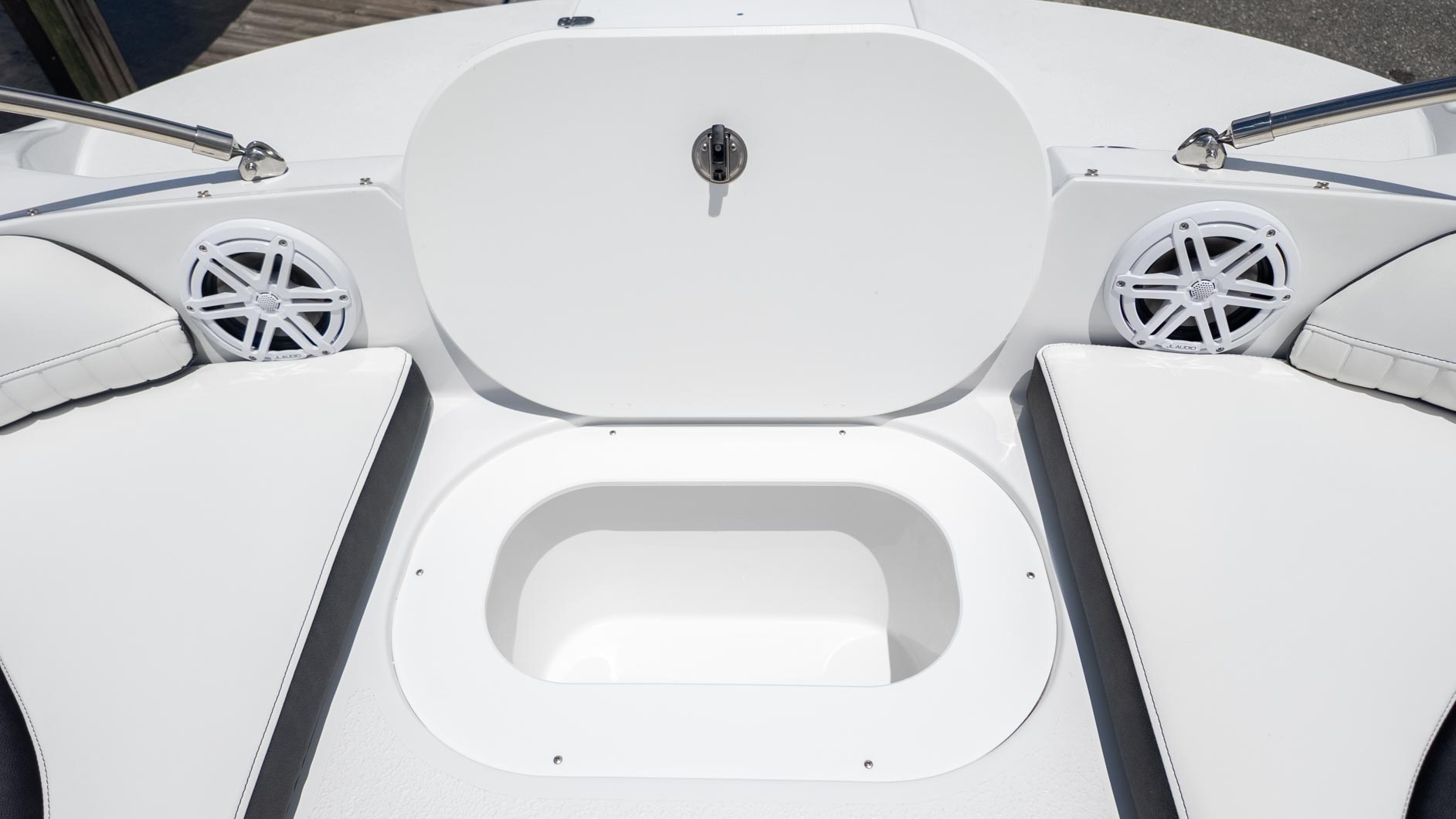 Imagine a sunny afternoon, cruising with your favorite tunes flowing from the Fusion RA-60 Stereo BT-APP. The removable 25 qt Igloo cooler means your refreshments are always at hand, and with oversized cup holders, spills are a thing of the past. The self-bailing cockpit ensures a carefree ride, no matter how much splashing is going on!
