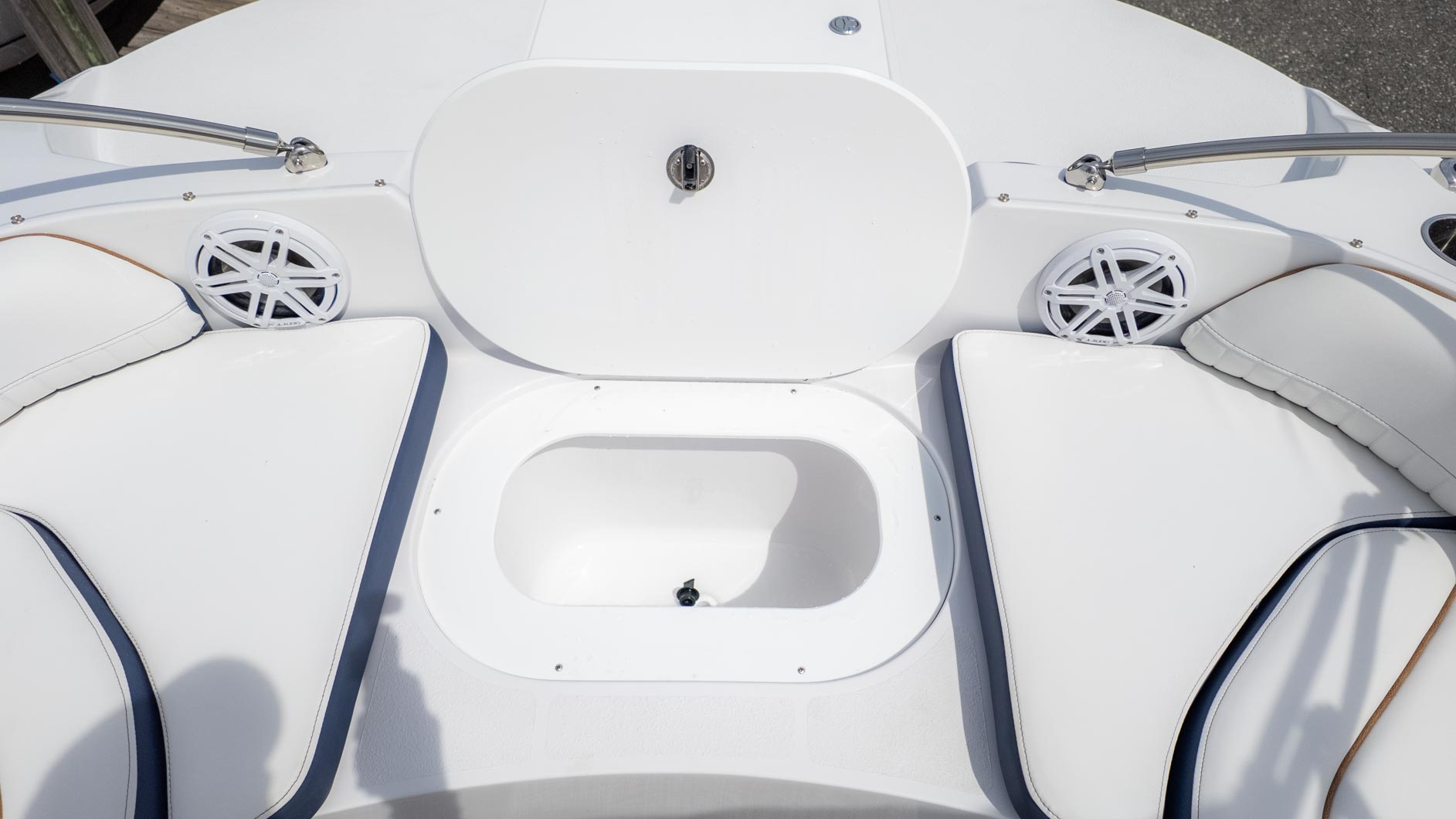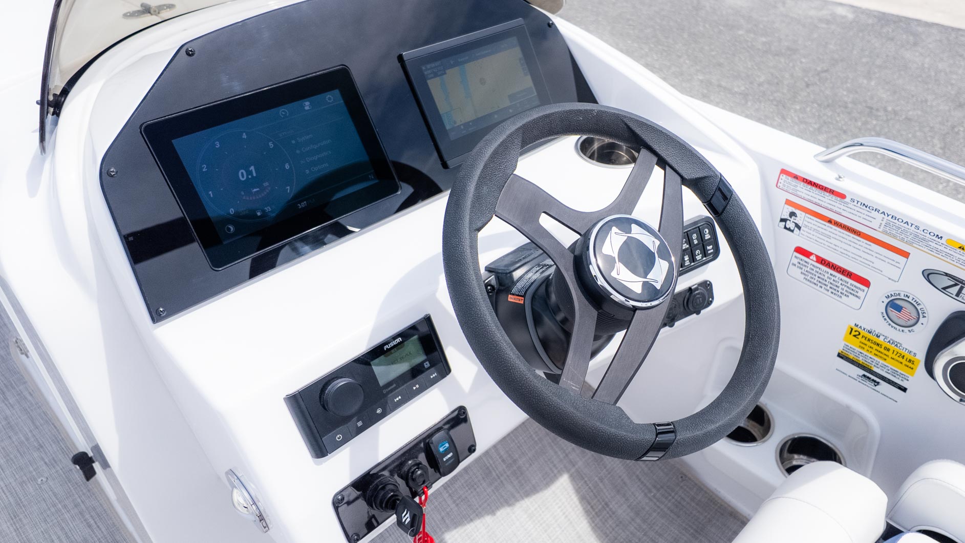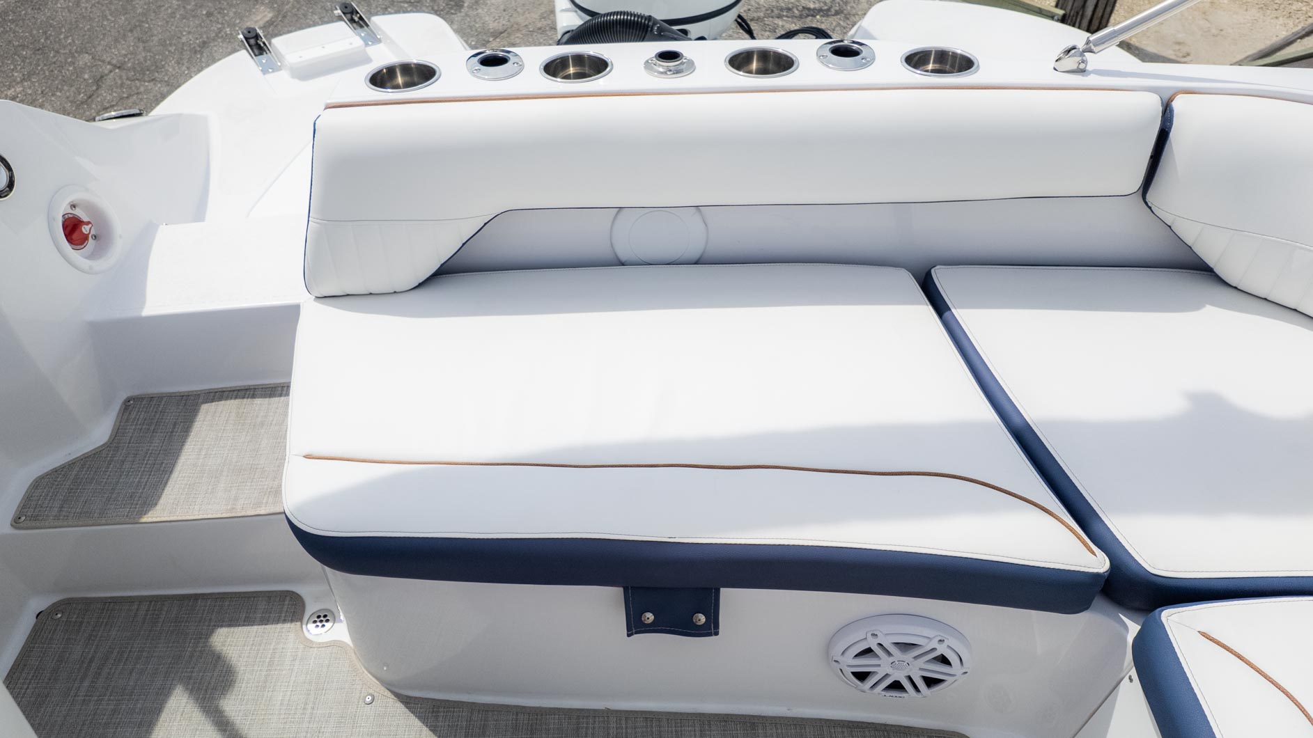 The 212SC is designed for a variety of activities, making it a fantastic all-arounder. You can spend the day day-cruising, or for the thrill-seekers in your group, there's a removable stainless steel ski pole for watersports like tubing or skiing. For those who prefer a more relaxed pace, you can enjoy a leisurely day of freshwater fishing with the optional aerated livewell. The onboard Fusion RA-60 stereo with Bluetooth connectivity ensures your favorite tunes are always part of the fun. The boat's Z-Plane Hull delivers a smooth and stable ride, so everyone on board can enjoy the day.