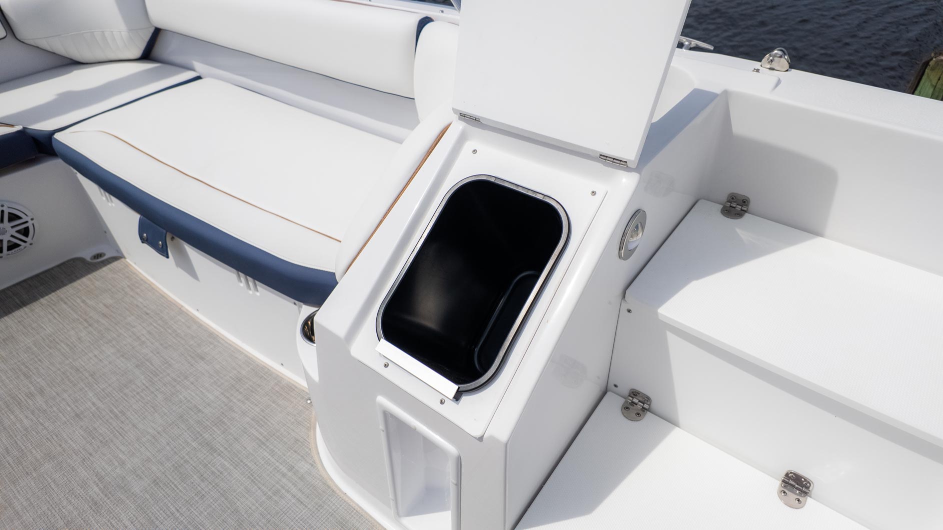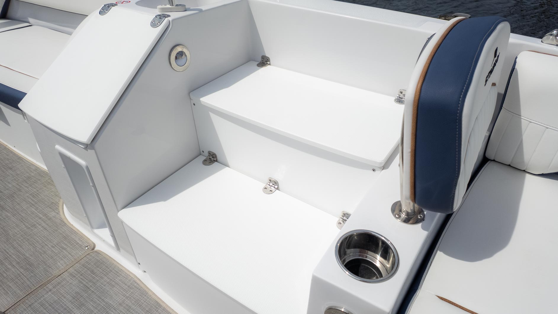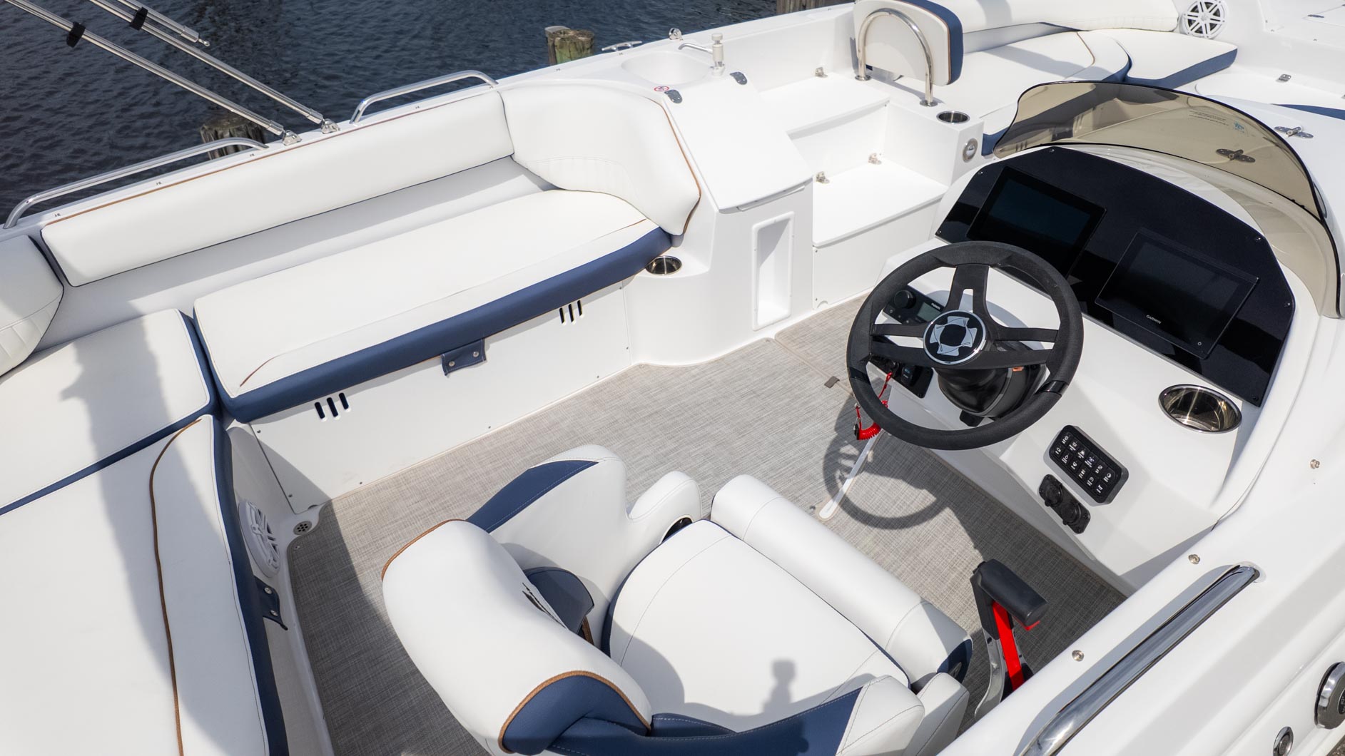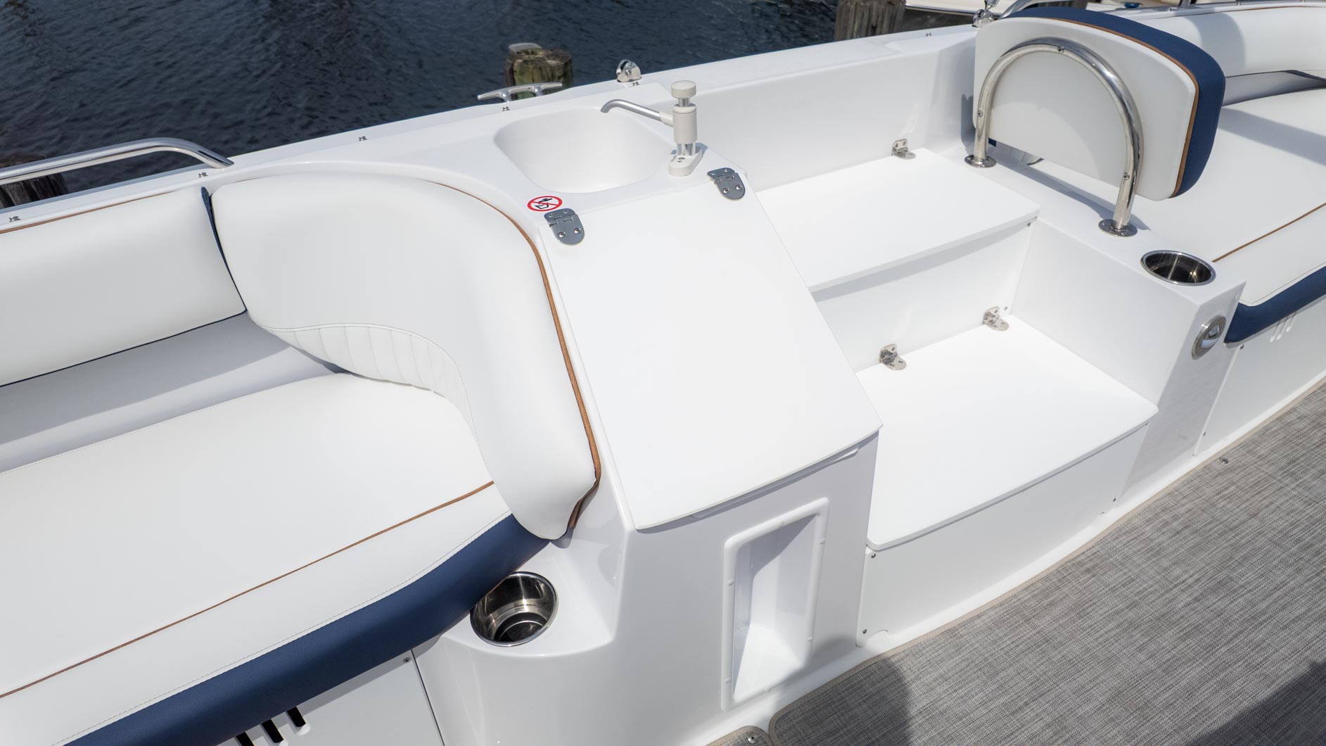 The 212SC is designed for a variety of activities, making it a fantastic all-arounder. You can spend the day day-cruising, or for the thrill-seekers in your group, there's a removable stainless steel ski pole for watersports like tubing or skiing. For those who prefer a more relaxed pace, you can enjoy a leisurely day of freshwater fishing with the optional aerated livewell. The onboard Fusion RA-60 stereo with Bluetooth connectivity ensures your favorite tunes are always part of the fun. The boat's Z-Plane Hull delivers a smooth and stable ride, so everyone on board can enjoy the day.