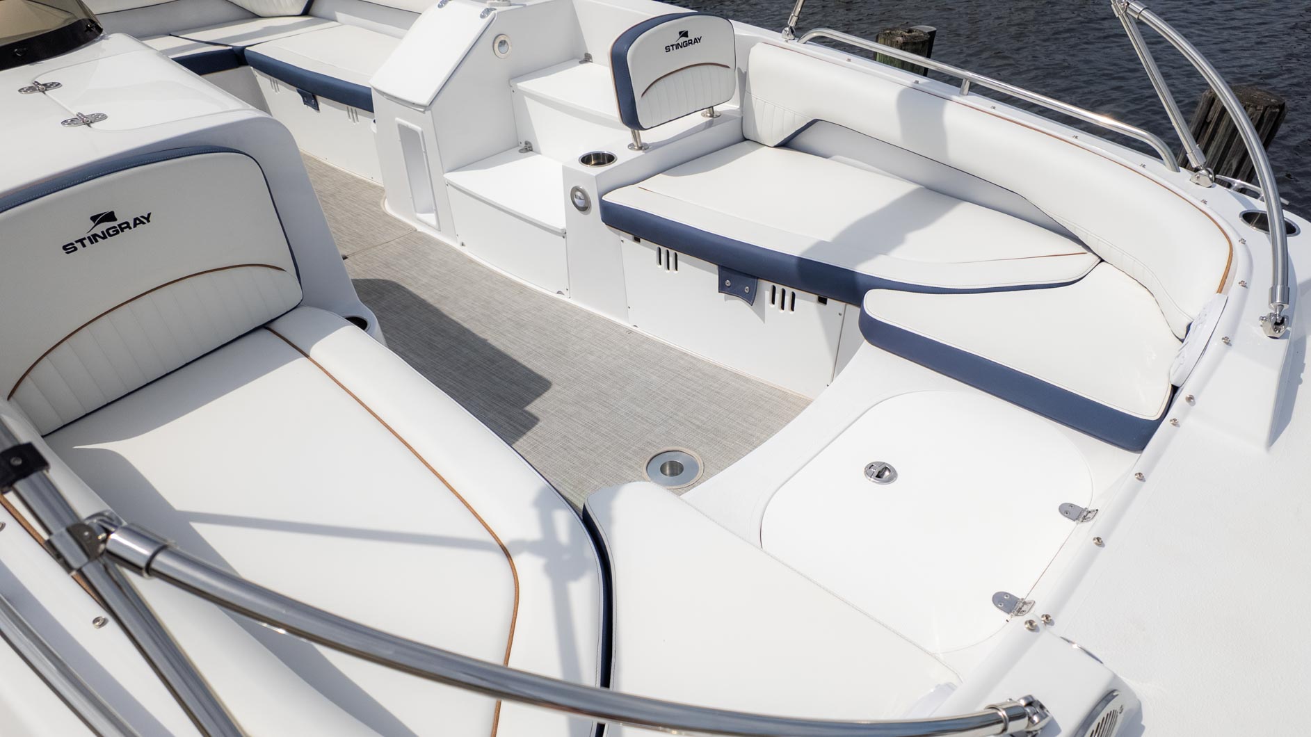 Picture this: A perfect day on the water with a group of friends or family, sunshine sparkling on the surface. That's the scene the Stingray 212SC deck boat is made for. This boat is ideal for anyone who loves to have a crowd along for the fun, with a maximum capacity for up to 12 people. The open floor plan and spacious cockpit are a breath of fresh air, leaving plenty of room for everyone to relax and socialize.