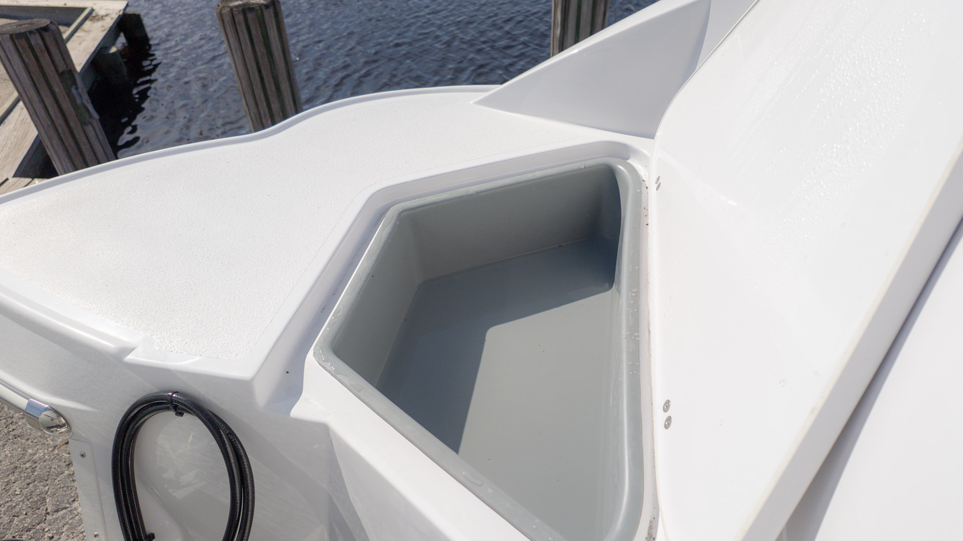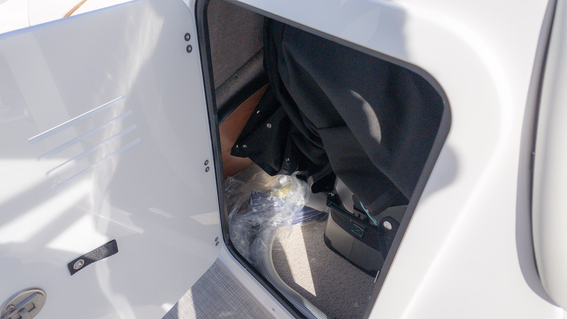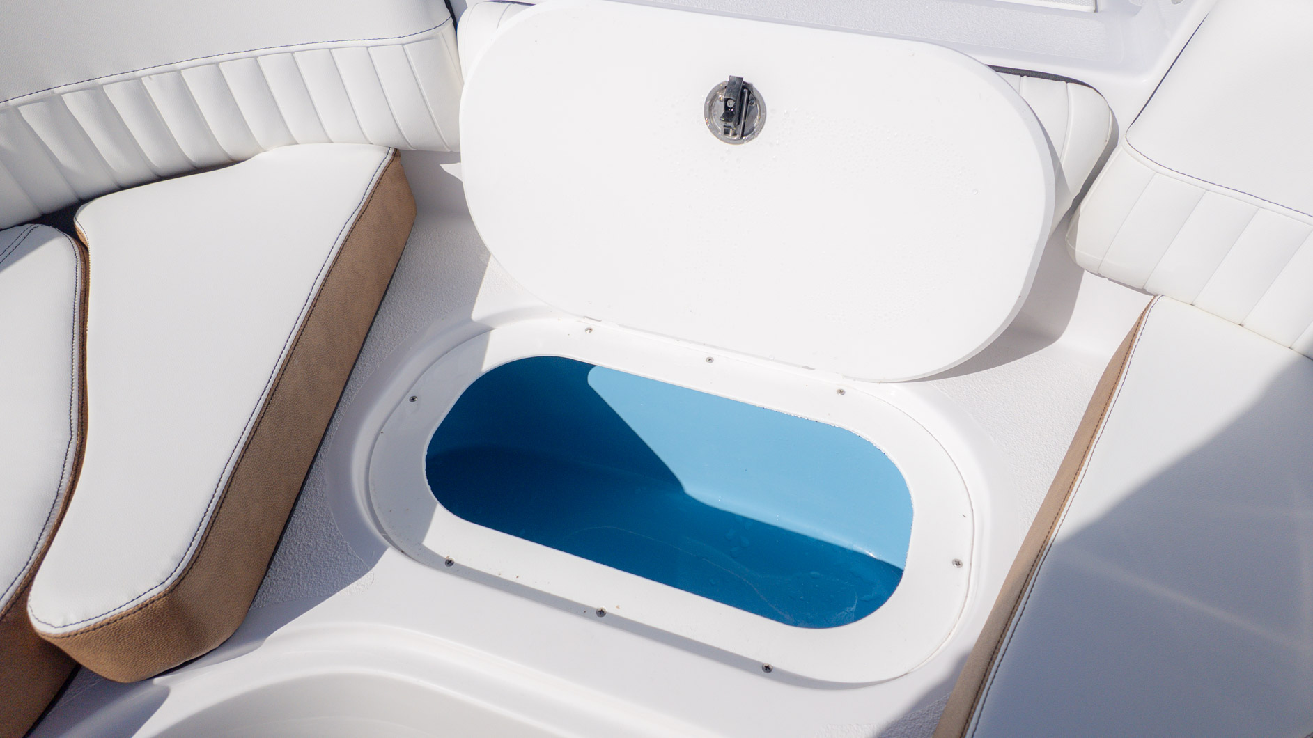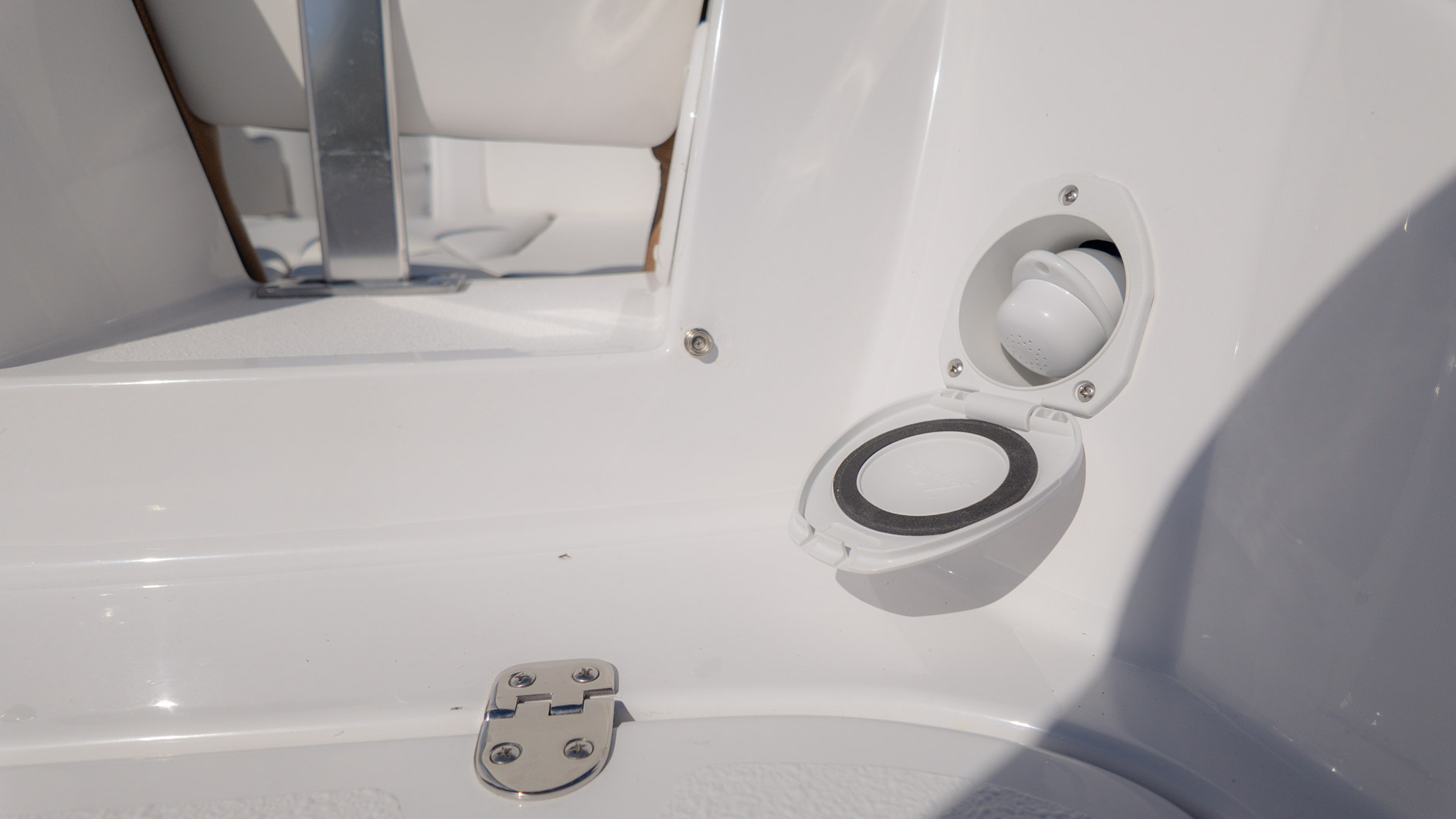 With an onboard sink, a pressurized water system with bow and transom showers, and an enclosed head that can double as a changing room, you can extend your time on the water. Control your ride with the Italian steering wheel and stay connected with the Fusion RA-60 Stereo. You can also add the optional wakeboard tower for an extra layer of excitement. The spacious and functional design adapts to all your needs, making it the perfect vessel for a fun-filled day of cruising, swimming, and watersports.