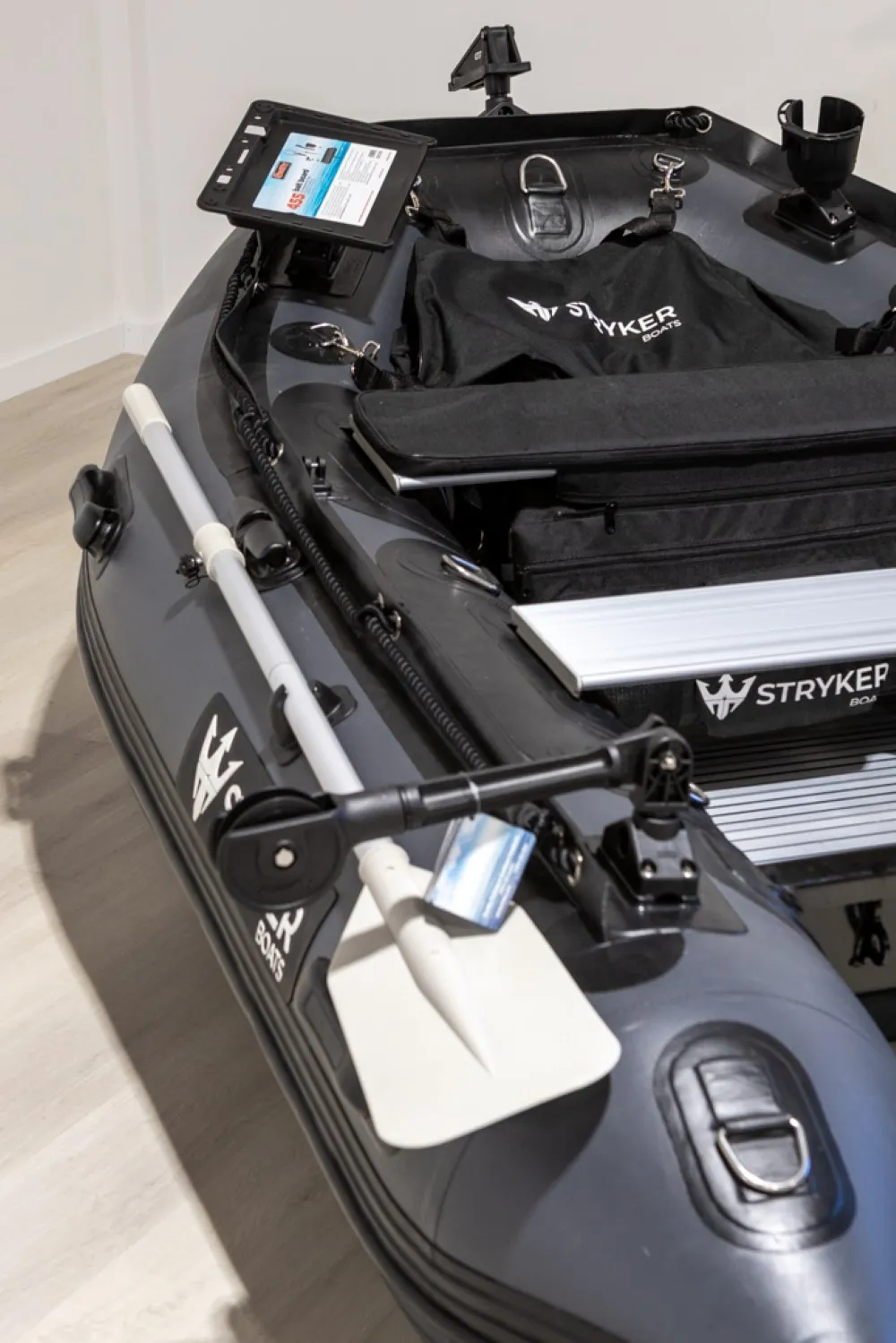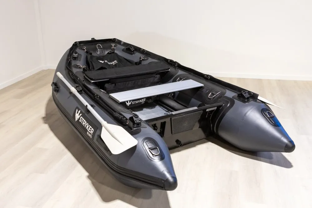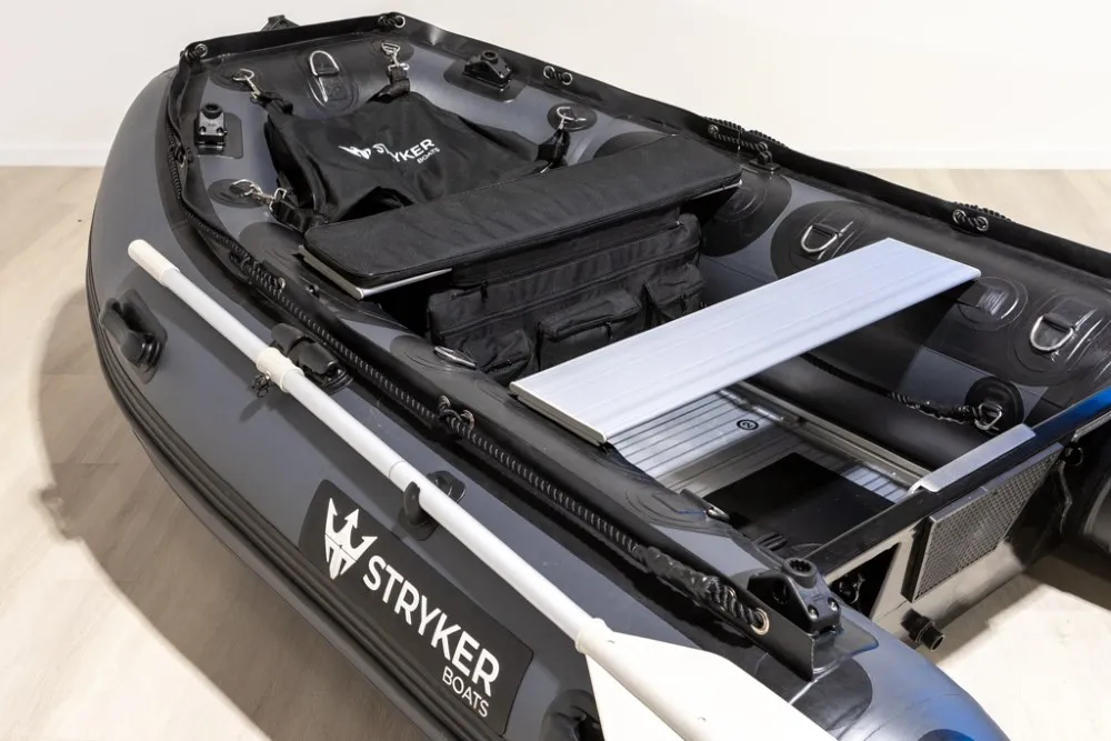 LX 270 – Compact Inflatable Boat for Yacht Tending & ExplorationThe LX 270 is a compact yet capable soft-bottom inflatable that offers more space and comfort than the LX 250—without sacrificing portability or performance. Lightweight, durable, and easy to manage, it’s built for a wide range of uses, from fishing and exploration to ship-to-shore transport. With room for four and a generous payload capacity of 1,139 lbs, the LX 270 is perfect for spontaneous outings, gear hauls, or weekend getaways.Key Features:German Mehler PVC + Thermowelded Seams – Built with premium German Mehler fabric and advanced thermo-welded seams for exceptional strength, airtightness, and long-term reliability.Stryker Shield® Hull Protection – A full-length 8″ wide protective strip runs beneath the tubes and along the keel—offering crucial reinforcement where it’s needed most during launches, landings, or shore contact.1-Piece Welded Aluminum Transom – Constructed from a single sheet of marine-grade aluminum, the transom is fully welded and completely wood-free—designed for short shaft outboards or electric motors.5 Pre-Installed Scotty® Bases – Outfitted with five factory-installed Scotty® mounting bases to support up to 30 plug-and-play accessories—like rod holders, crab pullers, or cup holders.Fiberglass Bow Board – A solid fiberglass bow board adds durable structure to the front of the boat—providing superior strength and longevity, durable and long-lasting.Aluminum or Air Floor Options – Customize your setup with either a rigid interlocking aluminum floor for stability or a high-pressure air floor for lightweight convenience and faster setup.Stryker Boats 5 year manufacturer warranty.SIZEOverall Length: 270cm or 8′ 9″Inside Length: 170cm or 5′ 5″Overall Width: 145cm or 4′ 7″Inside Width: 64cm or 2′ 1″Shipping Weight: Air Floor 125 lbs, Aluminum Floor 157 lbsTube Diameter: 41 cm or 1′ 3″# of Air Chambers: 4PVC Thickness: 1.2mm & .9mmCAPACITYMax Load: 517kg or 1139lbsMax # people: 4Max Motor: 10 HPMax Motor Weight: 60kg or 132lbsTransom Height: 15”Max Tube Pressure: 3.6 psiIncludedFoot PumpRepair Kit2 Aluminum Bench SeatsBoat BagFloor BagAluminum Oars