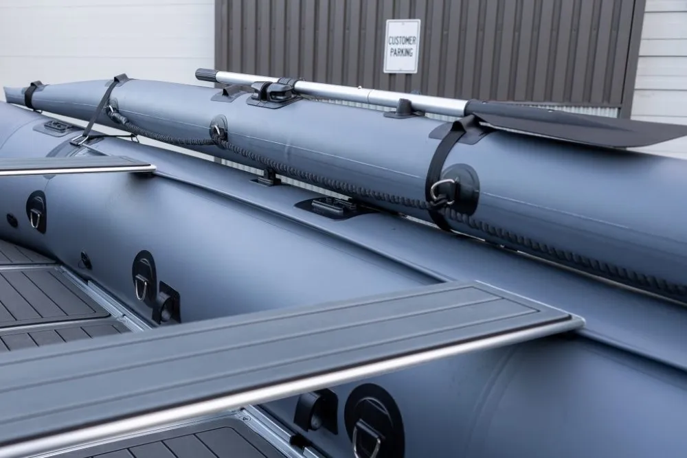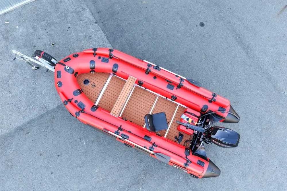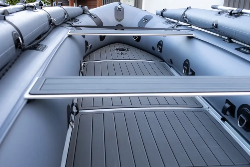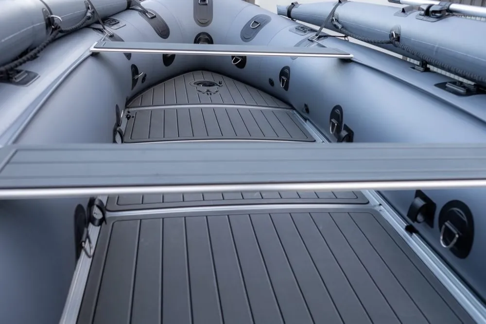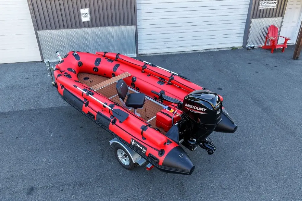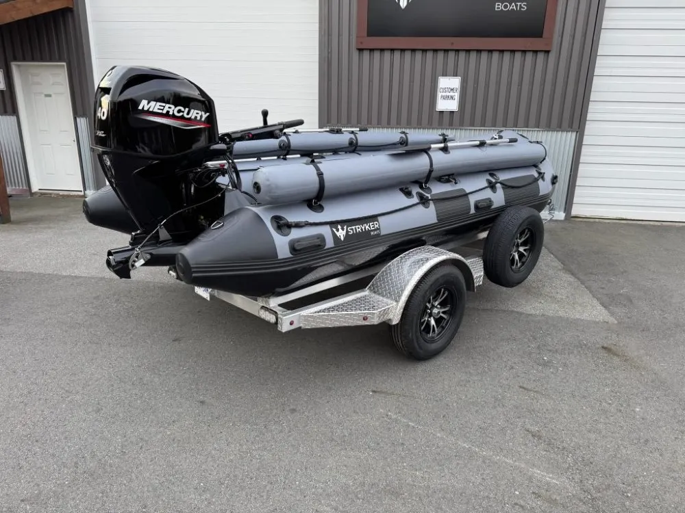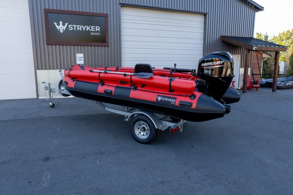 DEBUTING AT THE SEATTLE BOAT SHOW, CONTACT US FOR MORE DETAILS!!!Stryker HD 470 – Built for Big Water and Serious AdventuresThe Stryker HD 470 is the largest inflatable boat in the HD lineup, engineered for offshore adventures, rugged expeditions, and demanding use by anglers, hunters, and outdoor professionals. At 15′ 4″, it’s built to carry more gear, more passengers, and handle tougher conditions without compromising on performance or safety. With a maximum load capacity of 2,998 lbs, it delivers exceptional hauling capability for extended trips and serious missions.German Mehler PVC + Thermowelded SeamsEngineered with ultra-durable 1.8mm German Mehler fabric and thermo-welded seams for maximum strength and long-lasting performance.Stryker Shield® Hull ProtectionA full-length 8″ wide protective strip runs beneath the tubes and along the keel—reinforcing high-wear areas during launches, landings, or beaching.One-Piece Welded Aluminum Transom with Wheel BracketsConstructed from marine-grade aluminum with factory-installed brackets for the Stryker launching wheel system—designed for strength and ease of use.7 Pre-Installed Scotty® BasesEquipped with seven factory-installed Scotty® mounting bases to support accessories like rod holders, downriggers, and cup holders.Reinforced A-Style Bow with Fiberglass Bow BoardThe reinforced A-style bow cuts through chop while maximizing deck space. A solid fiberglass bow board adds strength for anchors and gear.Full EVA Foam DeckingMarine-grade, UV-resistant foam provides a comfortable, non-slip deck surface that’s easy to clean and built for heavy use in all conditions.Stryker Boats 5 year manufacturer warranty.SIZE Overall Length: 470cm or 15′ 4″ Inside Length: 320cm or 10′ 5″ Overall Width: 190cm or 6′ 2″ Inside Width: 90cm or 2′ 10″ Shipping Weight: Boat 188 lbs, Floor 104 lbs Tube Diameter: 50cm or 1′ 8″ # of Air Chambers: 6 PVC Thickness: 1.8mm & .9mm Dimensions of Boat in Bag: 57 x 26 x 15″ Dimensions of Aluminum Floor in Bag: 45 x 26 x 6″CAPACITY Max Load: 1360kg or 2998 lbs Max # people: 10 Max Motor: 40 HP Max Motor Weight: 119kg or 262 lbs Transom Height: 20″ Max Tube Pressure: 3.6 psiIncluded Foot Pump Repair Kit 2 x Aluminum Bench Seat Boat Bag Floor Bag Bimini Aluminum Oars