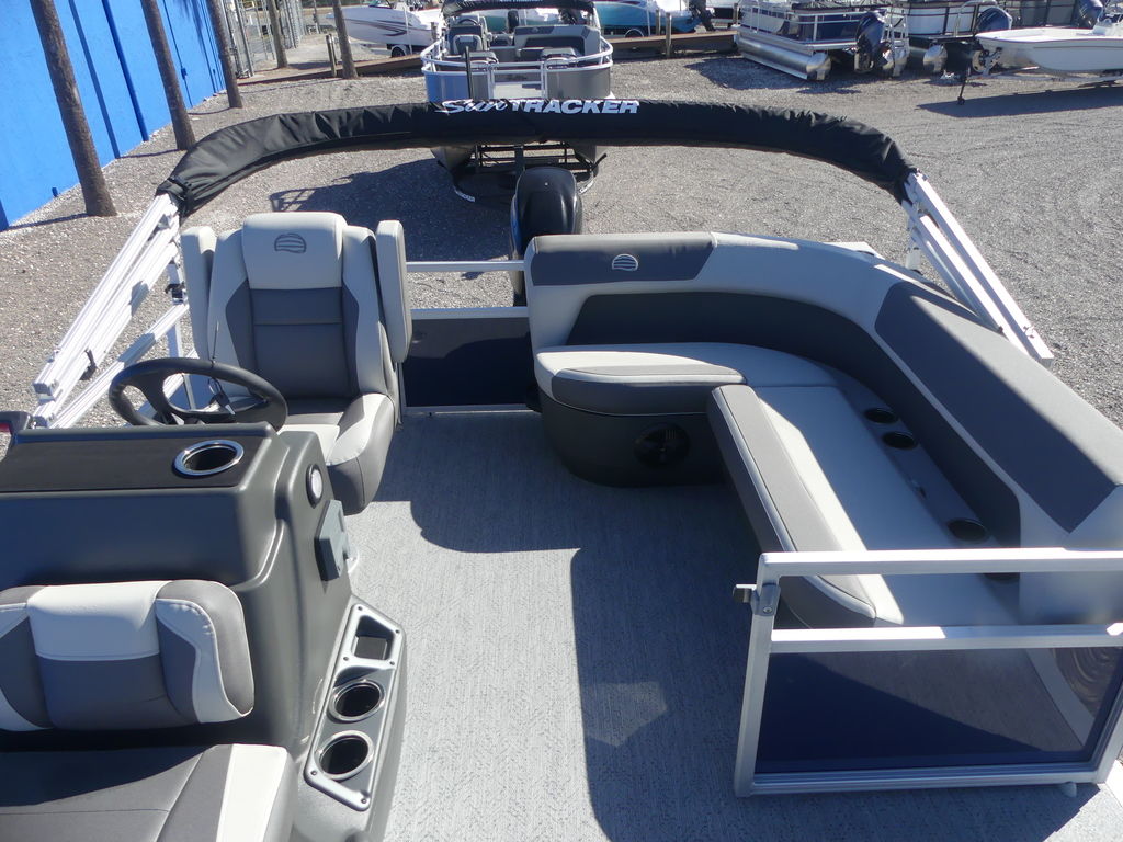 This seven-passenger fishing pontoon hits the water with new console and lounge designs. Get three extra cubic feet of storage thanks to clever backrest cut-outs. The redesign also adds a seat in front of the driver console, phone compartments, and four more cupholders. Cast from the shade of a standard 7' bimini top in one of the two folding fishing seats. Find your spot on the lake from the decked-out driver console, which comes with its own rod holder.