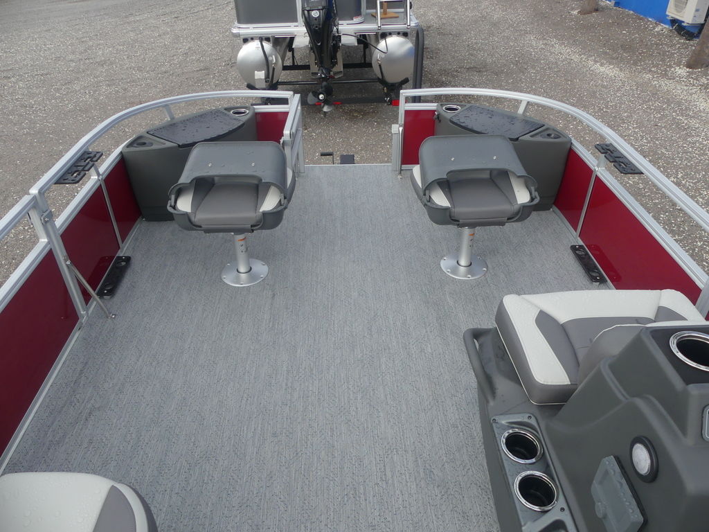 Up to eight fishin' buddies can take to the dual fishing decks of this redesigned fishin' pontoon. Three swiveling fishing chairs around a 10-gal. bow livewell and an 8-gal. aft livewell headline the list of features that make this the perfect boat for casting lines to catch fish and memories. When the fishing's done, sprawl out on the L-shaped lounge and crank up the stereo. The new and improved boarding ladder makes follow-up cannonballs a breeze. Other features new to the 2026 model year include three extra cubic feet of storage space, more cupholders, in-lounge storage, and a new seat in front of the helm.