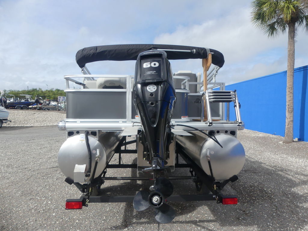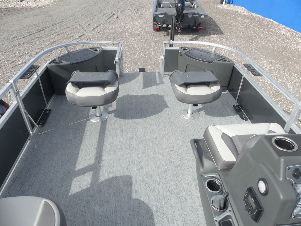 Up to eight fishin' buddies can take to the dual fishing decks of this redesigned fishin' pontoon. Three swiveling fishing chairs around a 10-gal. bow livewell and an 8-gal. aft livewell headline the list of features that make this the perfect boat for casting lines to catch fish and memories. When the fishing's done, sprawl out on the L-shaped lounge and crank up the stereo. The new and improved boarding ladder makes follow-up cannonballs a breeze. Other features new to the 2026 model year include three extra cubic feet of storage space, more cupholders, in-lounge storage, and a new seat in front of the helm.