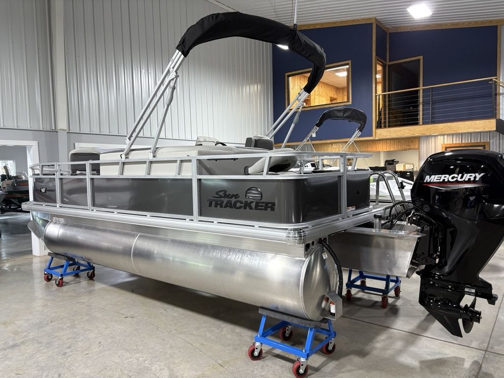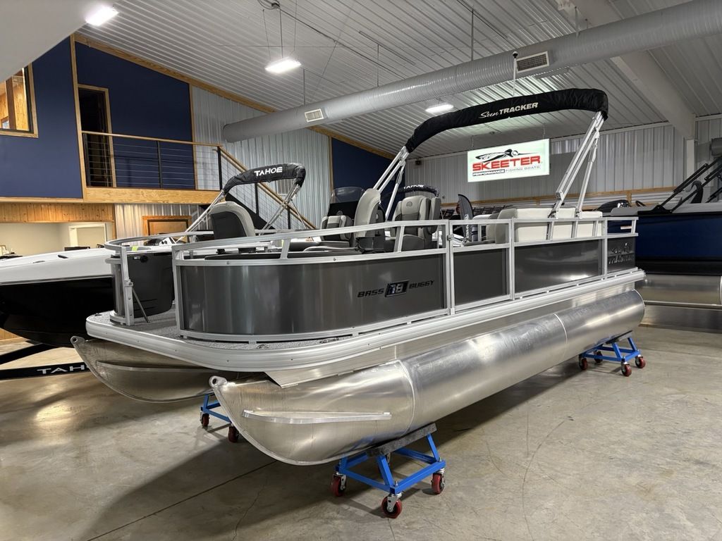 2026 Sun Tracker Bass Buggy® 18 DLX Year after year, the BASS BUGGY® 18 DLX continues to be the best-selling pontoon boat in the SUN TRACKER® lineup, and there are plenty of reasons why. For one, this boat has a nimble and easy-to-tow 20’ length overall, but still provides plenty of playpen room for a crew of eight. Speaking of the playpen—inside the tall railings (great for boating with kids!), you’ll find all the features anglers want on a fishing boat, including an aerated livewell, rod holders, four fishing chairs and pre-wiring for an optional fishing package. And there’s still room for the entire crew to relax under the Bimini top and enjoy the day!