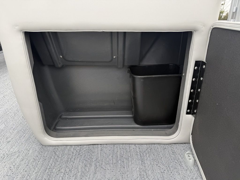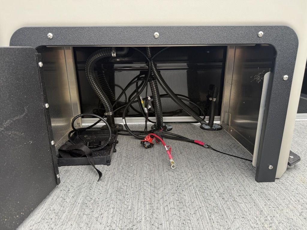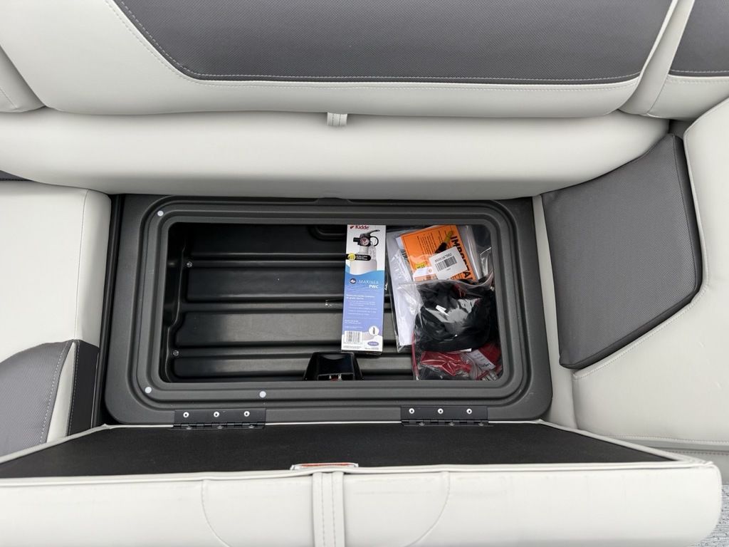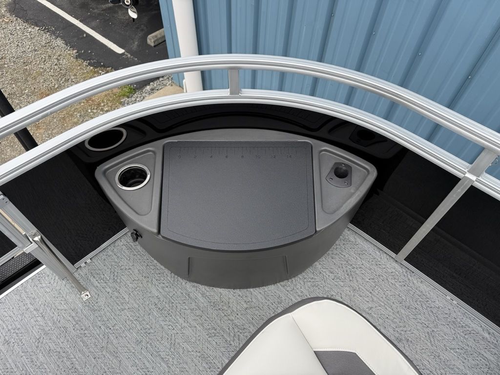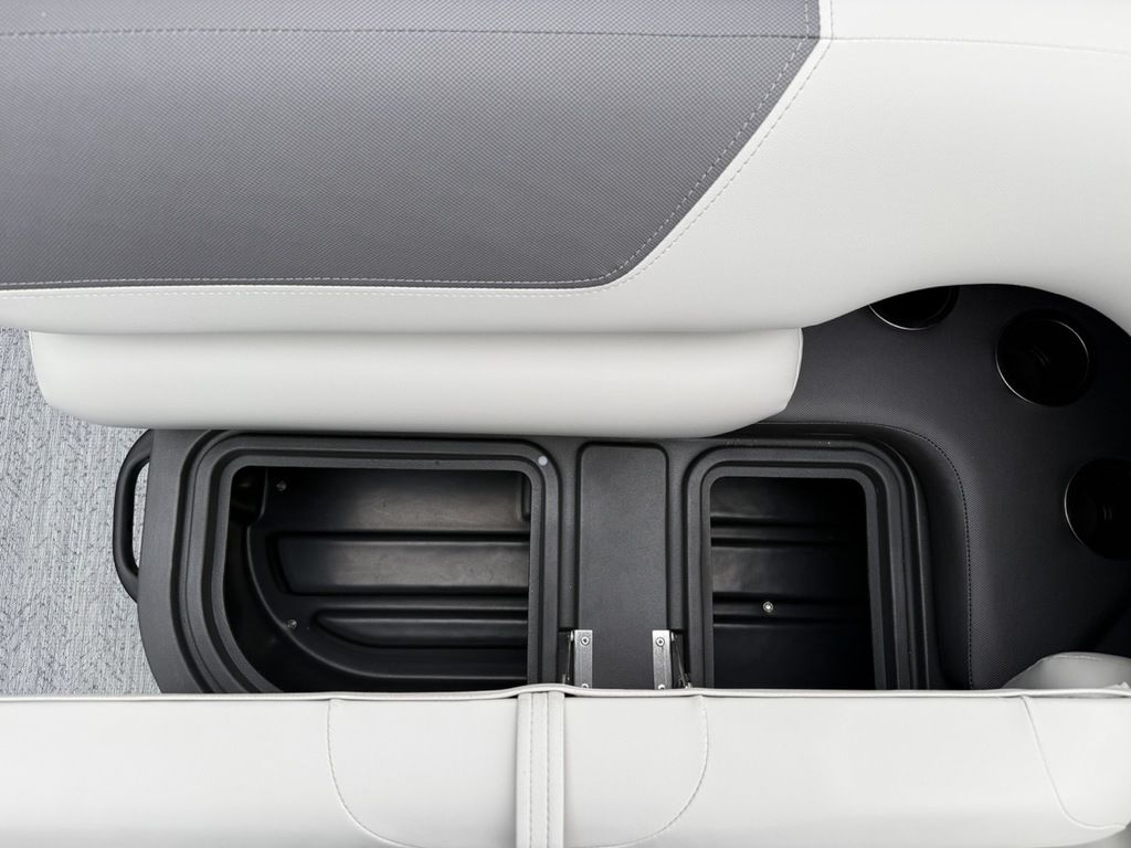 - Front fishing station w/2 pedestal seat base locations; rail-mounted rod & tool holders; & bow starboard storage compartment w/rod & drink holders