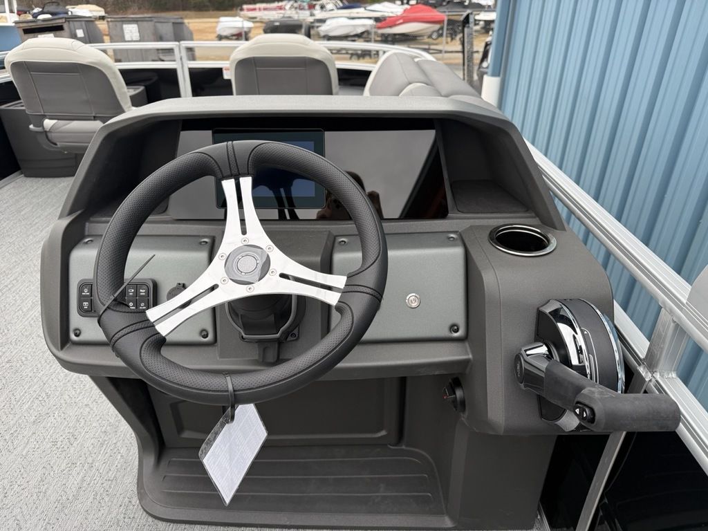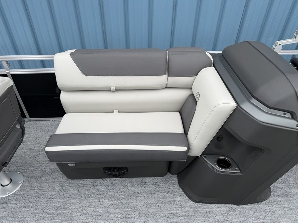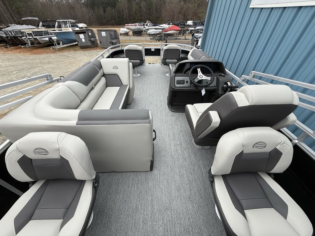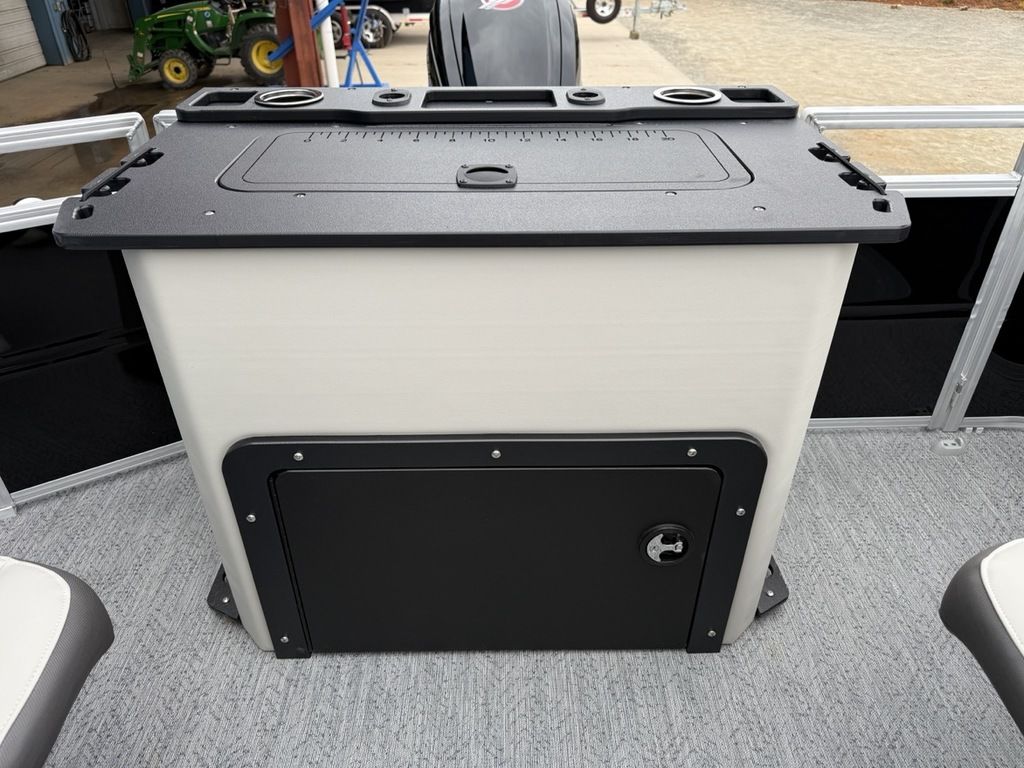 2026 Sun Tracker Fishin' Barge® 20 DLX Claim your favorite spot from either the fore or aft fishing decks, which boast 3 casting chairs, 2 aerated livewells, and rail-mounted holders ready to present your rods and tools. Those fishing chairs are removable and foldable to allow for deck customization. Both ends offer extra storage areas for tackle and tools. Features May Include: