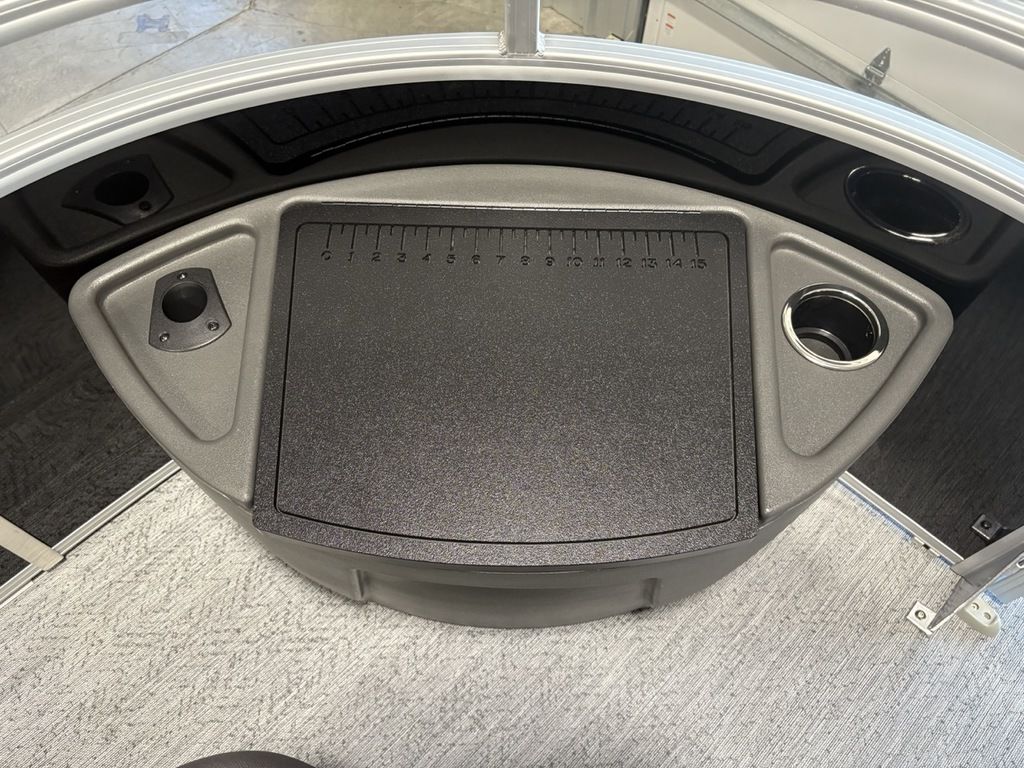 - Aft 15-gal. (56.78 L) aerated livewell/baitwell w/shutoff valve, drink holder, rod holder & composite lid w/fish ruler