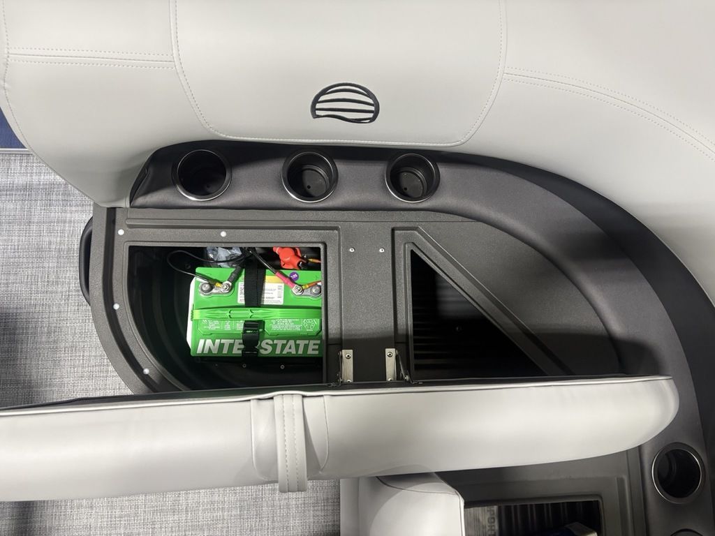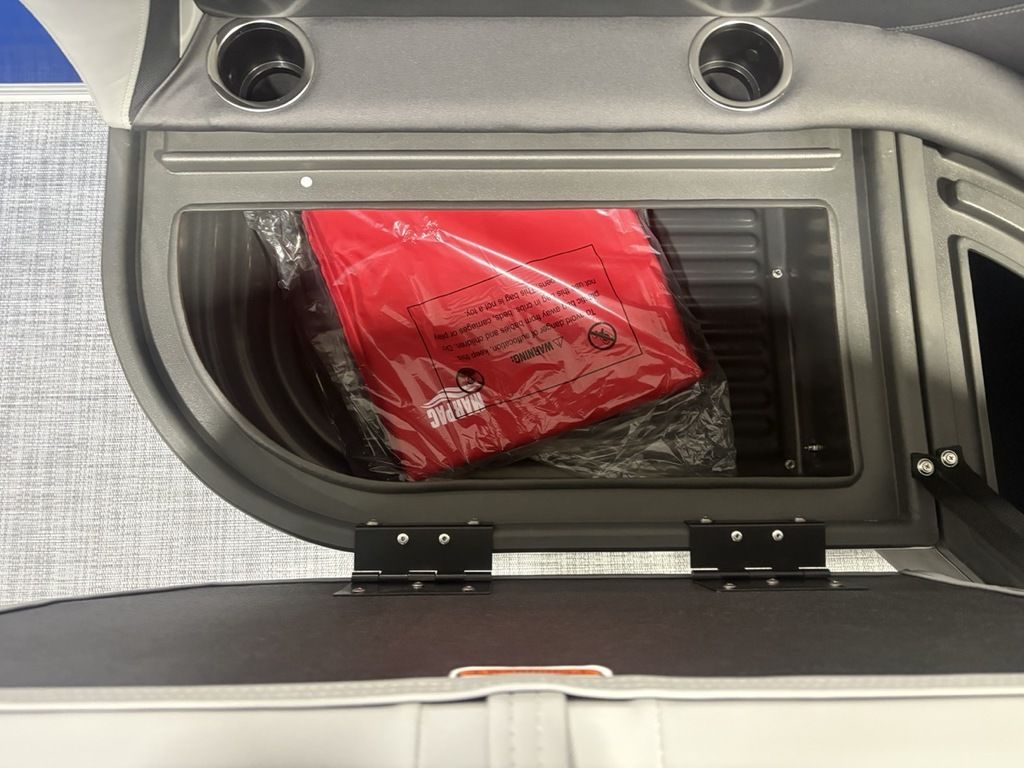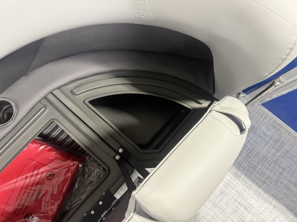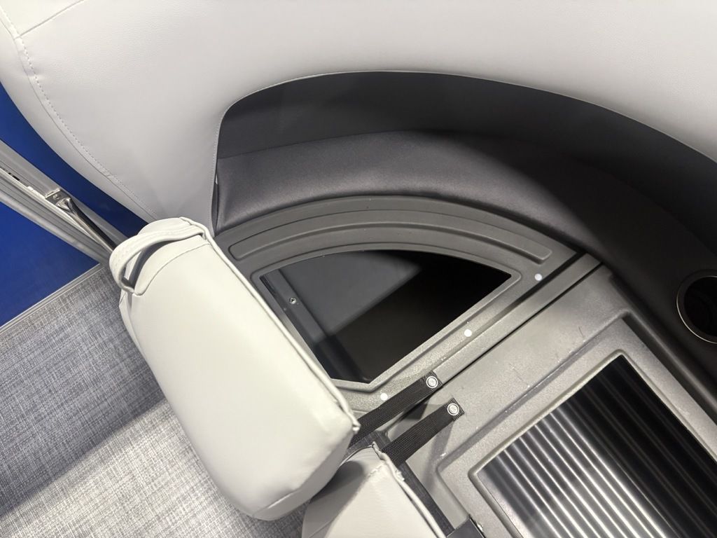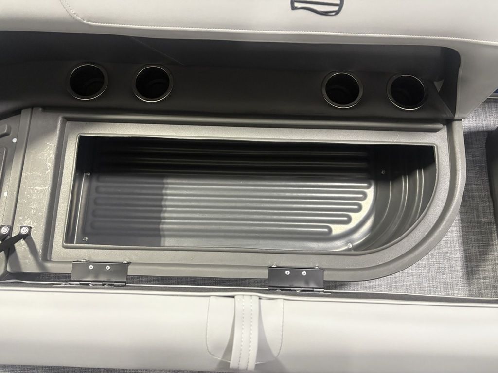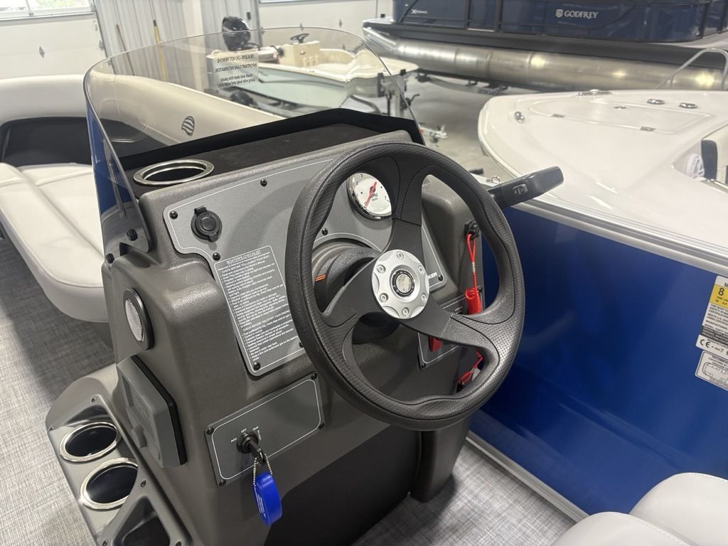 2026 Sun Tracker Party Barge® 16 DLX Our most compact PARTY BARGE is ready to bring the fun to the lake with a crew of up to 7. The first thing you'll notice after boarding are the 3 luxurious lounges—each wrapped in a durable and UV-resistant, hand-cut and hand-sewn 26 oz. vinyl, and you'll find ample storage under each, with an in-deck pedestal base will support an optional table. The molded fiberglass-reinforced console sports a removable, tinted windscreen, a new sport steering wheel, a below-console cooler/storage space, and a Mercury® binnacle control box.
