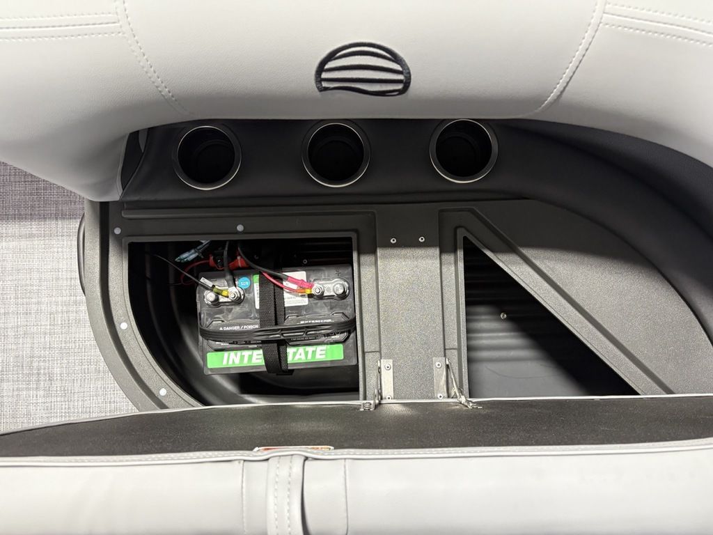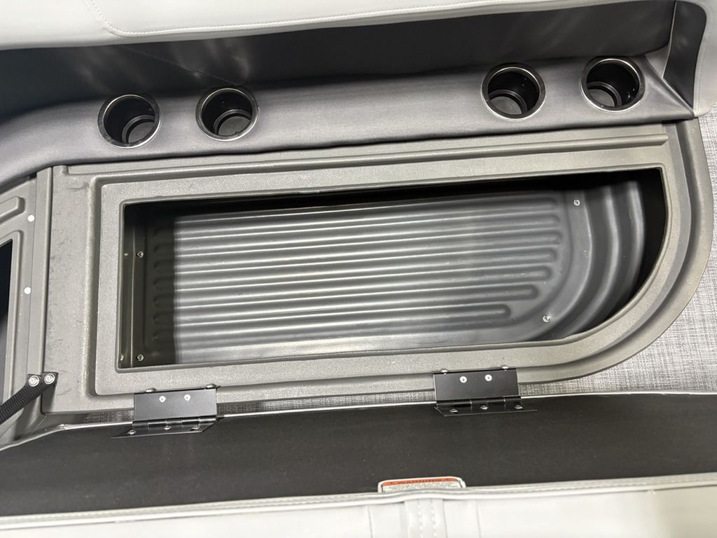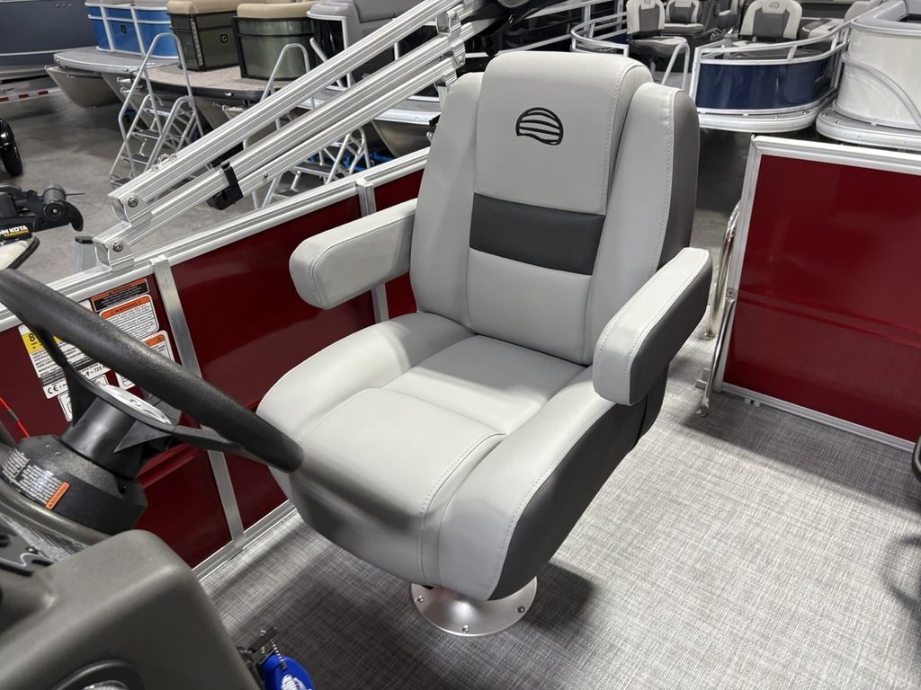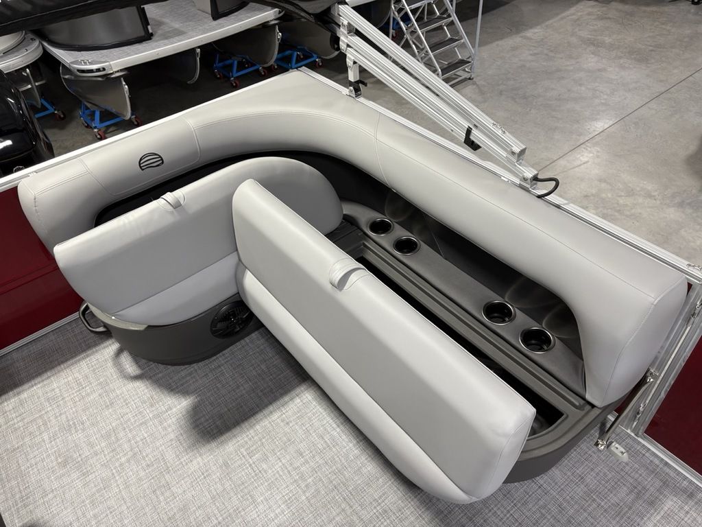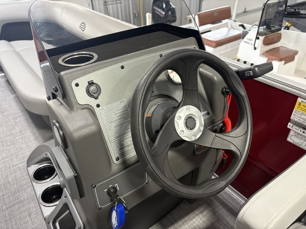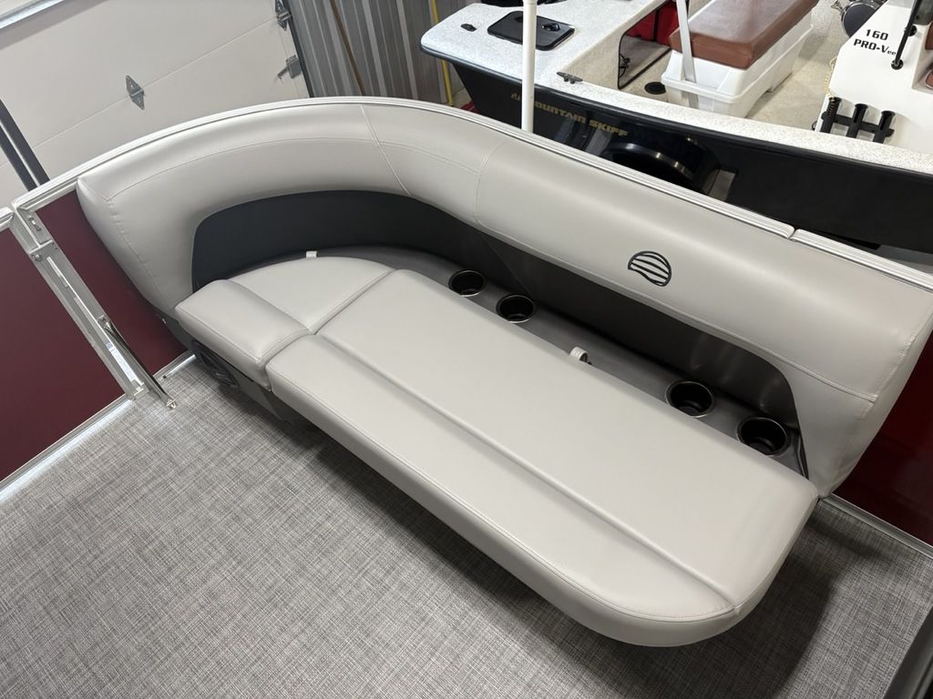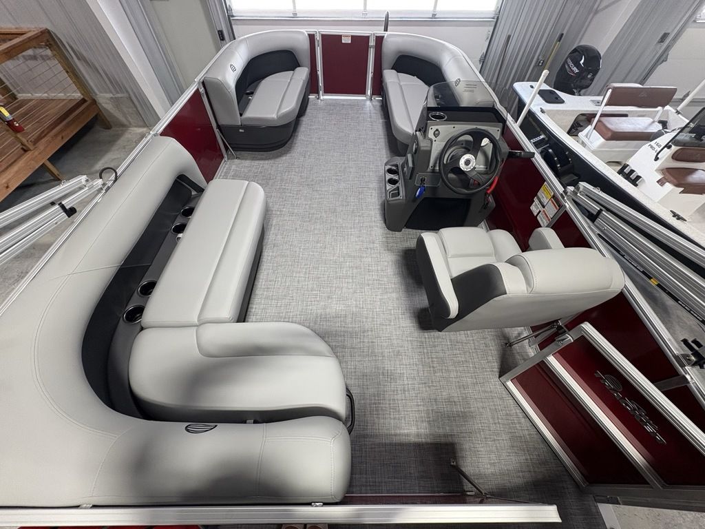 2026 Sun Tracker Party Barge® 16 DLX Our most compact PARTY BARGE is ready to bring the fun to the lake with a crew of up to 7. The first thing you'll notice after boarding are the 3 luxurious lounges—each wrapped in a durable and UV-resistant, hand-cut and hand-sewn 26 oz. vinyl, and you'll find ample storage under each, with an in-deck pedestal base will support an optional table. The molded fiberglass-reinforced console sports a removable, tinted windscreen, a new sport steering wheel, a below-console cooler/storage space, and a Mercury® binnacle control box.