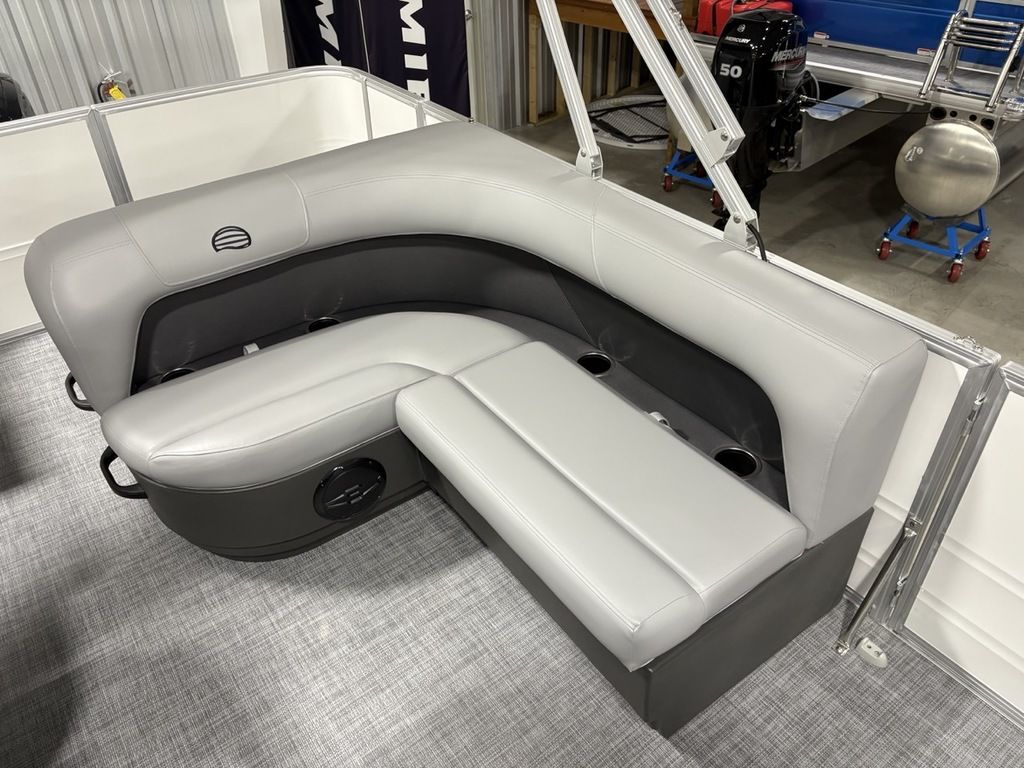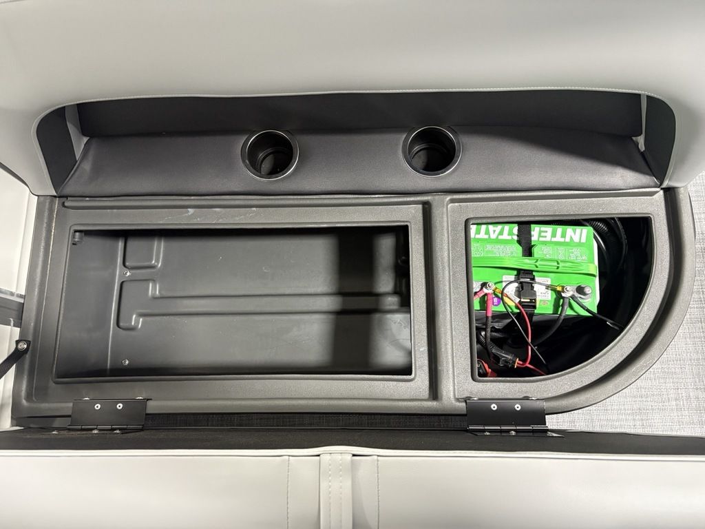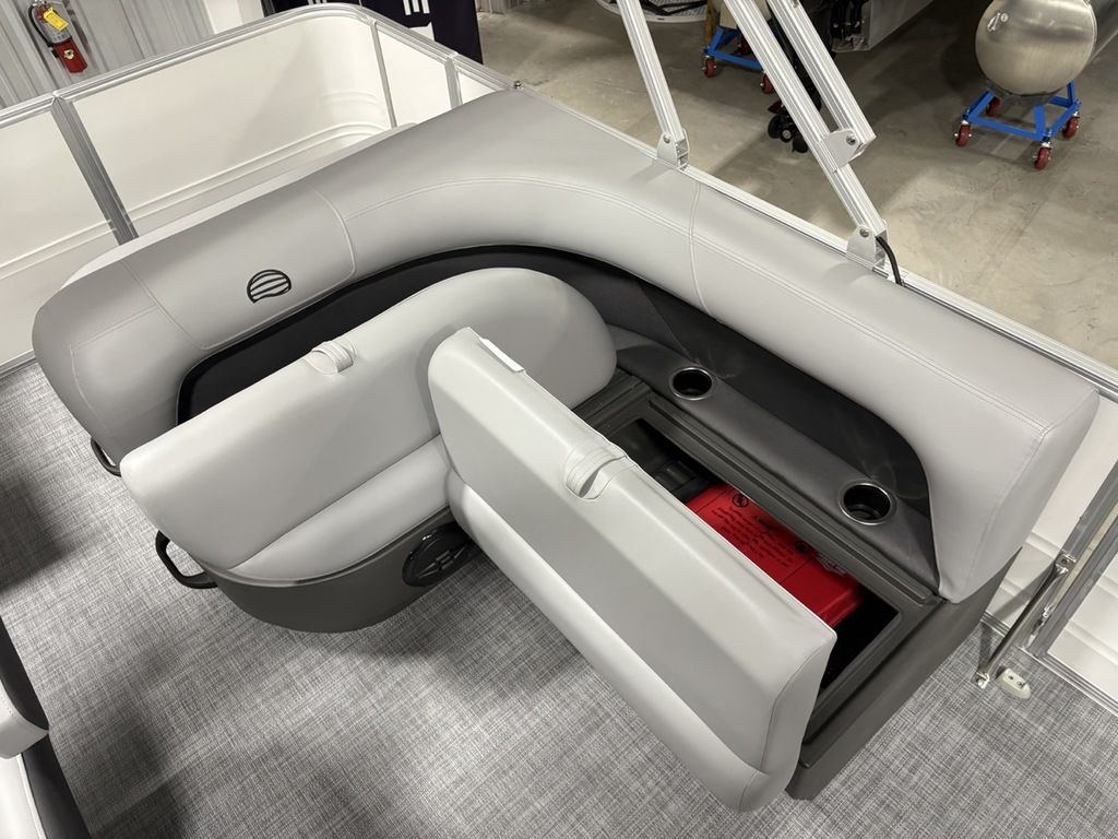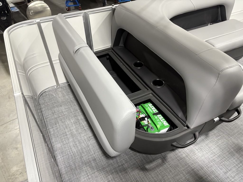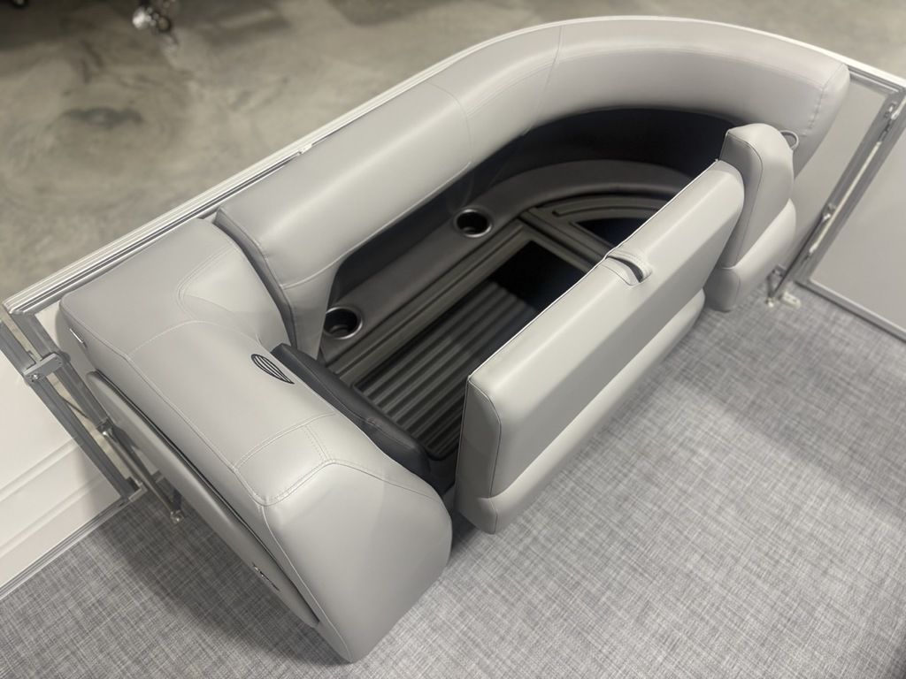 Fit up to 9 passengers in this quality pontoon boat. They can relax on one of the 3 lounge couches while the pilot stays comfortable in the swiveling, telescoping captain's chair. Those lounges feature under-seat storage with plenty of space to hold all you need for today's aquatic adventure. The console also features a hidden storage space perfect for stowing away a cooler.