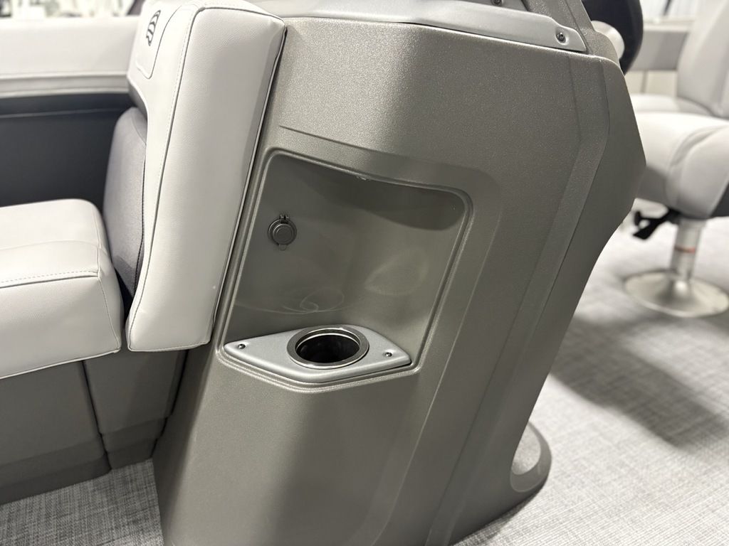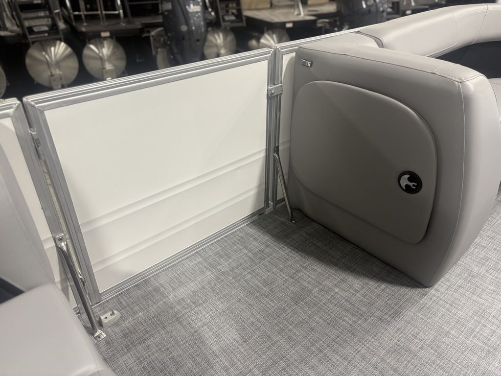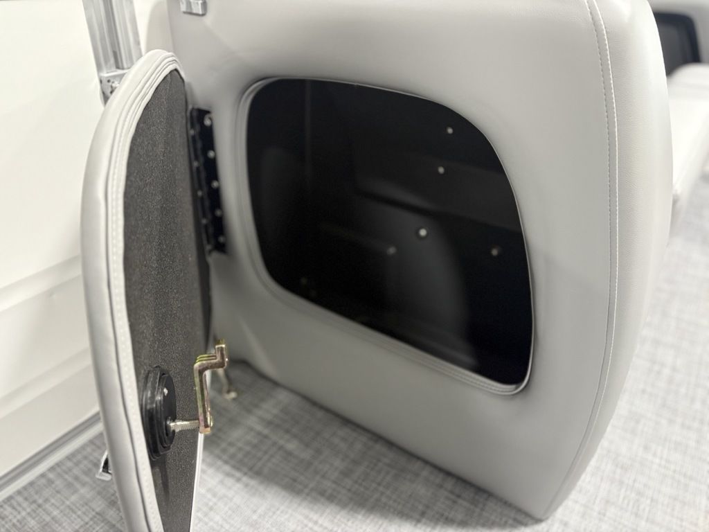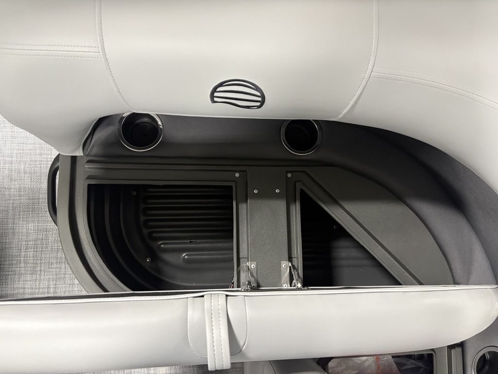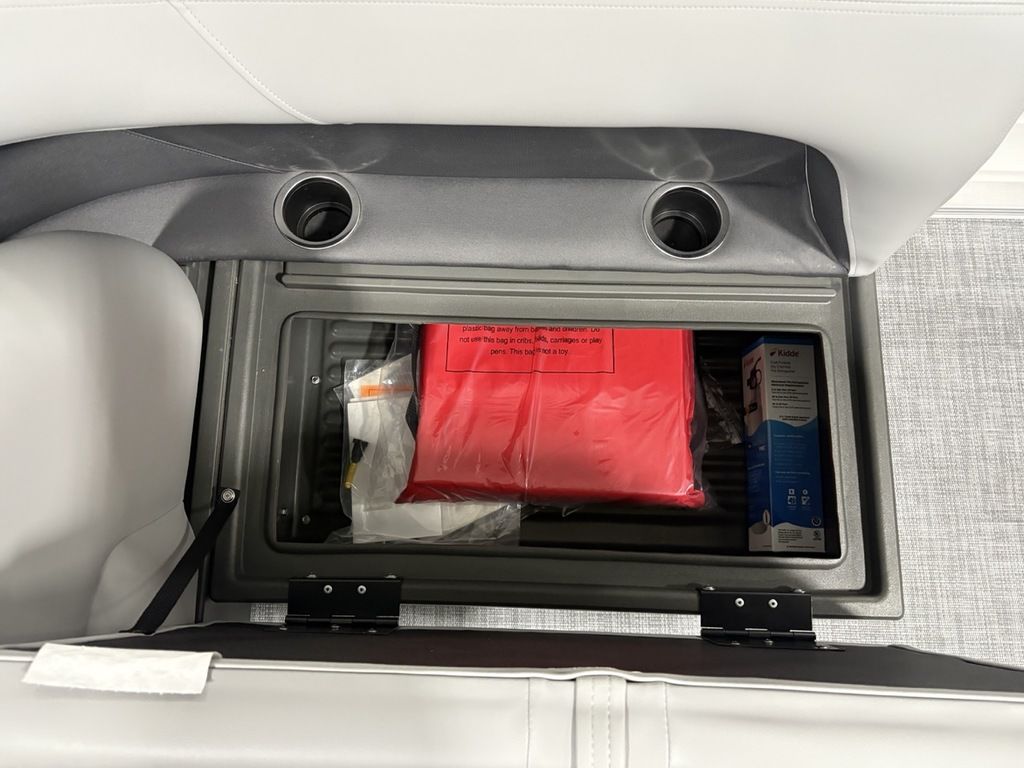Fit up to 9 passengers in this quality pontoon boat. They can relax on one of the 3 lounge couches while the pilot stays comfortable in the swiveling, telescoping captain's chair. Those lounges feature under-seat storage with plenty of space to hold all you need for today's aquatic adventure. The console also features a hidden storage space perfect for stowing away a cooler.