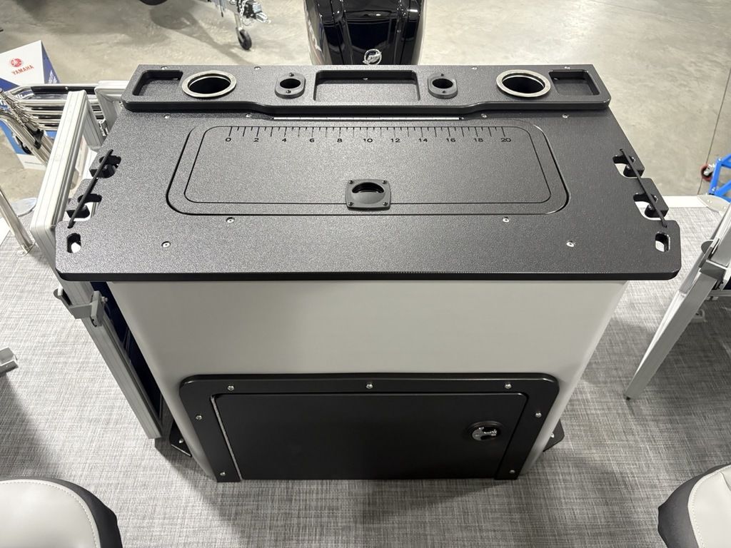 - Aft 15-gal. (56.78 L) aerated livewell/baitwell w/shutoff valve, drink holder, rod holder & composite lid w/fish ruler