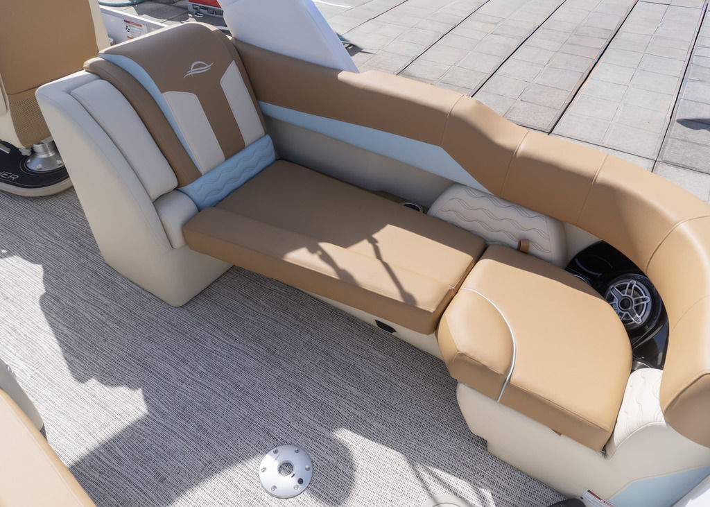 - Every stitch reflects craftmanship and pride. The detailed SunCatcher branding in the upholstery stitching highlights the quality and attention to detail found throughout the boat.