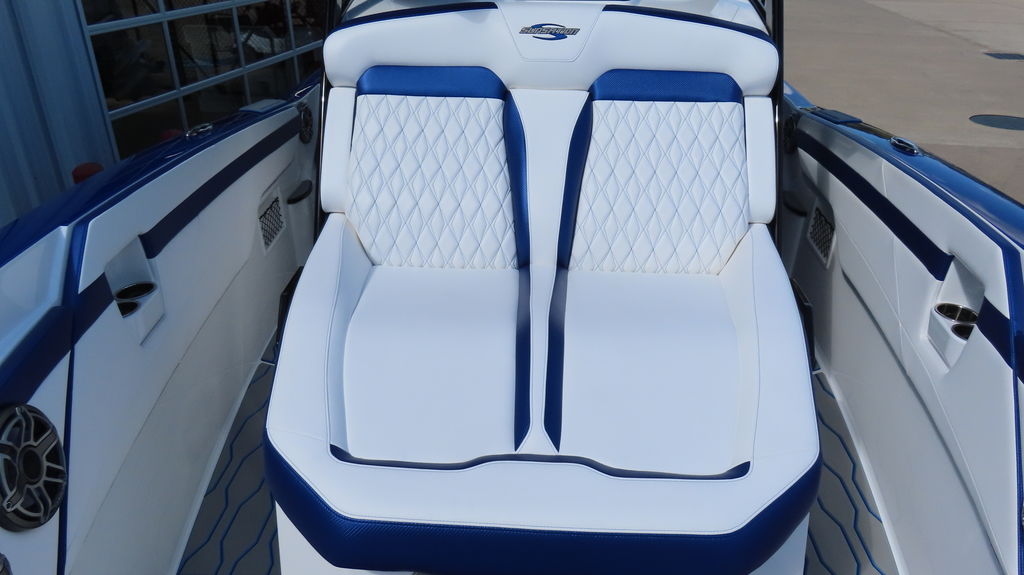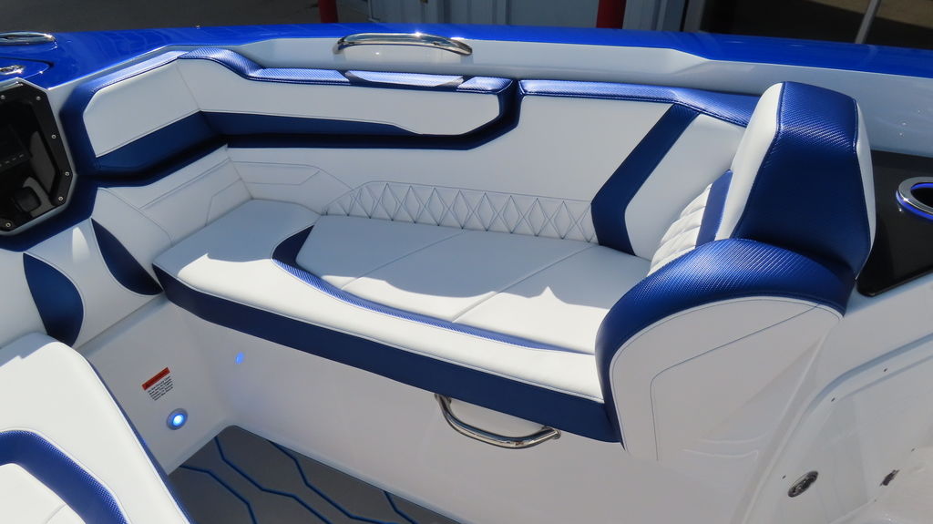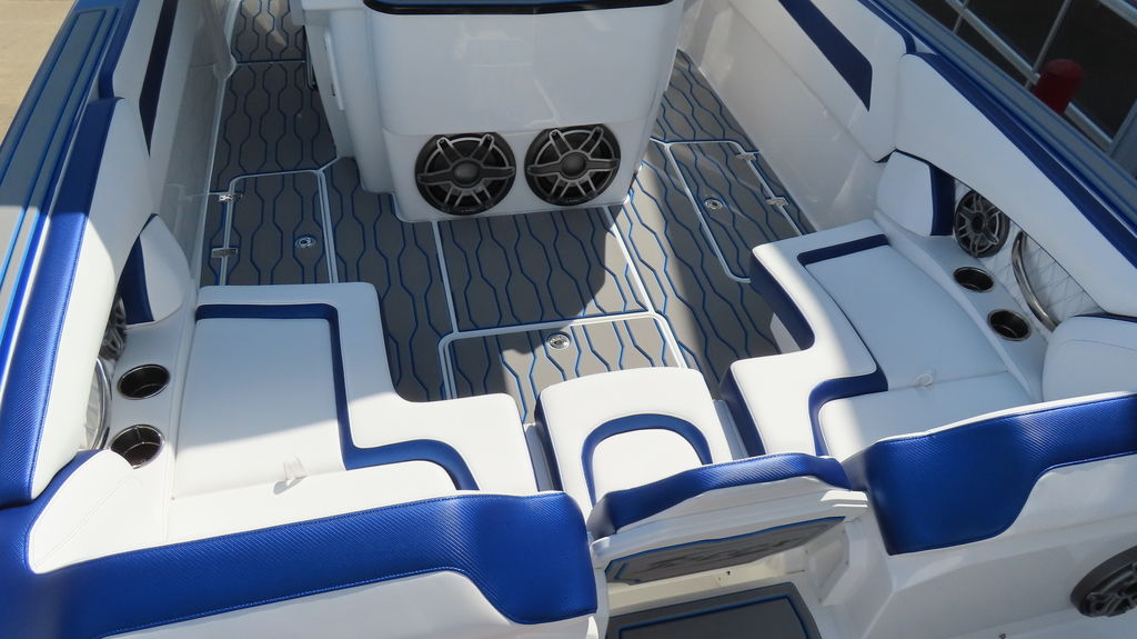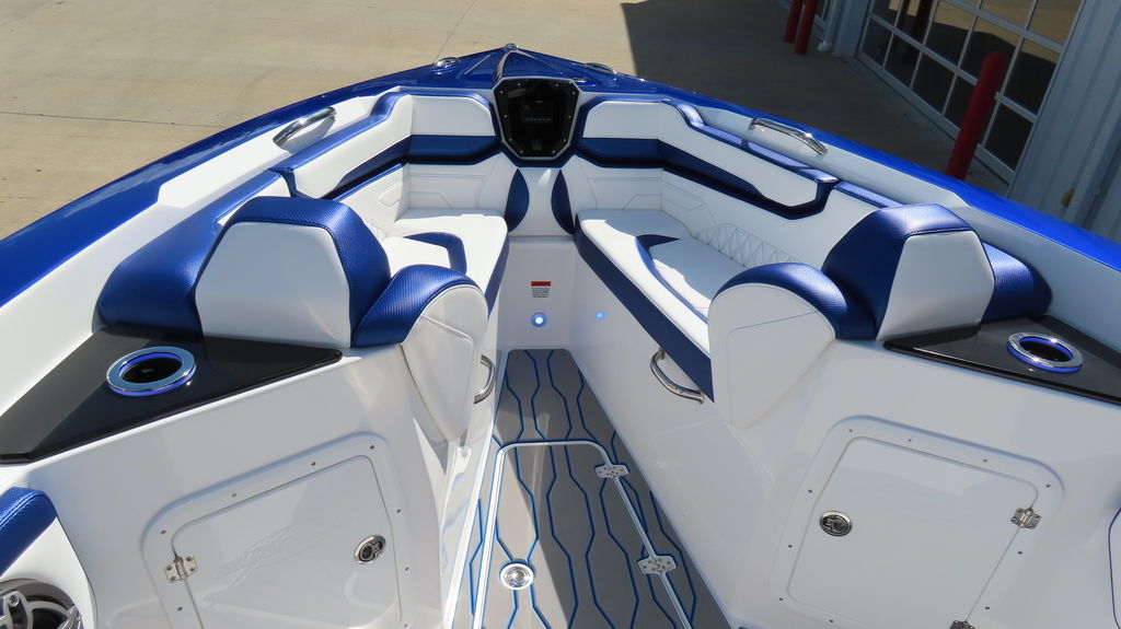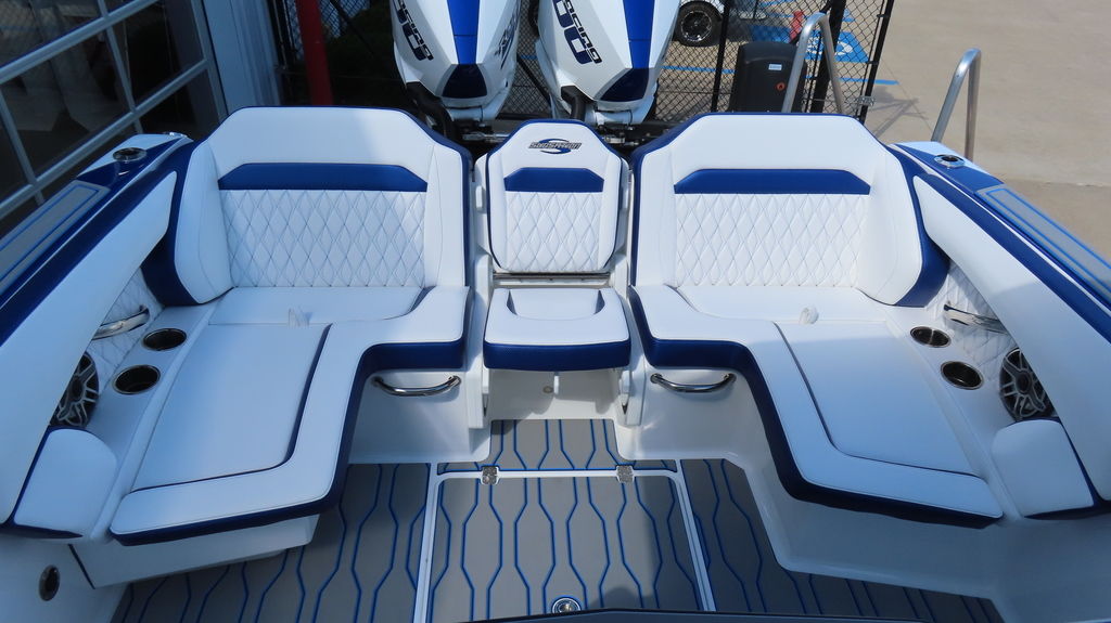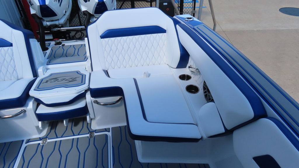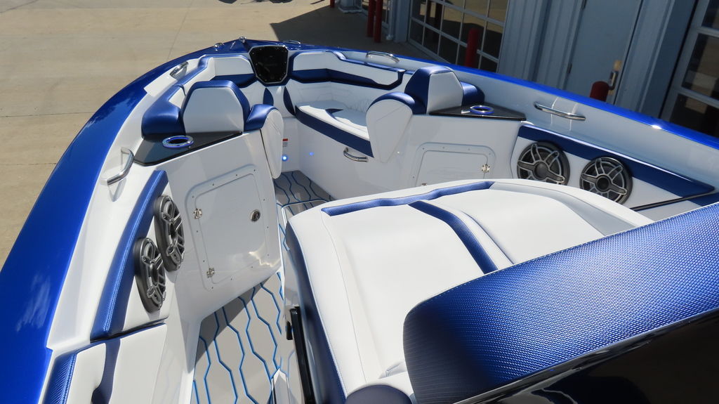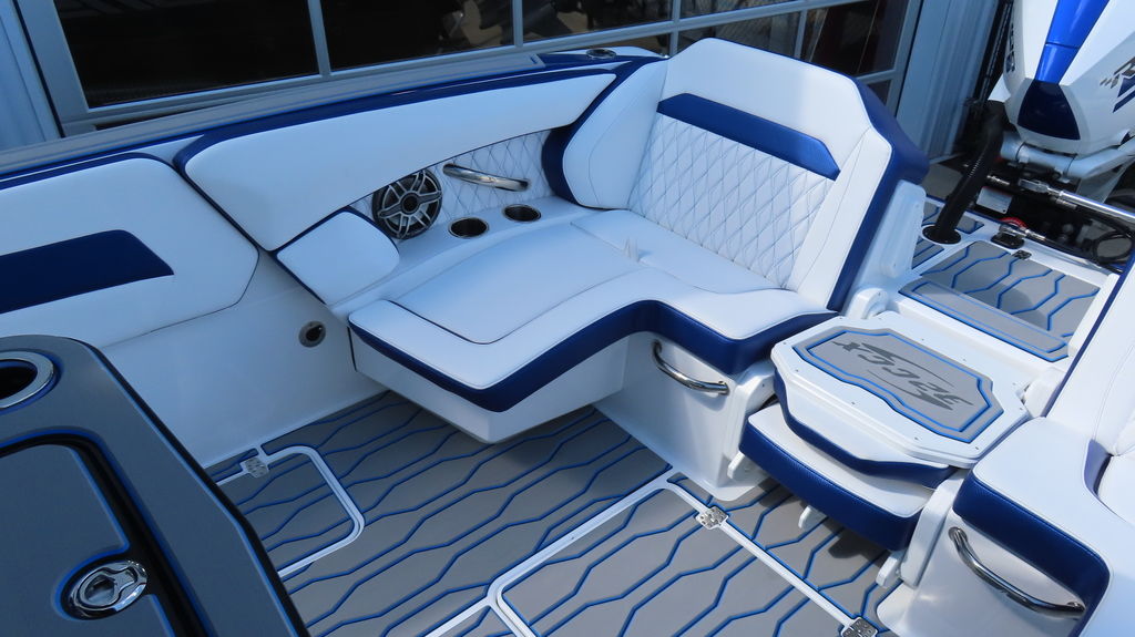 Loaded with options, stage 3 JL Audio sound system with bow and transom remotes, stage 3 engine paint, Additional battery with onboard charger and electric switch on dash, dual Garmin 8616s. Mercury Vessel View, depth sounder, LED RGB color changing cockpit lights, Sea Deck flooring, Isotta steering wheel with tilt, LED trim tab indicators, pump out porta potty, and windlass anchor. Trailer Available!