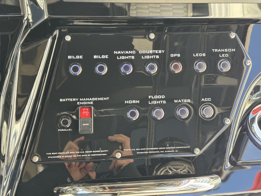 Loaded with options, stage 2 JL Audio sound system with bow remote, stage 1 engine paint, additional battery with onboard charger and electric switch on dash, dual Garmin 8616s, Garmin TD50 in bow, Mercury Vessel View, depth sounder, LED RGB color changing cockpit lights, Seadek flooring, Isotta steering wheel with tilt, LED trim tab indicators, pump out porta potty, windlass anchor, custom paint, and much more!