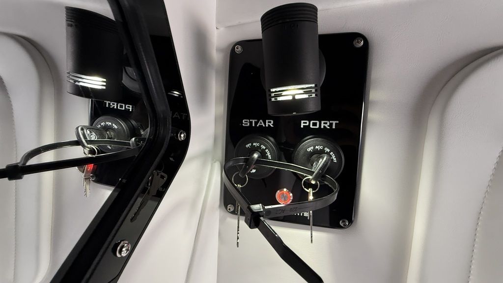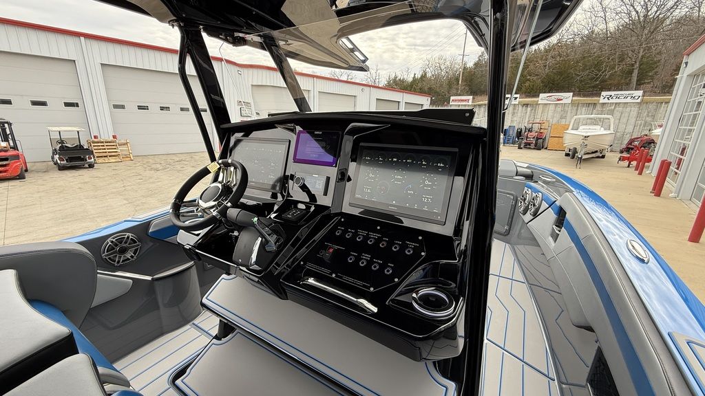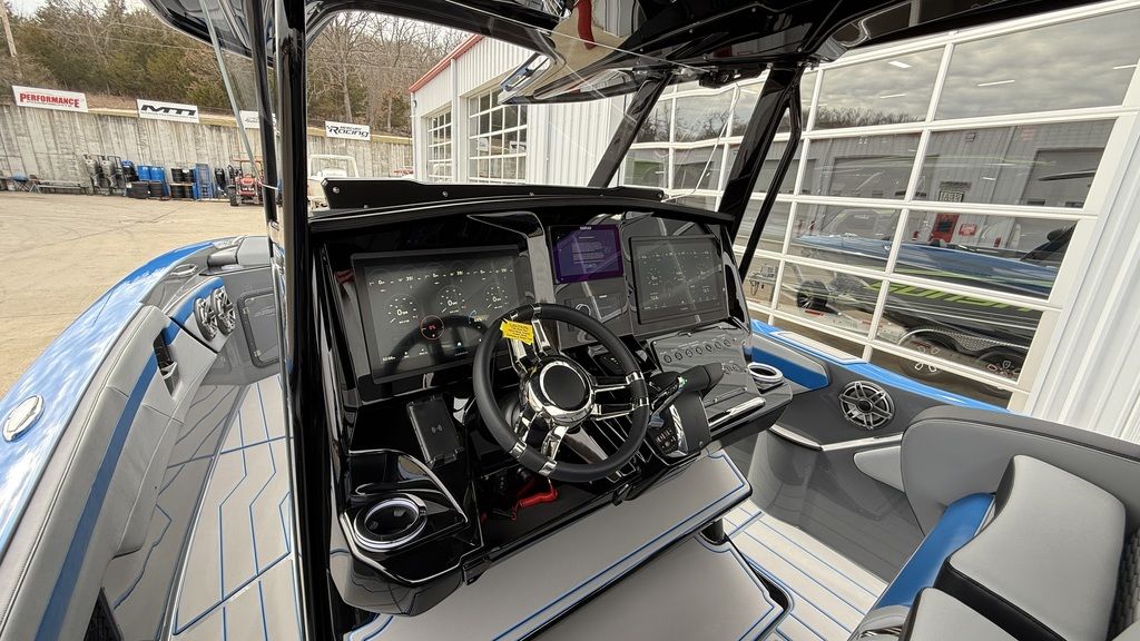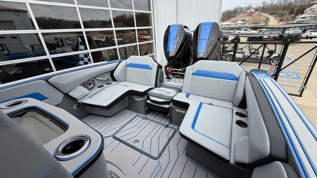 Loaded with options, stage 2 JL Audio sound system with bow remote, stage 1 engine paint, additional battery with onboard charger and electric switch on dash, dual Garmin 8616s. Mercury Vessel View, depth sounder, LED RGB color changing cockpit lights, Seadek flooring, Isotta steering wheel with tilt, LED trim tab indicators, pump out porta potty, windlass anchor, custom paint, and much more!
