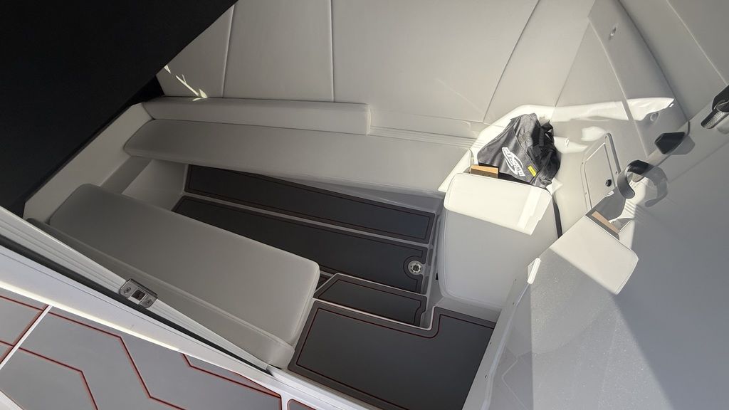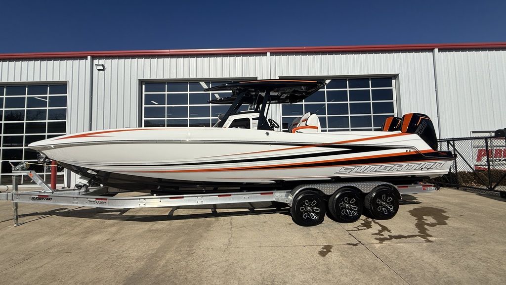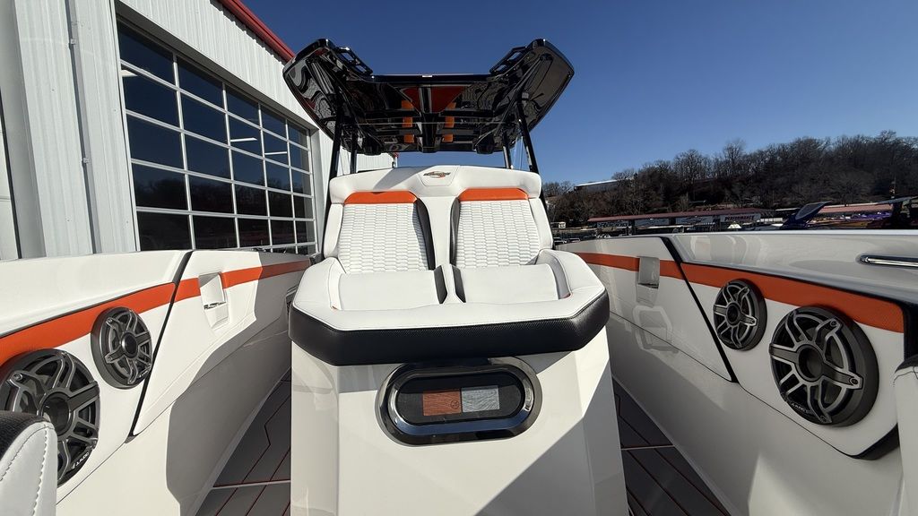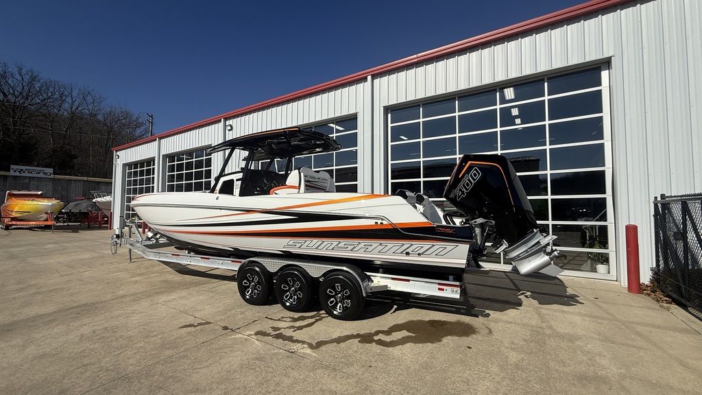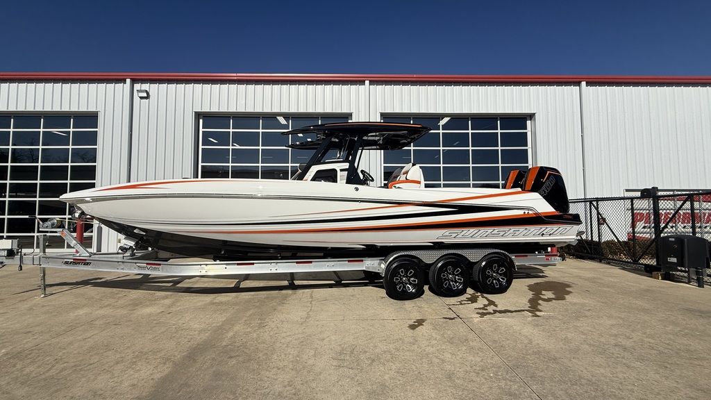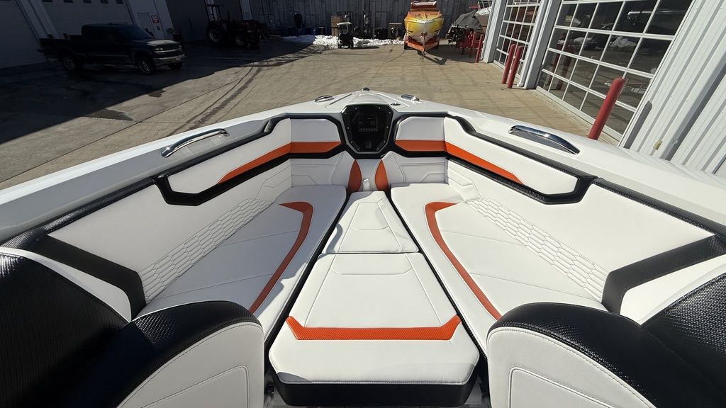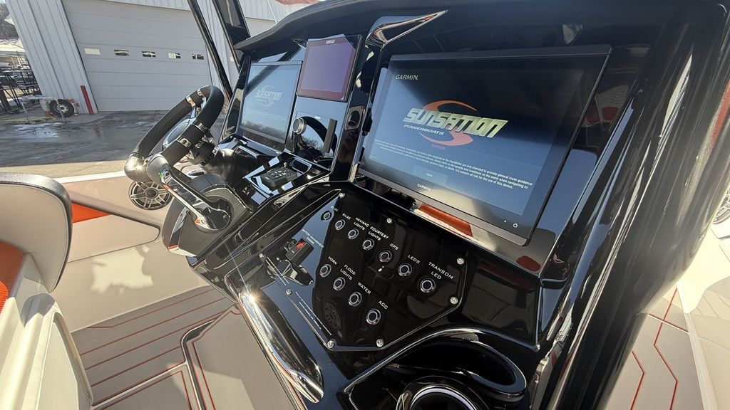 powered by twin Mercury Racing V10 400R V10'S. STANDARD EQUIPMENT; Additional battery with onboard charger and electric switch on dash, dual Garmin 8616s, Mercury Vessel View, Stage 2 JL Audio stereo upgrade with remote in bow, depth sounder, LED RGB color changing cockpit lights, Sea Deck flooring, Isotta steering wheel with tilt, LED trim tab indicators, Mercury Vessel View Garmin, pump out porta potty, and windlass anchor. OPTIONAL EQUIPMENT: Stage 2 stereo upgrade. White gelcoat on deck and modules, black dash, black hard top, Mitcher T custom paint, canvas package; includes TTop cover, and high pressure washdown. Trailer available, financing and transportation available.