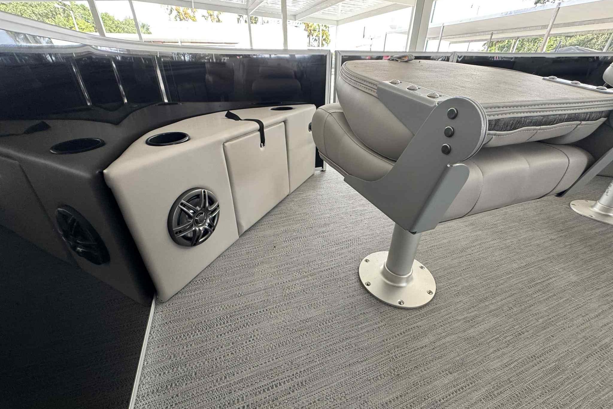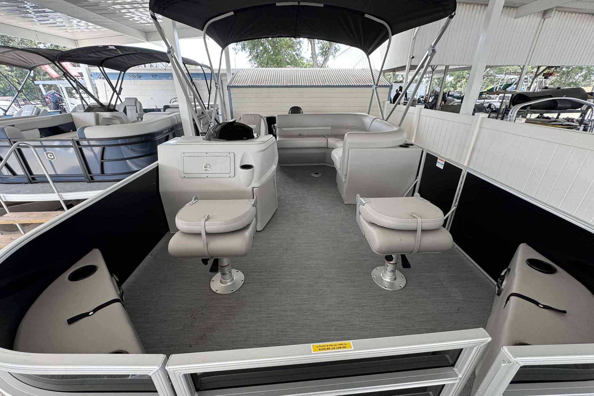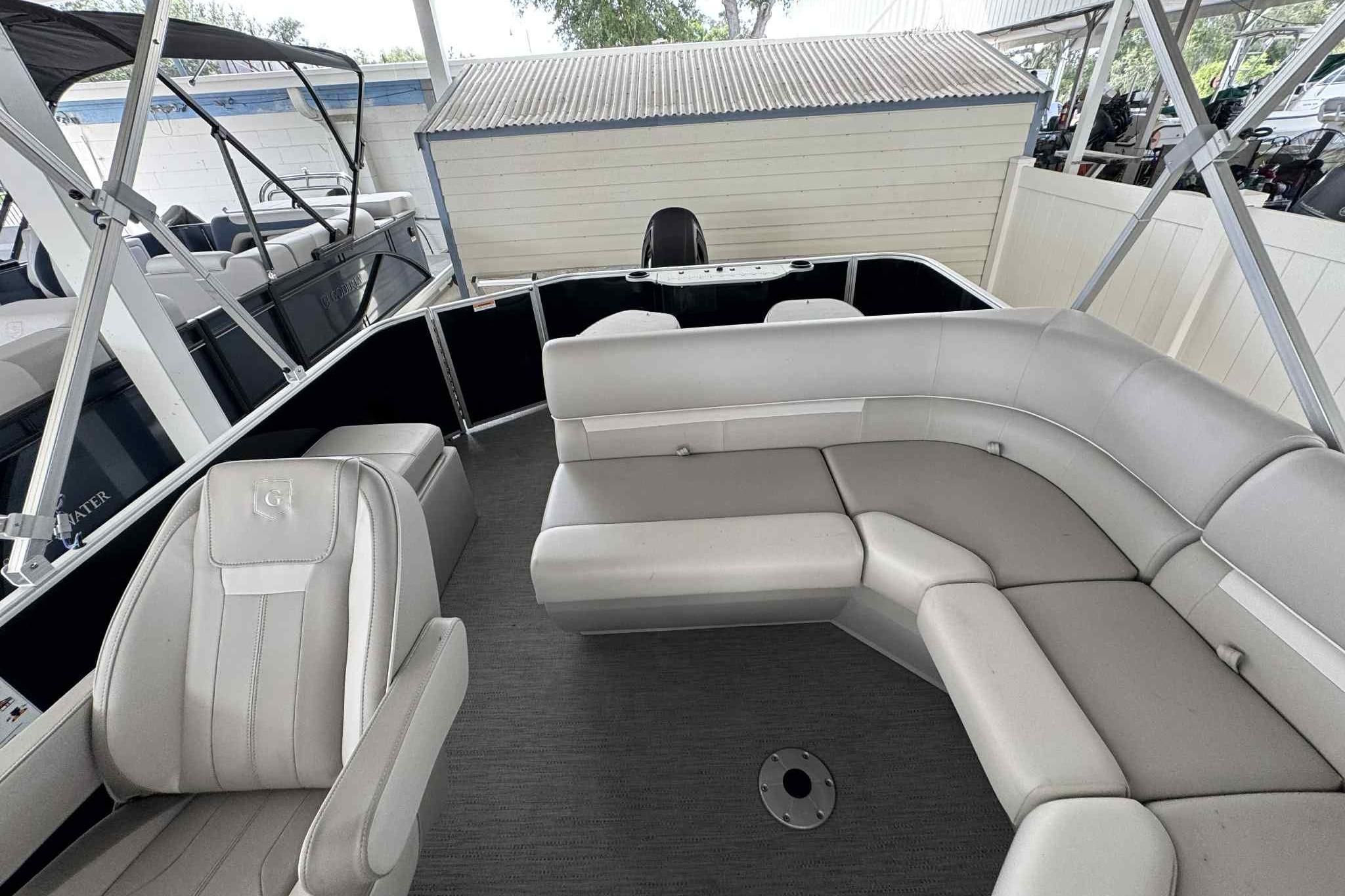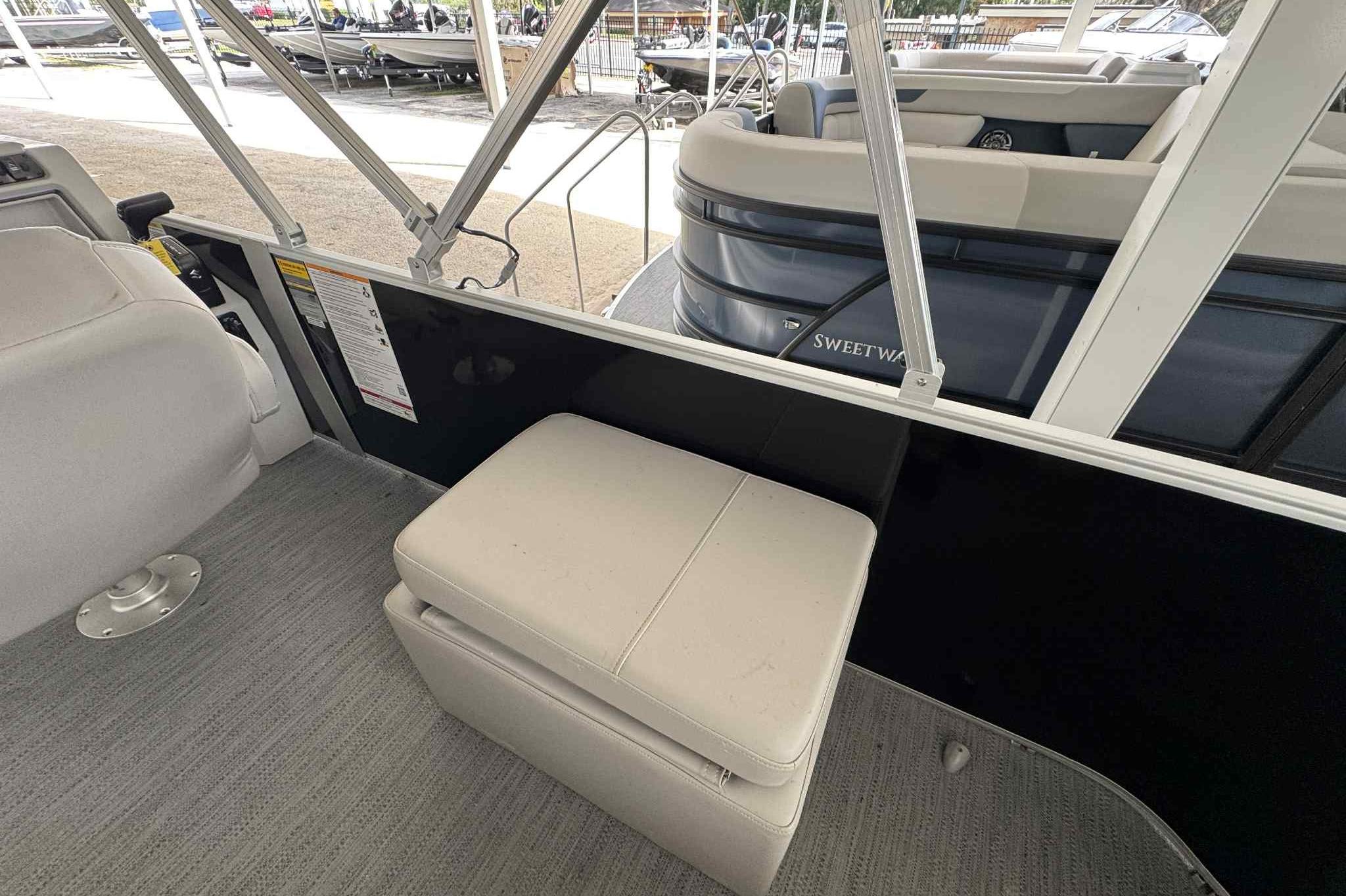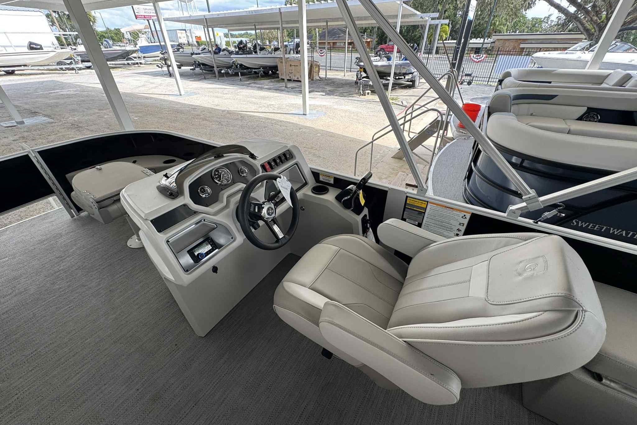 IN STOCK NOW!! Reel in the fun with one of our Sweetwater Xperience Fishing models. Endless laughs and smiles from ear to ear are guaranteed.Making every moment count is everything our Sweetwater Xperience Fishing models are about. Smiles and memories to last a lifetime come standard. Equipped with a 90 HP Yamaha Canopy Frame - Anodized Silver Canopy w/ Protective Boot - Navy Playpen cover - Navy Standard Nylon Canopy Brackets Keel Strips; Standard Motor Pan: Upgrade Outside Skirting Trolling motor harness kit with plug & half gate Tubes; 25" Outer Corner Castings; Silver Ladder; Silver EZ Climb Stern Lighting; LED Docking Lights Rail Frame Color - Anodized Silver Rail Skin Color - Metallic Navy Rub rail; Aluminum - Silver Ski Tow Bar Stainless Steel Fixed Cleats Flooring Full - Platinum Weave Base Vinyl Color - Platinum Grey Captain's chair upgrade; swivel; slider; reclining; fold down arms with 10" fixed pedestal Changing Room Chaise - Black Cup holder; Removable - One Standard Livewell Round Table; stern with built-in cup holders Standard Bow Fish Seats (2) with 13" fixed pedestals Standard Stern Fish Seats (2) with 15" fixed pedestals Standard Gauges