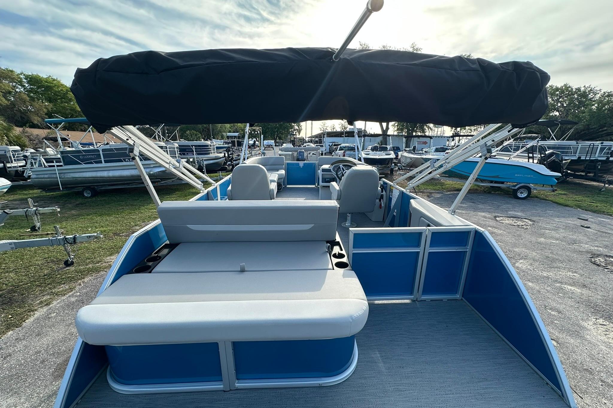 2026 Godfrey® Sweetwater EX2286SFLX w/ Suzuki® DF115BTLThe 2026 Godfrey Sweetwater EX2286SFLX delivers a spacious 23’10” layout designed for comfort, cruising, and entertaining on the water. With upgraded performance features, premium interior finishes, and practical storage throughout, this model offers a balanced combination of style, function, and durability for Florida boating.Boat SpecificationsLength: 23’10”Beam: 8’6”Fuel Capacity: 30 GallonsMax Horsepower: 150 HPPerson Capacity: 12Dry Weight: 2,694 lbsKey Standard FeaturesWarm Gray Base Vinyl w/ Glacier Accent VinylBlack Smooth Rail SkinAnodized Silver Rail FrameFastback RailsManual EZ Lift Canopy w/ Anodized Frame & Dome LightBlack CanvasPlatinum Weave Flooring4 Stainless Steel Fixed CleatsSilver Corner CastingsStandard KeelSilver EZ Climb LadderUpgraded Motor PanOutside SkirtingSilver Aluminum Rub Rail25” Outer TubesClarion Plus Stereo Package – CMM-10 w/ LCD DisplayBluetooth, AUX Input, 4x20W RMS Output(4) Speakers w/ Gray GrillesCaptain’s Chair – Swivel & SlideCo-Captain’s Chair – Swivel & SlideInterior Courtesy LightMovable Cup HoldersStorage Box w/ CupholdersStern Storage Box w/ Tip-Out Fender StorageSwitch PanelCooler StorageFull Gauge Package (Tach, Hour Meter, Fuel Gauge, Voltmeter)Trim Gauge w/ Engine Package12V Outlet & USBHornCable Steering20” TransomUpgraded Factory Installed OptionsPerformance & HandlingEngine Install – Engine HP 150 and LowerSuzuki Pre-RigBayStar Hydraulic Steering w/ Tilt Wheel27" Impact Center Tube Package (OB)(25” outer tubes with 27” center tube, lifting strakes, under skin, 45-gallon fuel tank, heavy duty channels)Exterior & ConstructionXperience Extended Deck (Includes Battery Box Extension)Aluminum Rub Rail – SilverSaltwater Anode – 3 TubesCanvas & CoversManual Double Bimini w/ Protective Boot – BlackPlaypen Cover – BlackInterior & ComfortWarm Gray InteriorCaptain’s Chair Upgrade – Swivel, Slider, Reclining w/ Fold Down ArmsVinyl Accent Color – GlacierStern Storage Box w/ Tip-Out Fender Storage, Dock Line Hooks & Small Item StorageFlooringPlatinum Weave FlooringElectronics & HelmWindshieldPricingBase Price: $37,774.39Total Package Price: $51,823.17Financing ExampleEstimated Payment: $575 per month*240 months | 7.99% APR | 10% Down*With approved credit.The EX2286SFLX offers a strong mix of upgraded performance, expanded deck space, and premium comfort features. With its center tube package, hydraulic steering, and thoughtful layout, it’s designed to deliver a smooth and enjoyable experience whether cruising, relaxing, or spending the day on the water.For availability, a detailed walk-through, or to structure financing around your goals, contact Holiday Marine directly — we’ll make the process simple and straightforward.Offered by Holiday Marine — Serving Florida Boaters Since 1949.