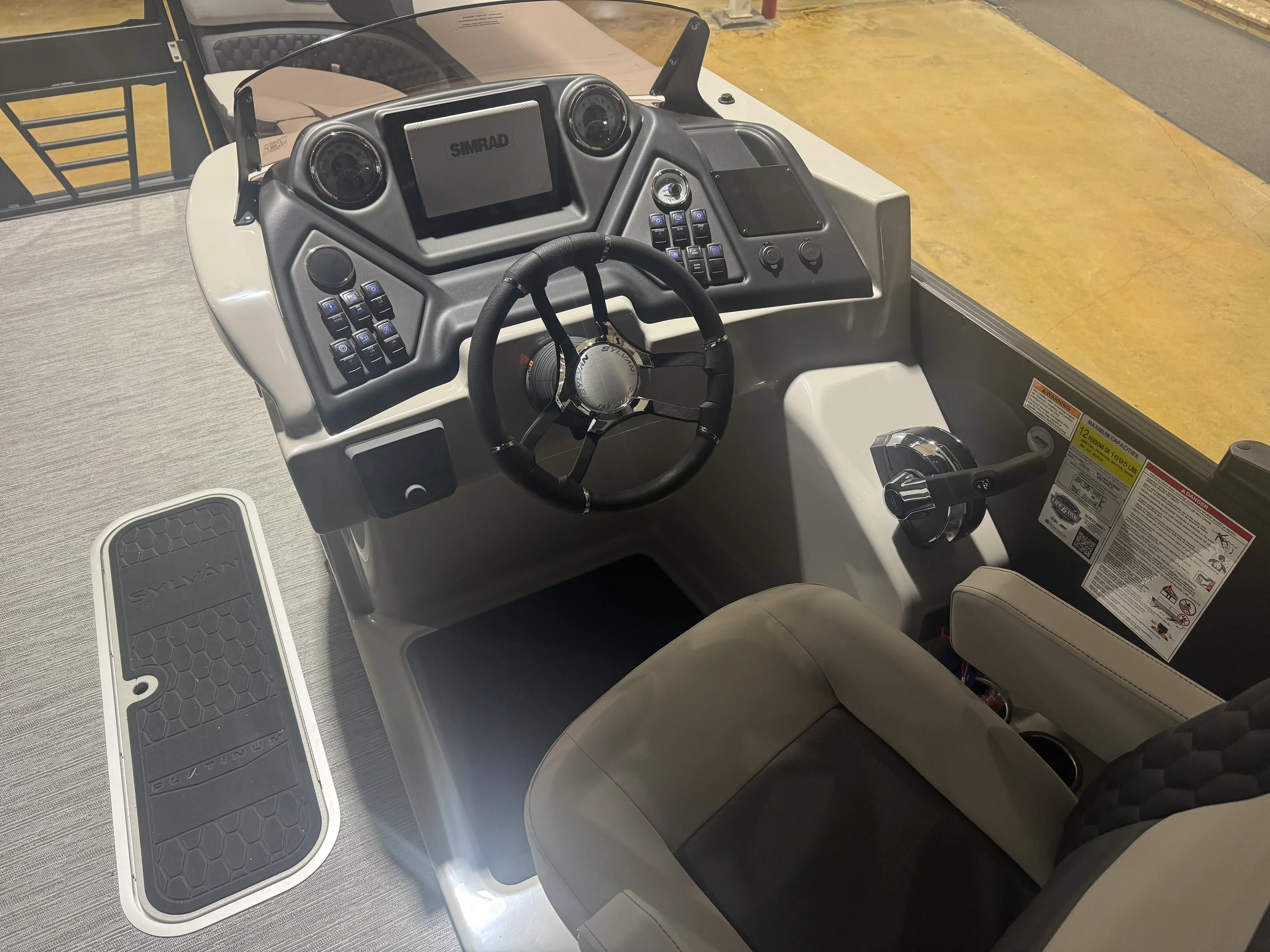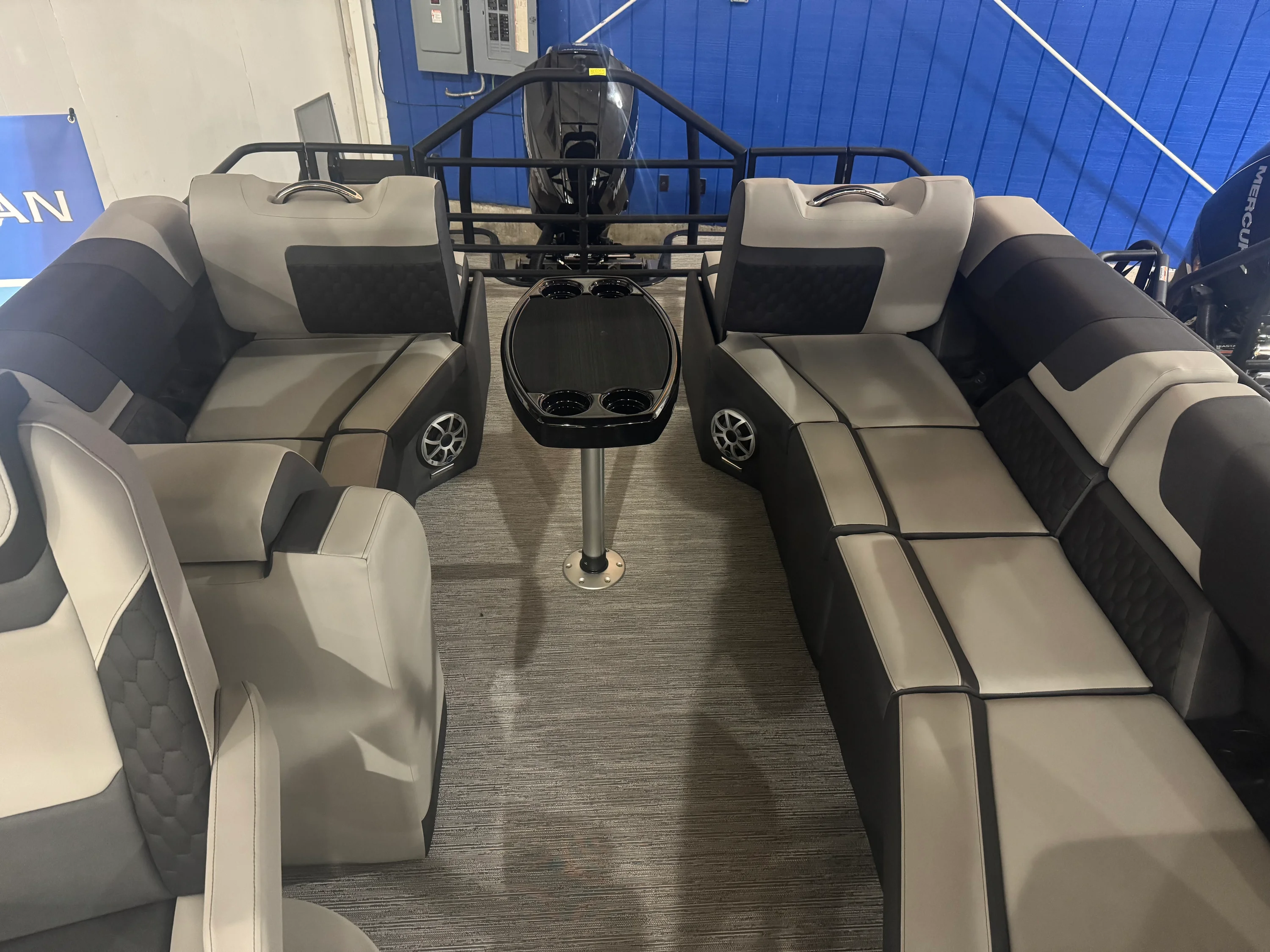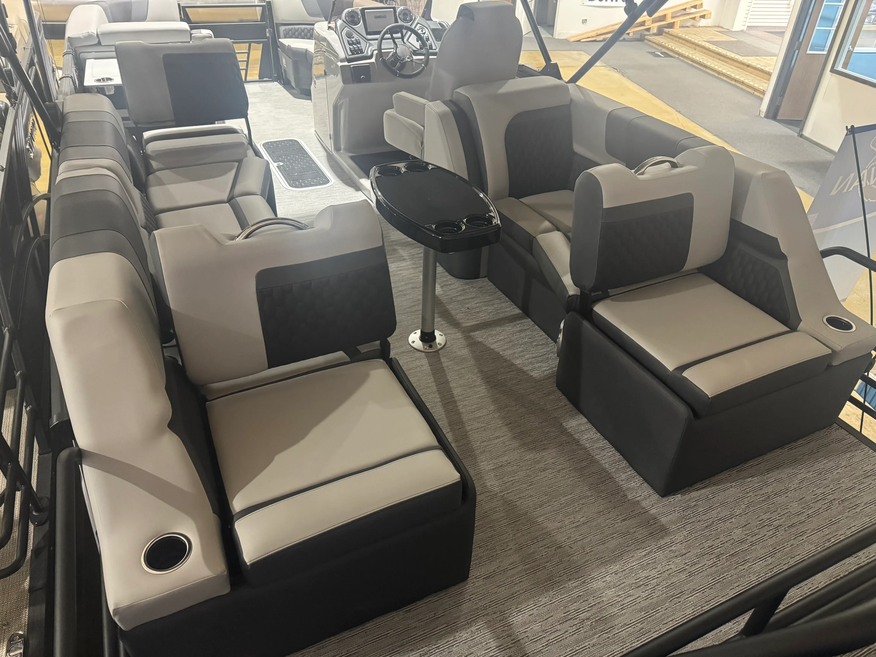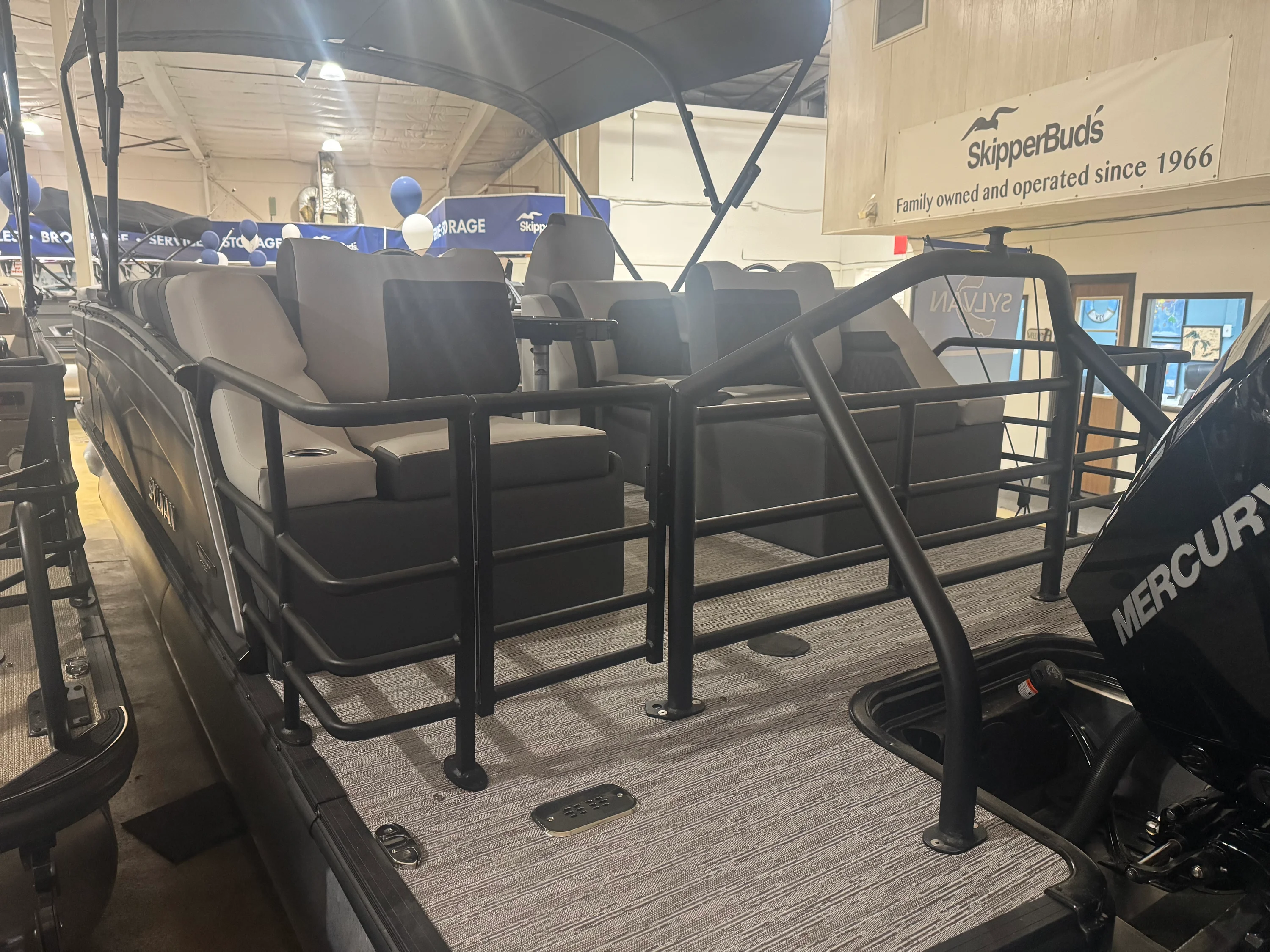 The Sylvan pontoon L3 SLZ elevates your on-water experience with its ingenious design, maximizing seating comfort with wrap-around bow couches and multiple swing backs in the stern provide versatility without compromising on luxury. This pontoon embodies the signature features that define the L-series from Sylvan, ensuring an indulgent outing every time. With the standard SPX third tube performance package, the Sylvan L3 SLZ guarantees exceptional stability and effortless cruising, promising a safe and enjoyable journey for all passengers. Additionally, the standard power canopy provides ample shade, allowing you to bask in the sun or find refuge from its rays as you please. Whether you're lounging with friends or embarking on thrilling adventures, the Sylvan L3 LZ offers the perfect blend of comfort, performance, and style for unforgettable moments on the water.