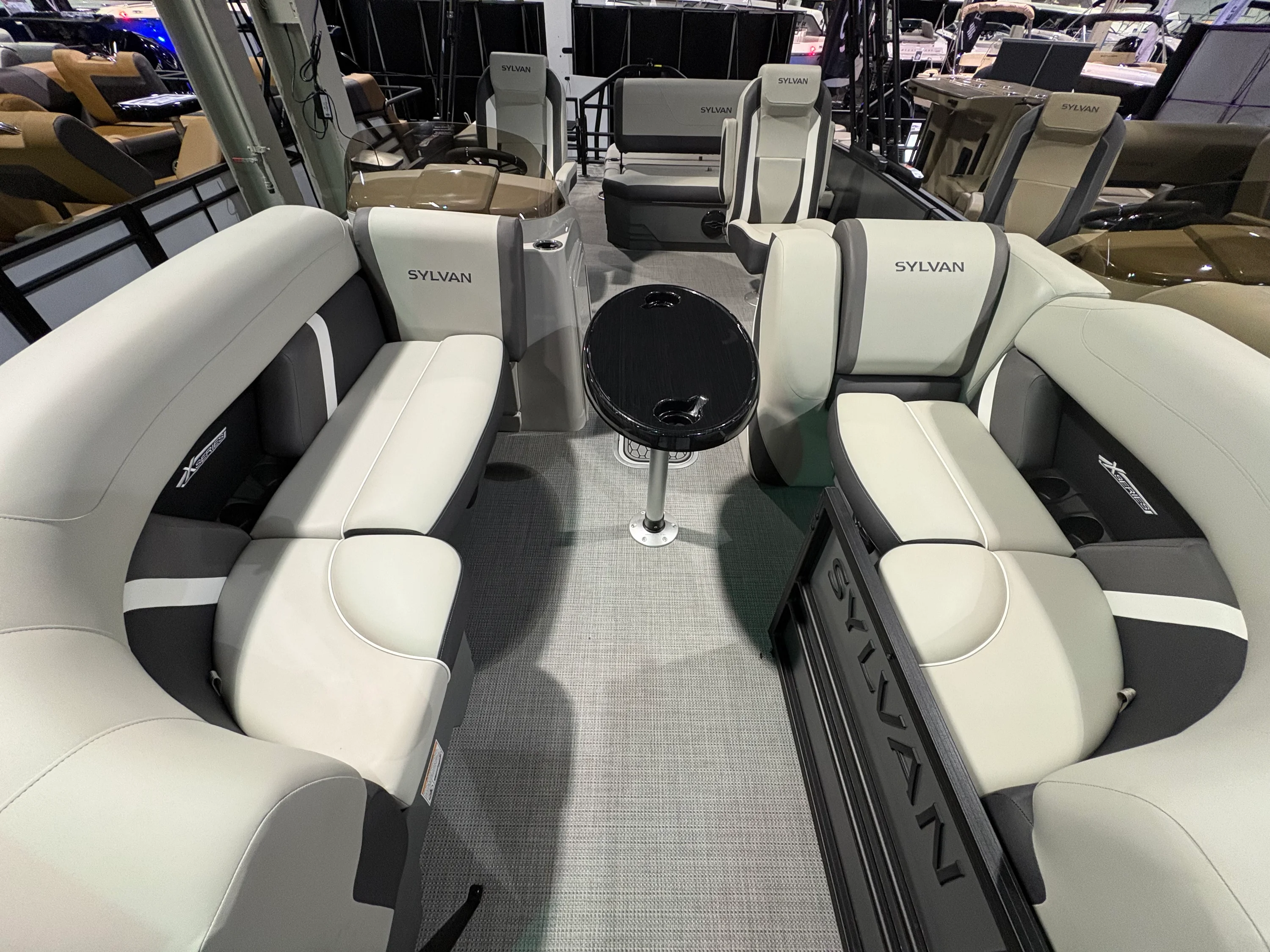 The Sylvan Mirage X3 CLZ DH, featuring side-by-side captain chairs, redefines the concept of family-friendly performance pontoons, merging luxurious comfort with exhilarating performance. With its unique configuration and wrap-around front couches and rear flip back seating, this pontoon offers ample seating for all, facilitating comfortable gatherings and scenic cruising. Equipped with the standard SPX Third Tube Performance Package, the Mirage X3 CLZ DH effortlessly achieves unmatched stability and agility, promising an exciting ride for adventurers of all ages. Whether it's a leisurely day of lakeside exploration or an action-packed session of water sports, the Mirage X3 CLZ DH delivers unparalleled versatility and excitement, solidifying its status as the ideal choice for families seeking unforgettable moments on the water.
