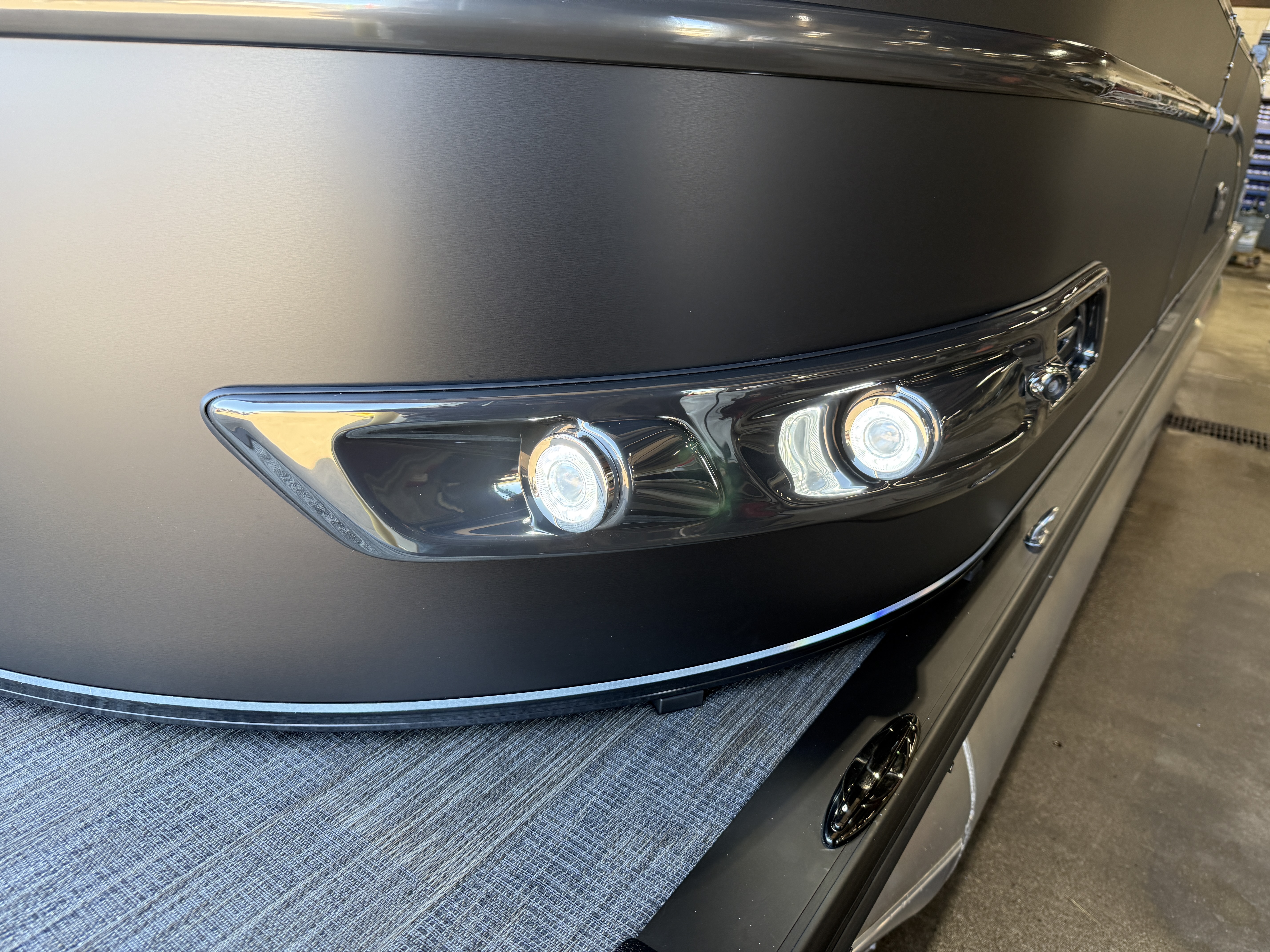 Honda 4-Stroke EFI. This 23' Matte Black Walls Tri-Toon Has Front Lounge Seating