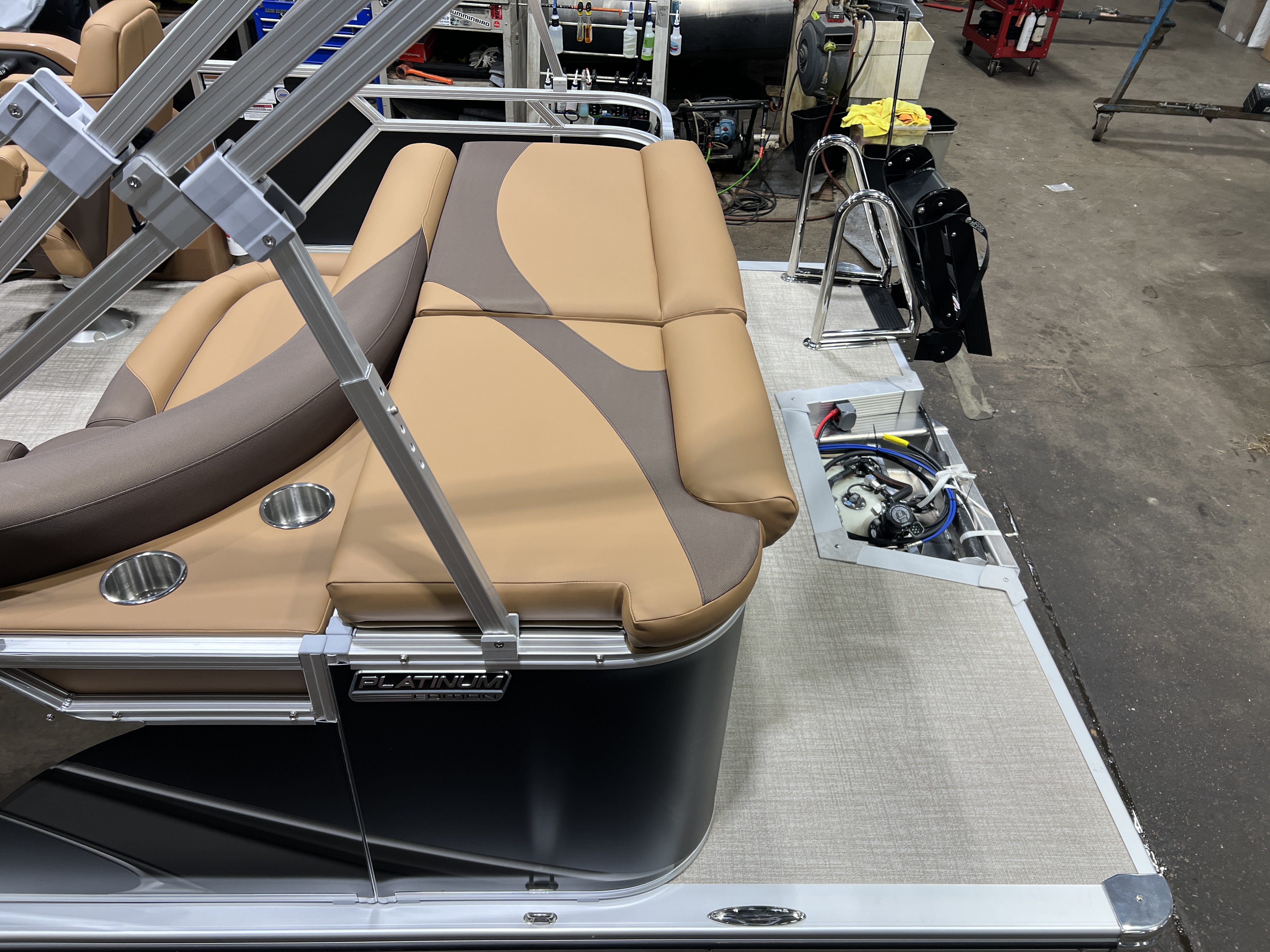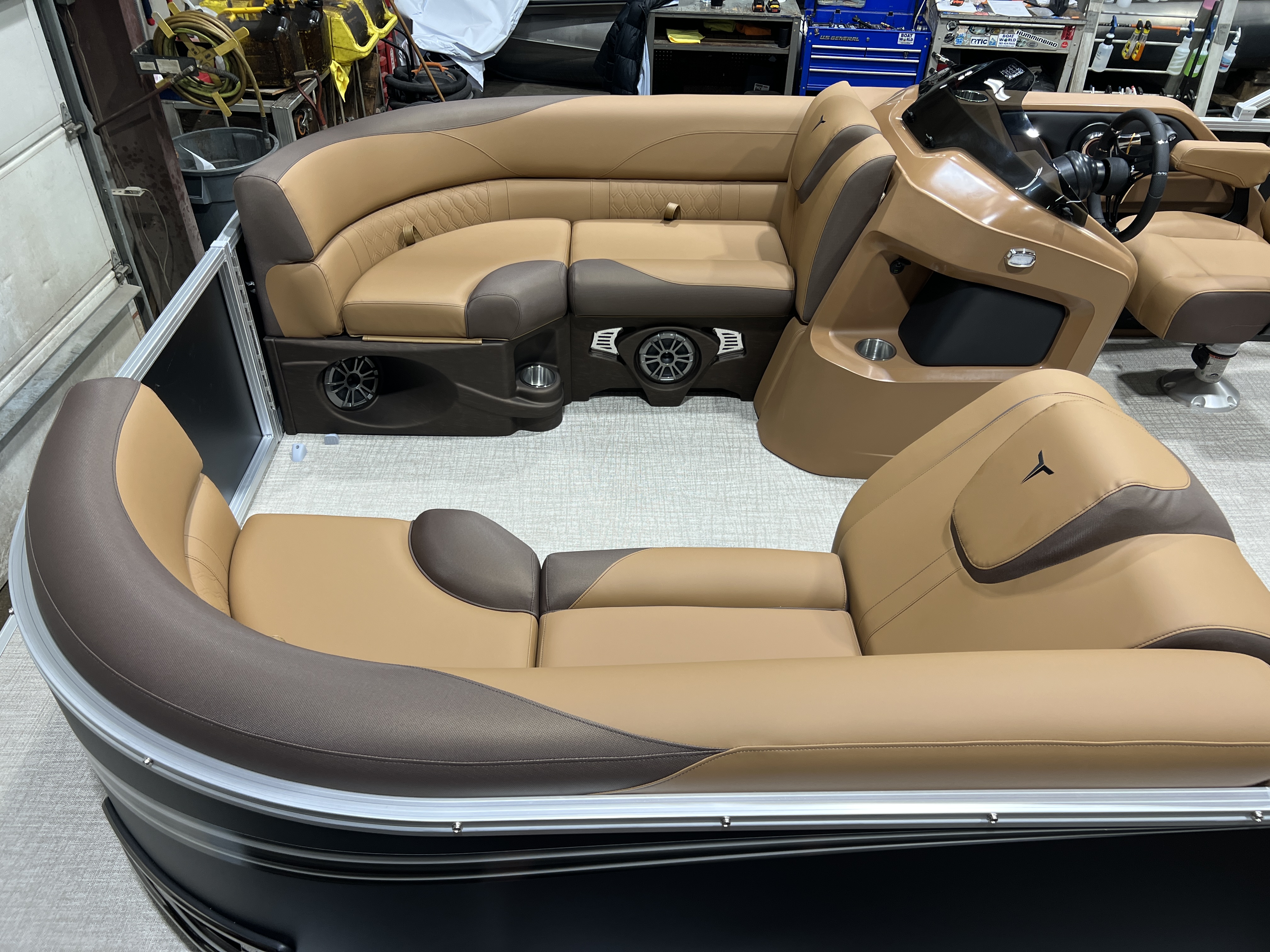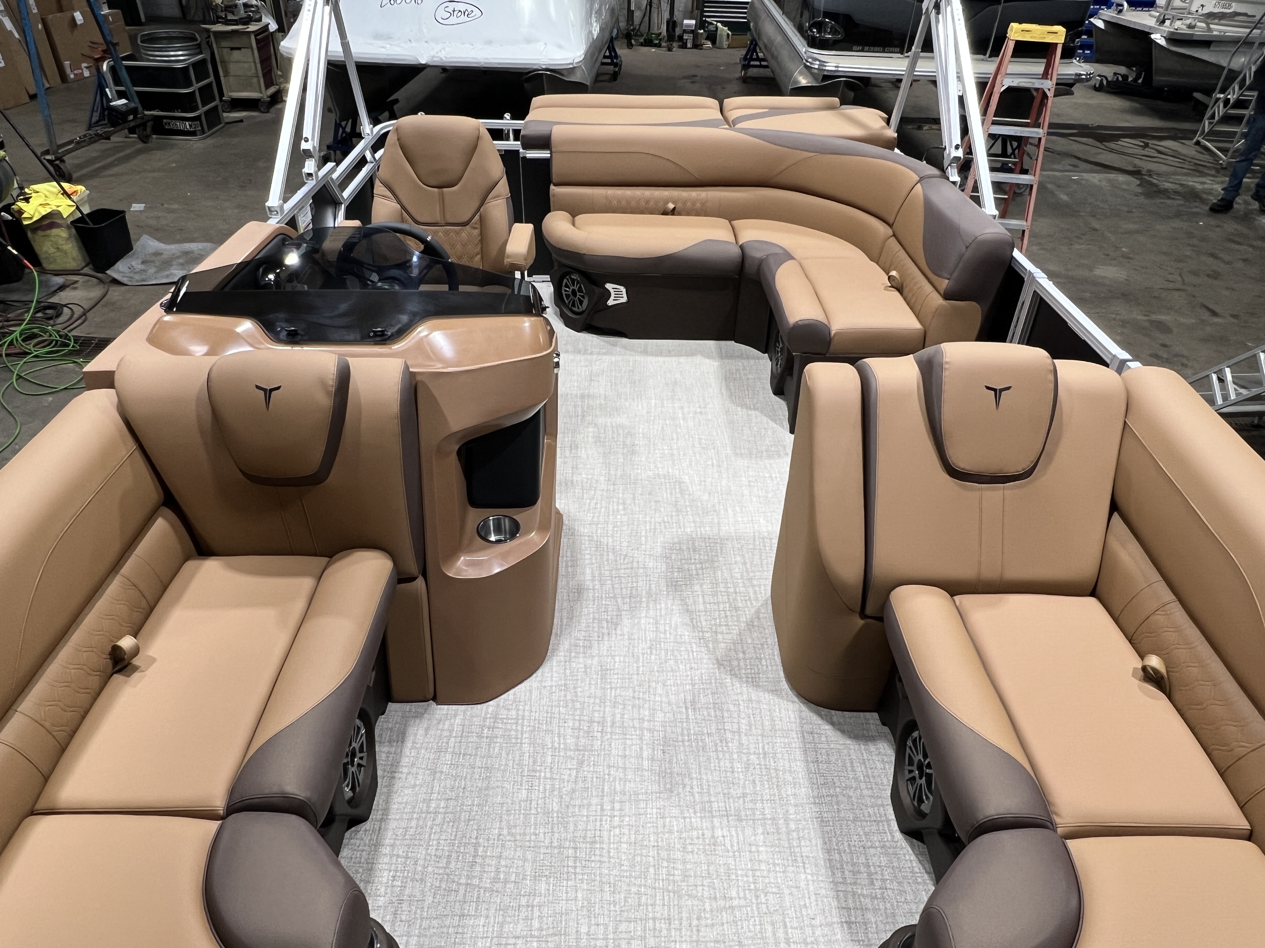 2026 Tahoe LTZ 1985 Cruise Pontoon & Honda 4-Stroke EFI. This 19' Cruise Pontoon Has 2 Lounge Bench Seating Up Front With Storage, Rear Wrap Around Seating With Storage, Rear Sun Pad/Storage, Riptide Vinyl Floor, Built-In 25 Gallon Gas Tank, LTZ Platinum Package (Ultra Fine Touch Vinyl Upgrade, Garmin 52CV GPS Depth Finder, SST Pull-Up Cleats, LED Smoked Docking Lights, SST Vent Covers, Polished Corner Caps, Platinum Edition Badging), Cognac Vinyl Package With Expresso Accent, LED Nav Lights, Gauge Package With Hour Meter, Bluetooth Fusion Radio With 6 Speakers & Amp, Tilt Steering, Lillipad Easy Step Ladder, Admiral Reclining Captain's Chair, Greywood Rectangle Table, Lifetime Aluminum Seat Frames, Mooring Cover, Adjustable Bimini Top, 25" Tubes, Multiple Cup Holders, Smoked Chrome Logos, Bow USB Charging Port, New Battery, Battery On/Off Switch, Front And Rear Swim Deck. Rated For 10 People.