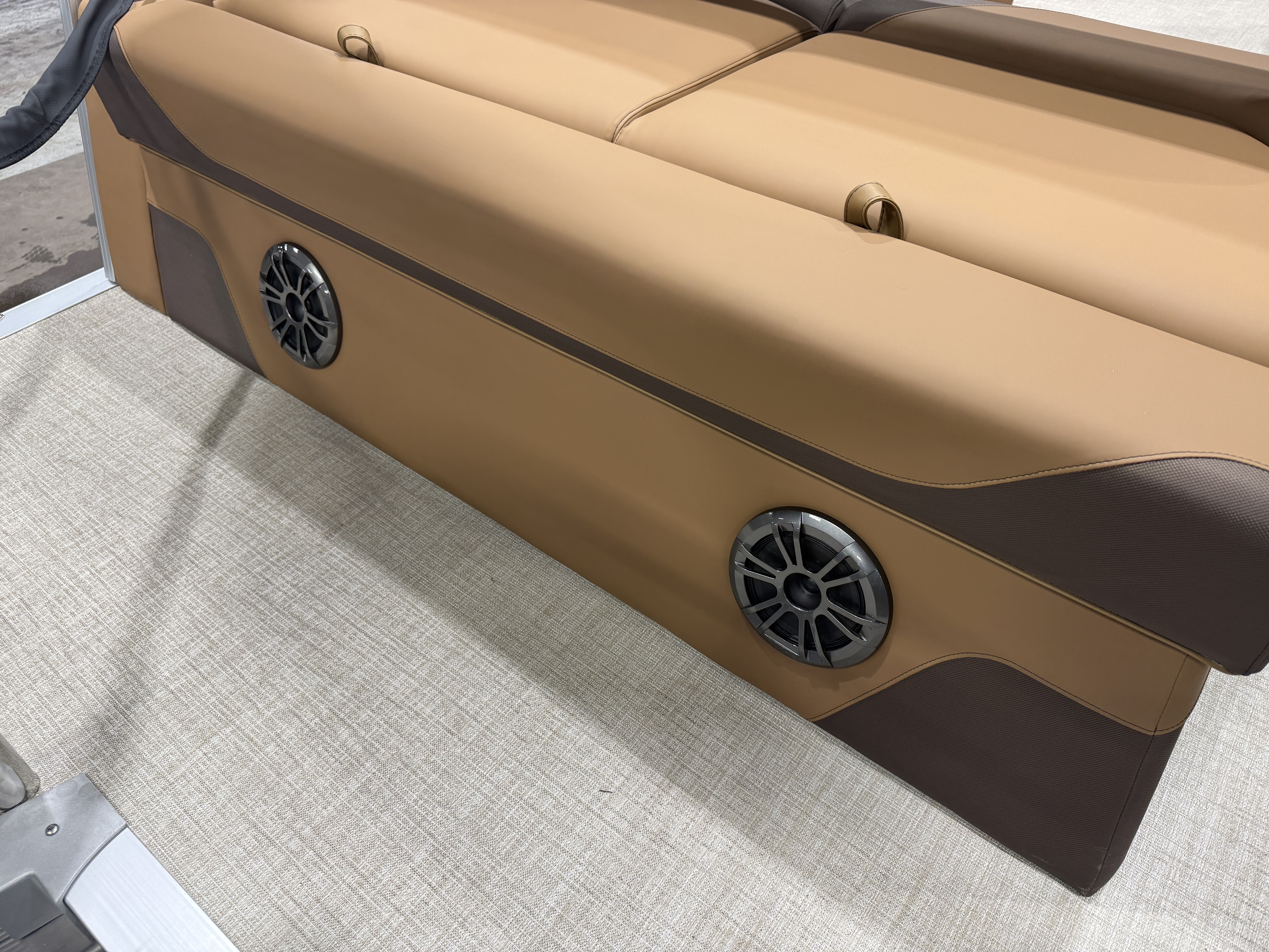 2026 Tahoe LTZ 1985 Cruise Rear Bench Pontoon & Honda 4-Stroke EFI. This Matte Black Walls Pontoon Has Bench Seating Up Front With Storage (1 Chaise Lounge), Wrap Around Chaise Lounge Seating With Storage, High Back Reclining Admiral Captain's Chair, Cognac Interior Package w/Expresso Accent, Rear Facing Swingback Bench Seat w/Chained Aft, Ski Tow Bar, Fusion Bluetooth Radio w/6 Speakers & Amp, Built In 25 Gallon Gas Tank, Table, Multiple Cup Holders, Adjustable 10' Bimini Top, LTZ Platinum Package (Ultra Fine Vinyl Upgrade, Garmin 52CV GPS Depth Finder, SST Pull-Up Cleats, LED Smoked Chrome Docklights, Polished Corner Caps, Platinum Edition Special Badging), Starboard Aft Storage & Cup Holders, SST Vent Covers, Lillipad Easy Step Ladder, Brushed Bronze Cladding, New Battery And Prop, On/Off Battery Switch, Mooring Cover, Riptide Vinyl Floor, Front And Rear Deck, 25" Tubes, LED NAV Lights, Smoked Chrome Logos, Tilt Steering, Bow USB Charging Port, Gauge Package w/Hour Meter. Rated For 10 People.