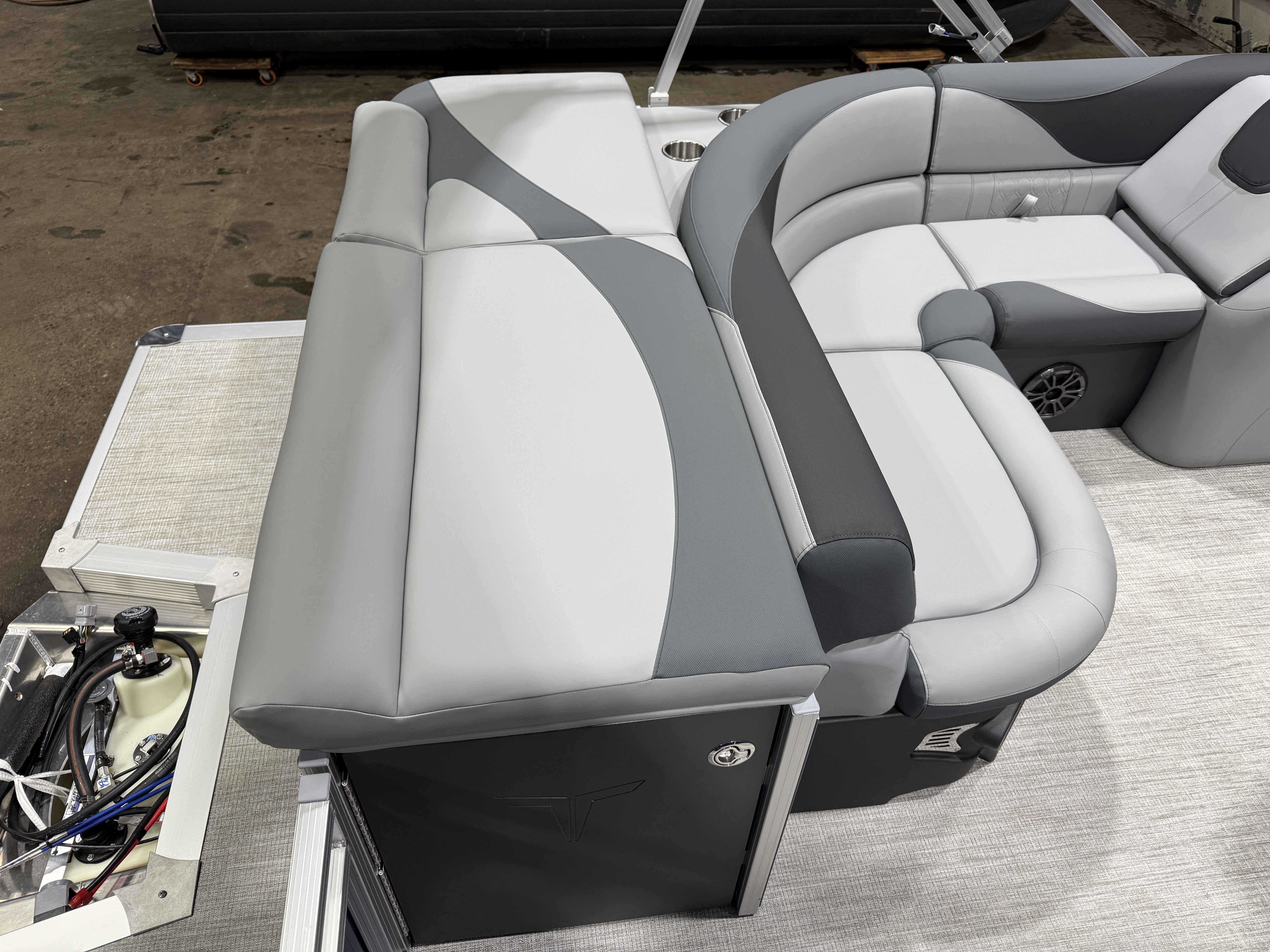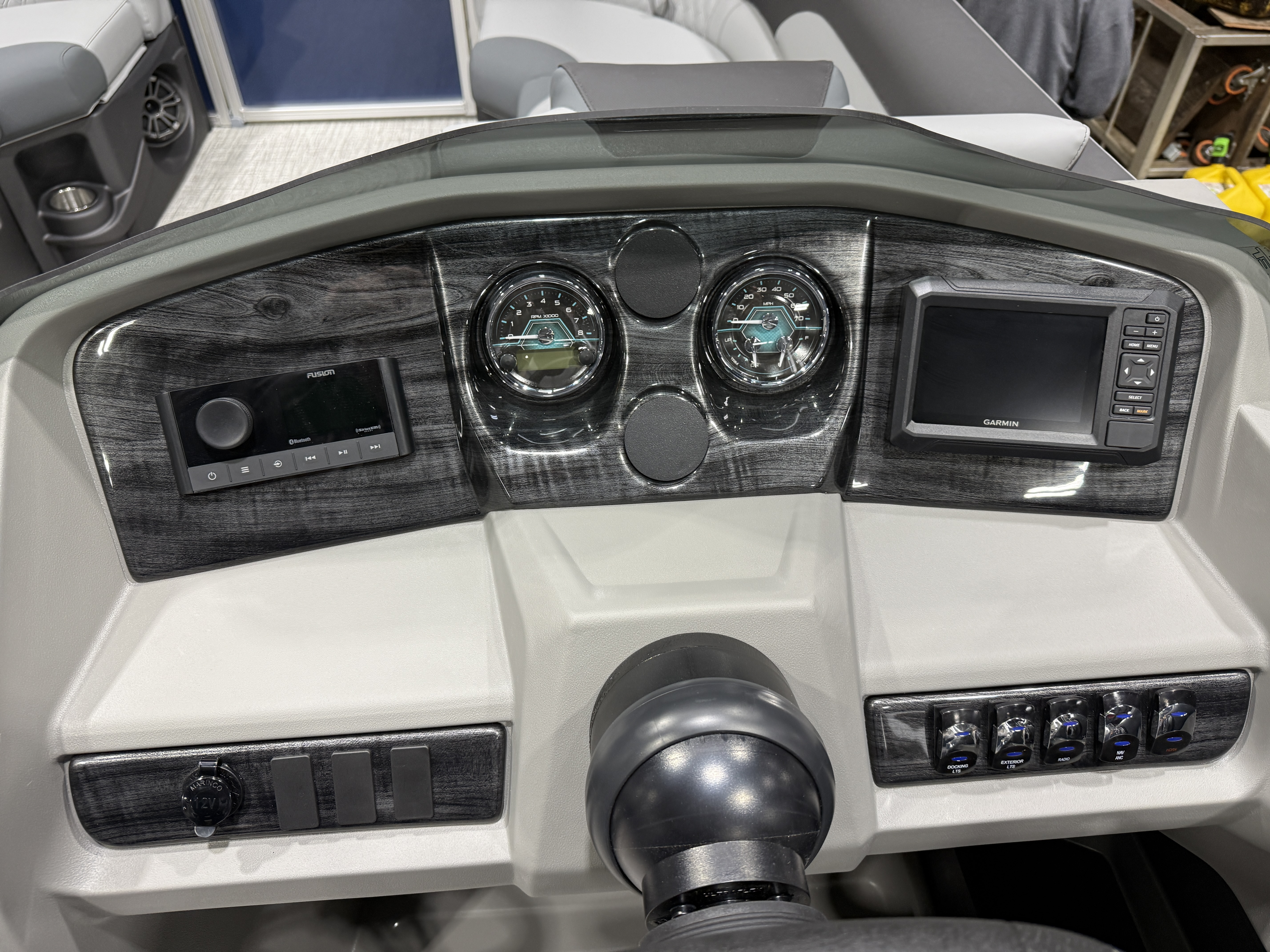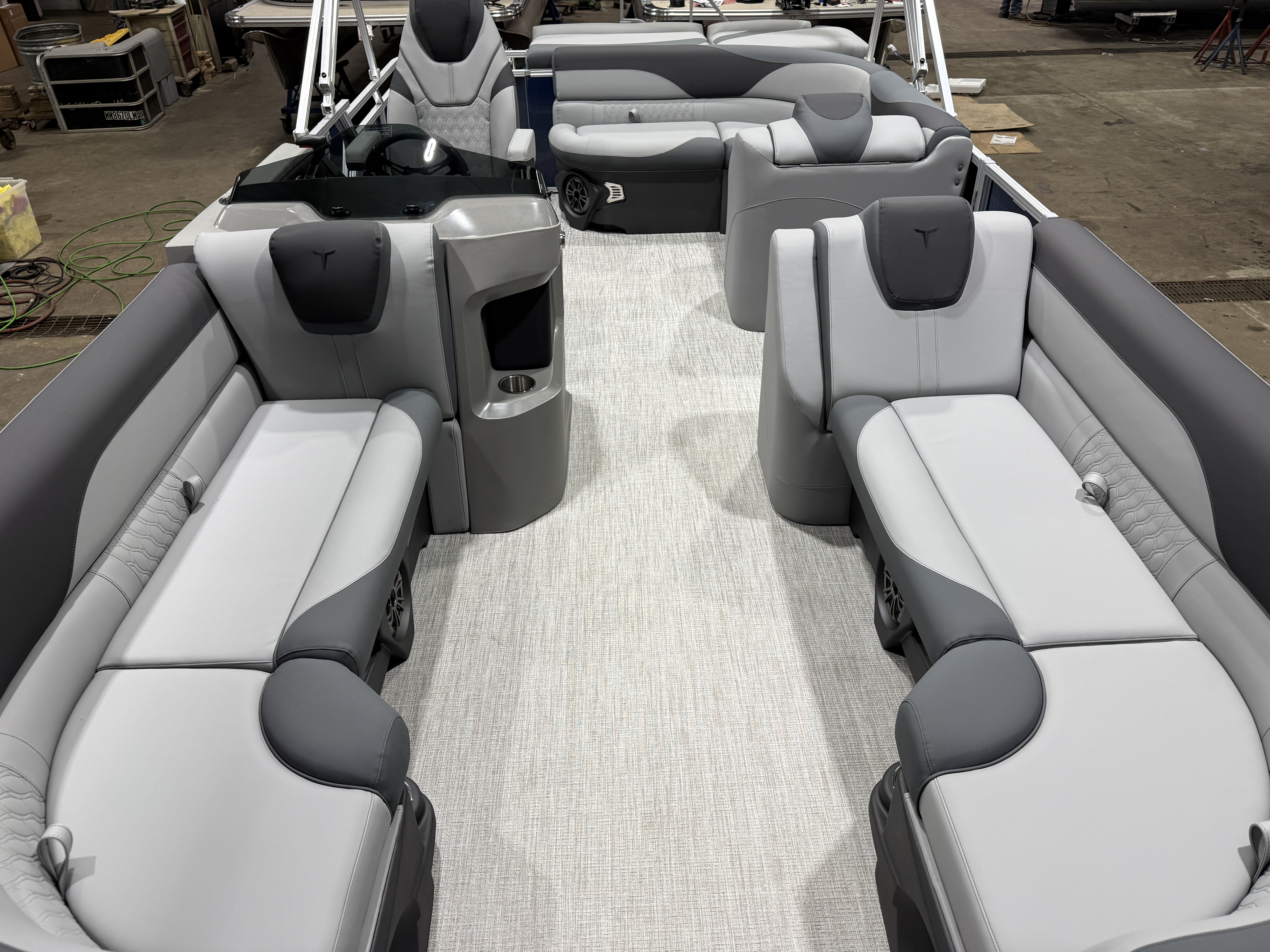 2026 Tahoe LTZ 2185 Cruise Pontoon & Honda 4-Stroke EFI. This 21' Cruise Pontoon Has 2 Lounge Bench Seating Up Front With Storage, Rear Wrap Around Chaise Lounge Seating With Storage, Rear Sun Pad/Storage, Riptide Vinyl Floor, Built-In 25 Gallon Gas Tank, LTZ Platinum Package (Ultra Fine Touch Vinyl Upgrade, Garmin 52CV GPS Depth Finder, SST Pull-Up Cleats, LED Smoked Docking Lights, SST Vent Covers, Polished Corner Caps, Platinum Edition Badging), Graphite Vinyl Package With Kool Fab Black & Charcoal Accent, LED Nav Lights, Gauge Package With Hour Meter, Bluetooth Fusion Radio With 6 Speakers & Amp, Tilt Steering, Lillipad Easy Step Ladder, Admiral Reclining Captain's Chair, Greywood Rectangle Table, Lifetime Aluminum Seat Frames, Mooring Cover, Adjustable Bimini Top, 25" Tubes, Multiple Cup Holders, Smoked Chrome Logos, Bow USB Charging Port, New Battery, Battery On/Off Switch, Front And Rear Swim Deck. Rated For 10 People.