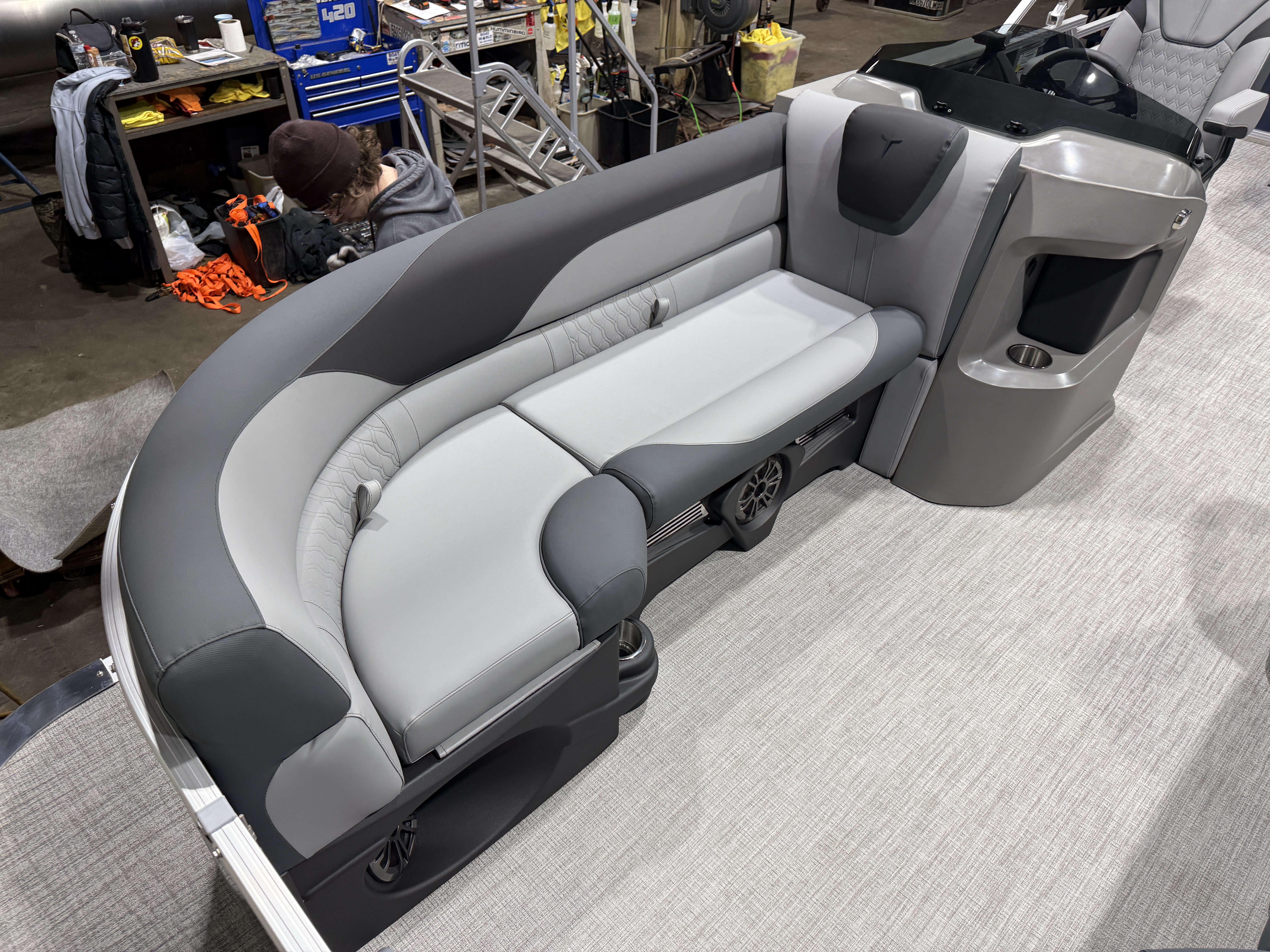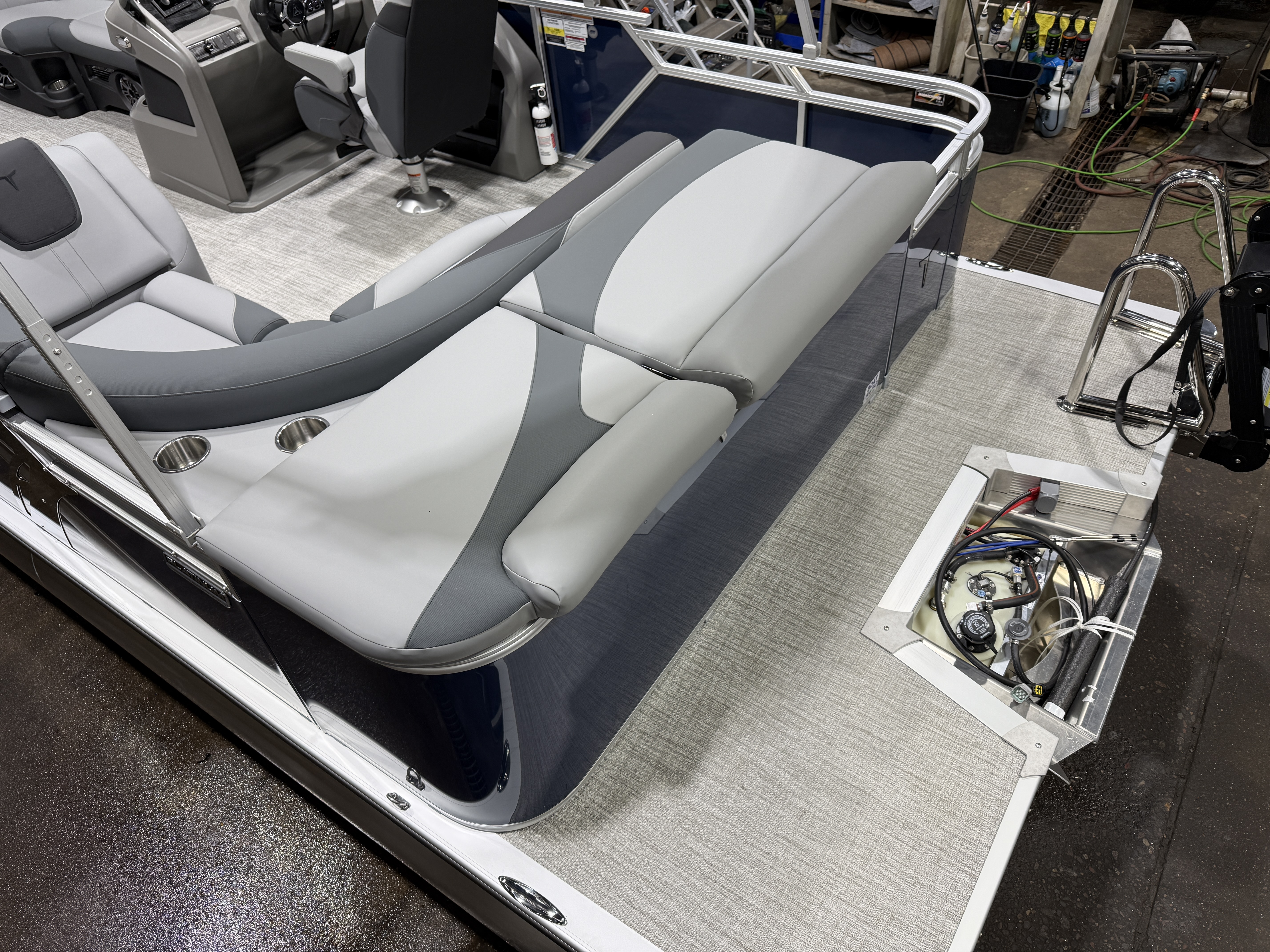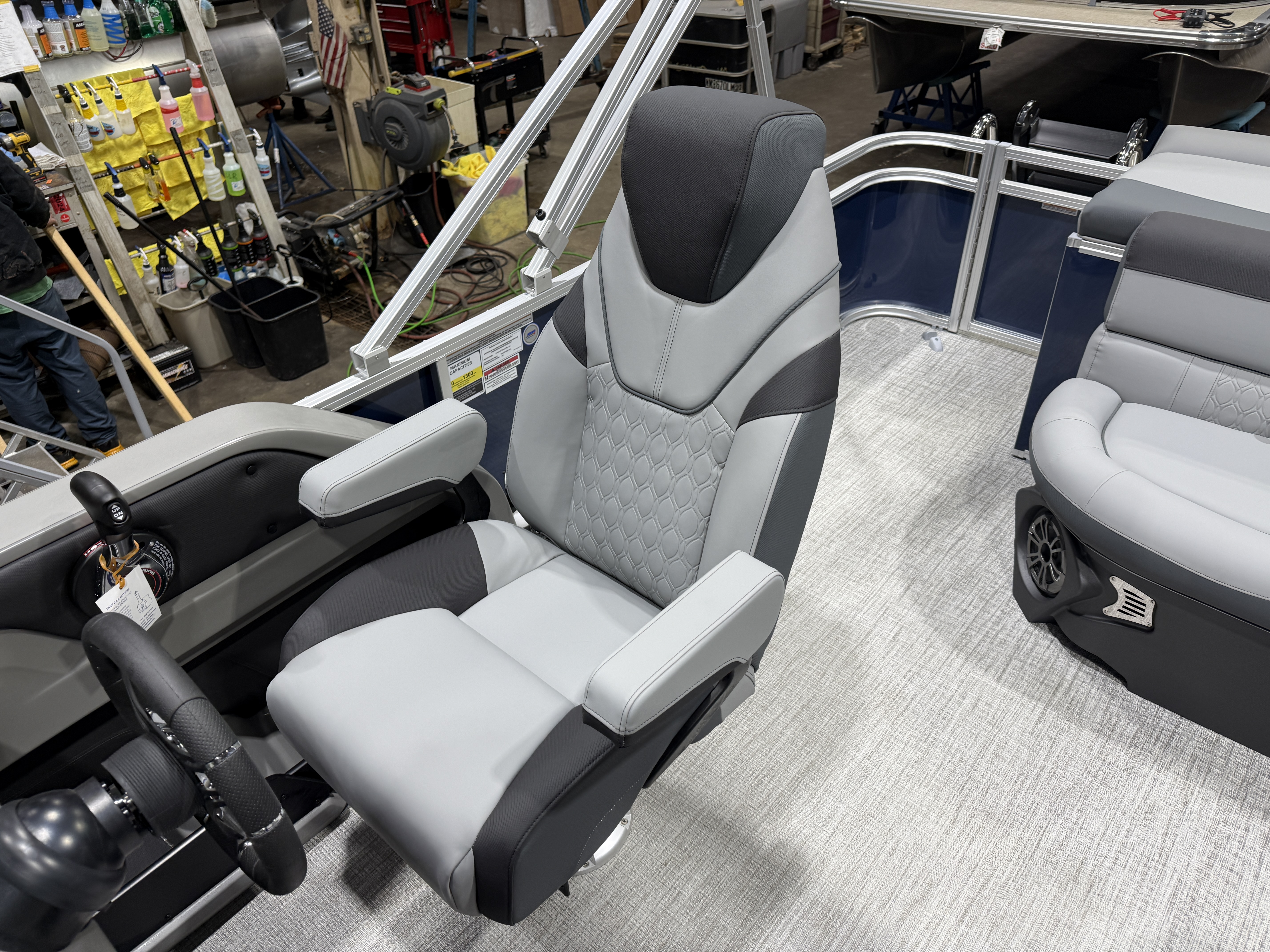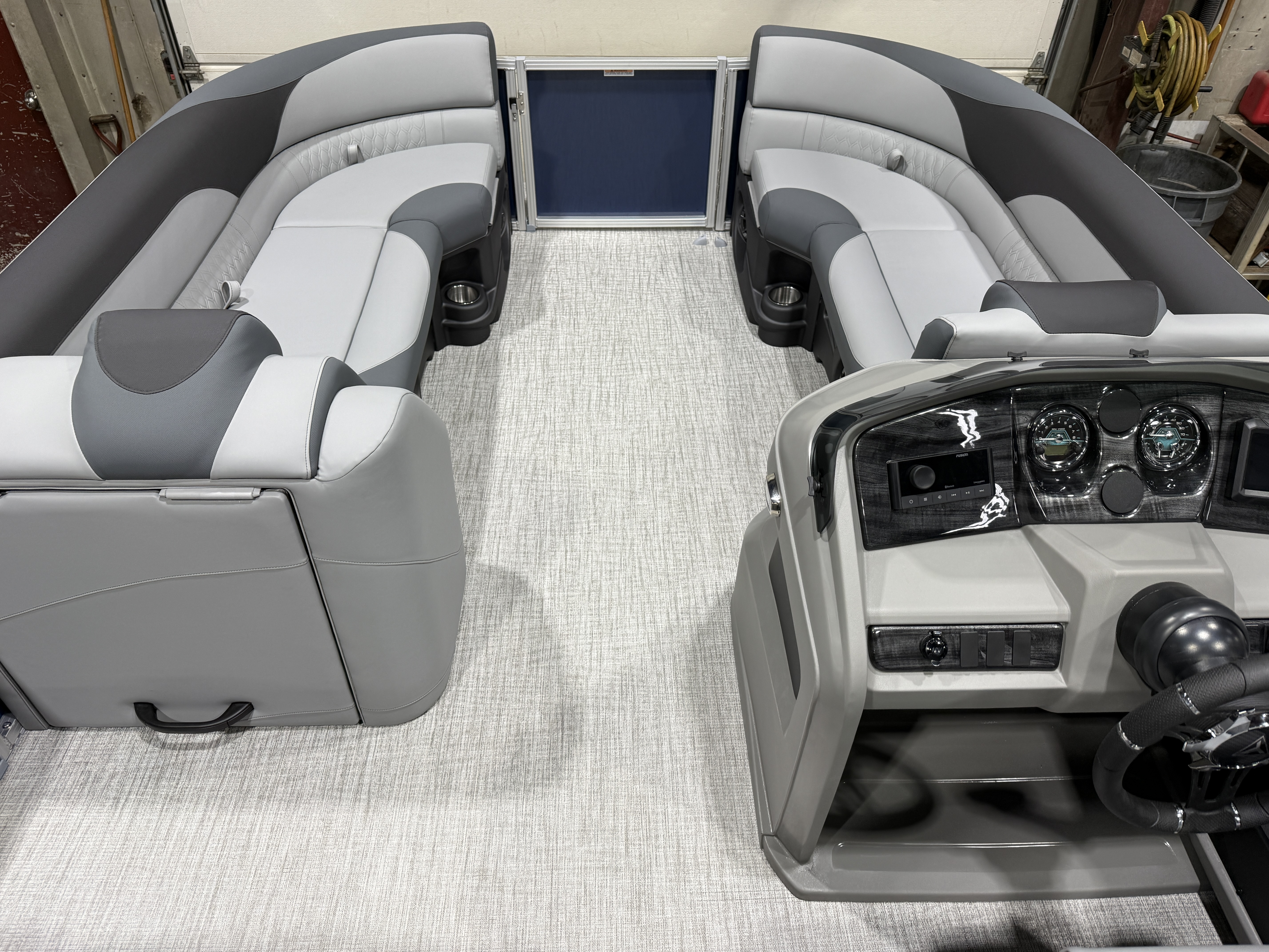 2026 Tahoe LTZ 2185 Cruise Pontoon & Honda 4-Stroke EFI. This 21' Cruise Pontoon Has 2 Lounge Bench Seating Up Front With Storage, Rear Wrap Around Chaise Lounge Seating With Storage, Rear Sun Pad/Storage, Riptide Vinyl Floor, Built-In 25 Gallon Gas Tank, LTZ Platinum Package (Ultra Fine Touch Vinyl Upgrade, Garmin 52CV GPS Depth Finder, SST Pull-Up Cleats, LED Smoked Docking Lights, SST Vent Covers, Polished Corner Caps, Platinum Edition Badging), Graphite Vinyl Package With Kool Fab Black & Charcoal Accent, LED Nav Lights, Gauge Package With Hour Meter, Bluetooth Fusion Radio With 6 Speakers & Amp, Tilt Steering, Lillipad Easy Step Ladder, Admiral Reclining Captain's Chair, Greywood Rectangle Table, Lifetime Aluminum Seat Frames, Mooring Cover, Adjustable Bimini Top, 25" Tubes, Multiple Cup Holders, Smoked Chrome Logos, Bow USB Charging Port, New Battery, Battery On/Off Switch, Front And Rear Swim Deck. Rated For 10 People.