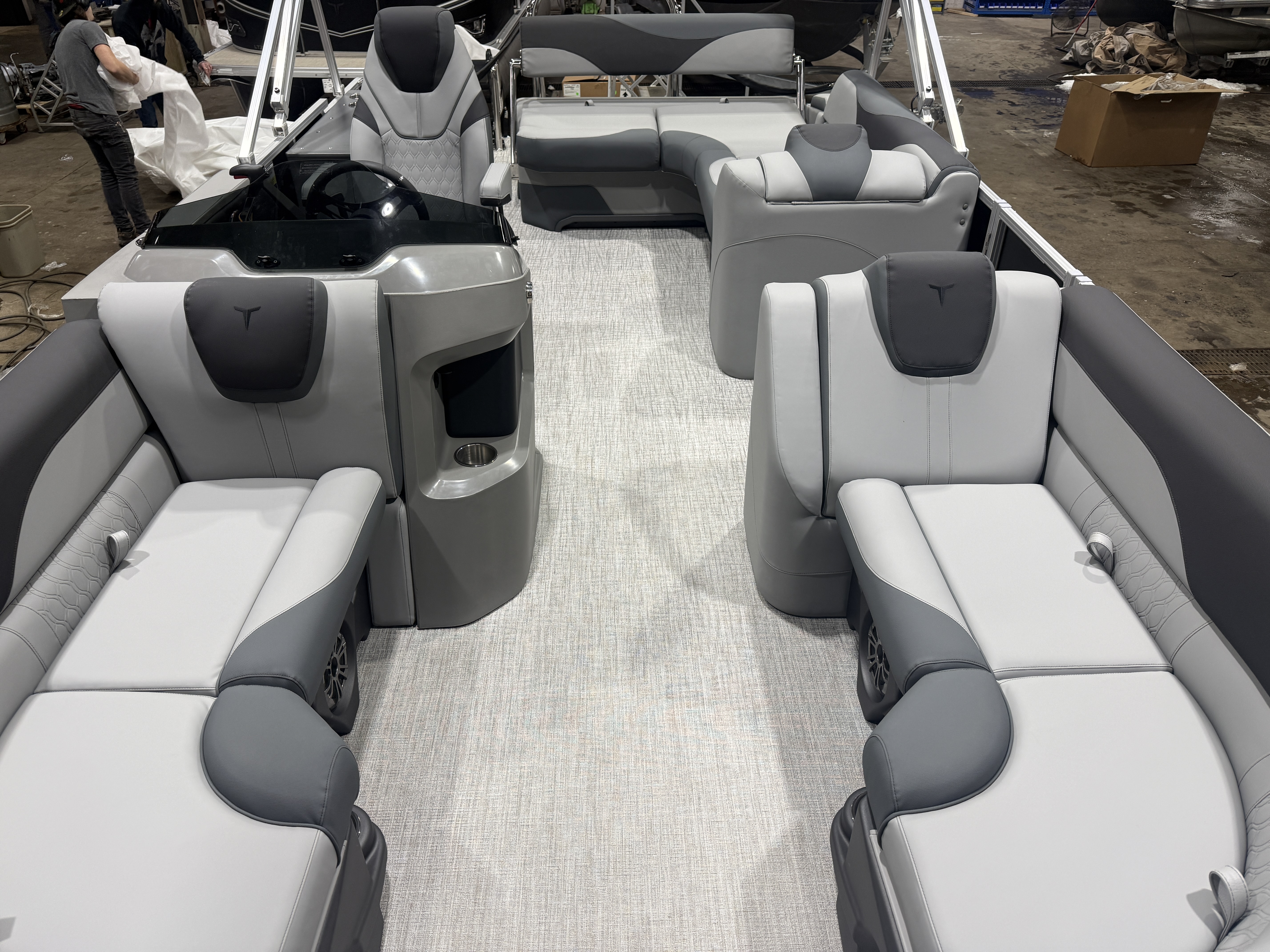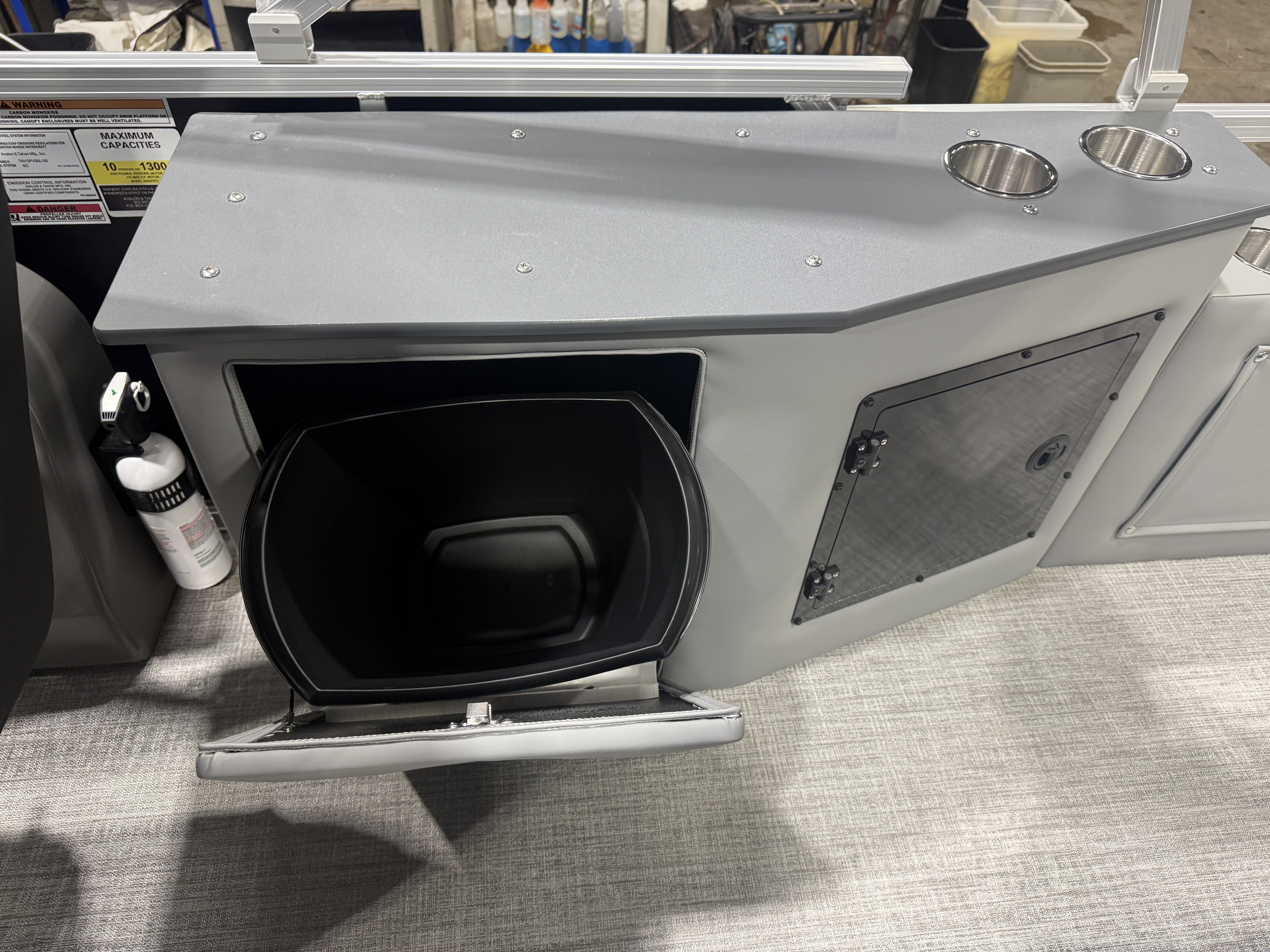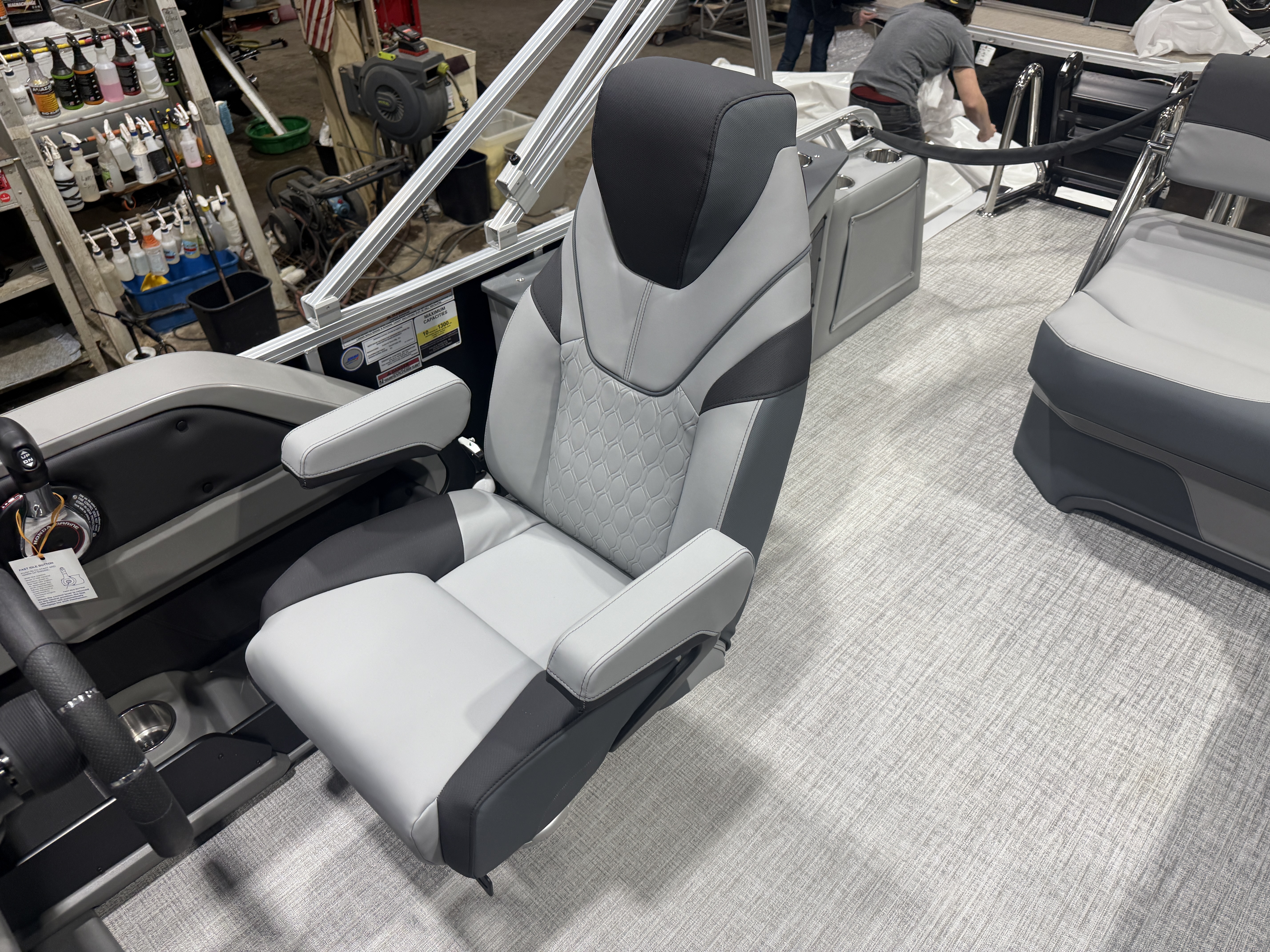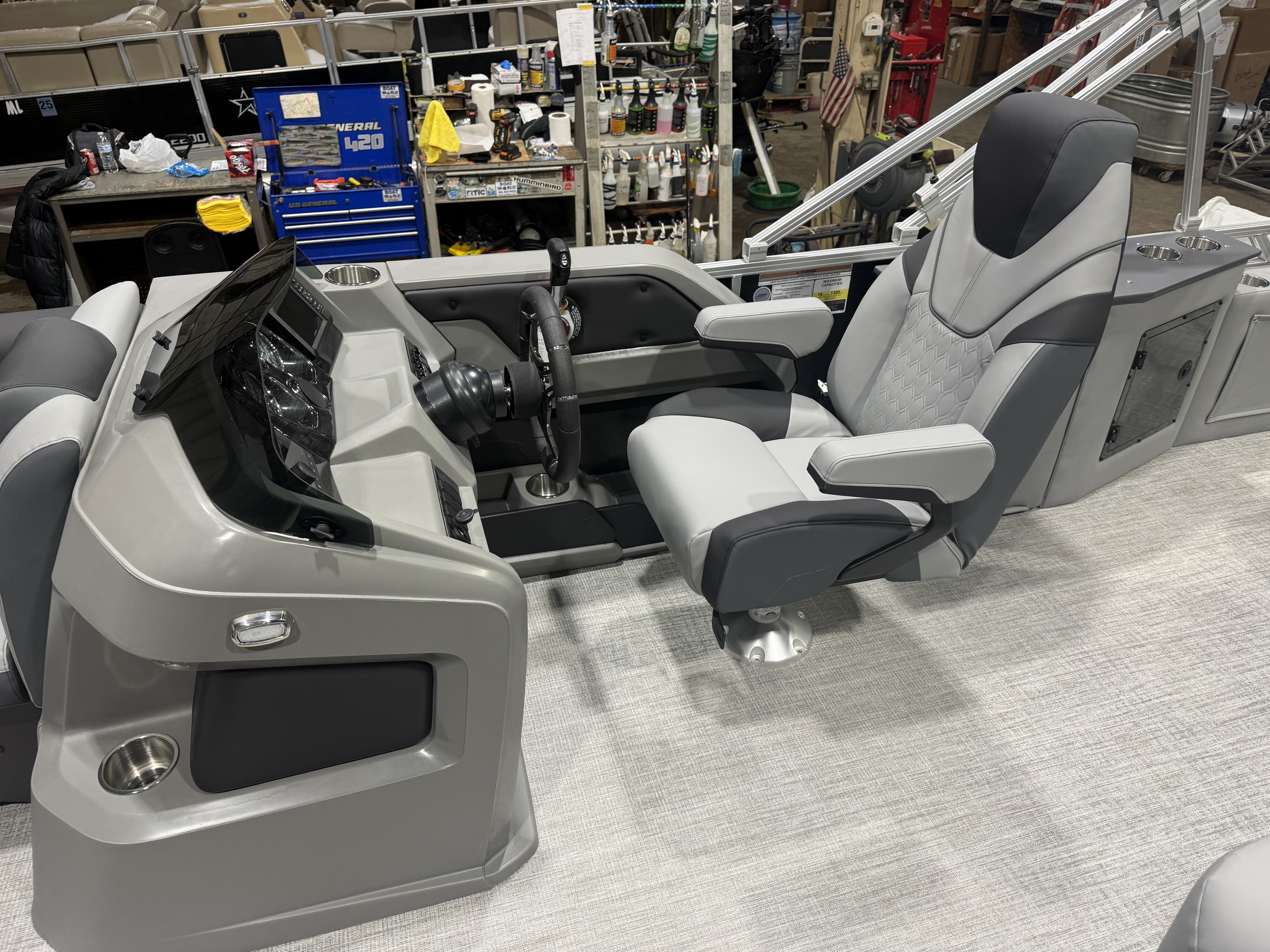 2026 Tahoe LTZ 2185 Cruise Rear Bench Pontoon & Honda 4-Stroke EFI. This Matte Black Walls Pontoon Has Chaise Lounge Bench Seating Up Front With Storage, Wrap Around Chaise Lounge Seating With Storage, High Back Reclining Admiral Captain's Chair, Graphite Interior Package w/Charcoal Accent, Rear Facing Swingback Bench Seat w/Chained Aft, Ski Tow Bar, Fusion Bluetooth Radio w/6 Speakers & Amp, Built In 25 Gallon Gas Tank, Table, Multiple Cup Holders, Adjustable 10' Bimini Top, LTZ Platinum Package (Ultra Fine Vinyl Upgrade, Garmin 52CV GPS Depth Finder, SST Pull-Up Cleats, LED Smoked Chrome Docklights, Polished Corner Caps, Platinum Edition Special Badging), Starboard Aft Storage & Cup Holders, SST Vent Covers, Lillipad Easy Step Ladder, Charcoal Cladding, New Battery And Prop, On/Off Battery Switch, Mooring Cover, Starboard Aft Support Box w/Built-In Trash Can, Riptide Vinyl Floor, Front And Rear Deck, 25" Tubes, LED NAV Lights, Smoked Chrome Logos, Tilt Steering, Bow USB Charging Port, Gauge Package w/Hour Meter. Rated For 10 People.