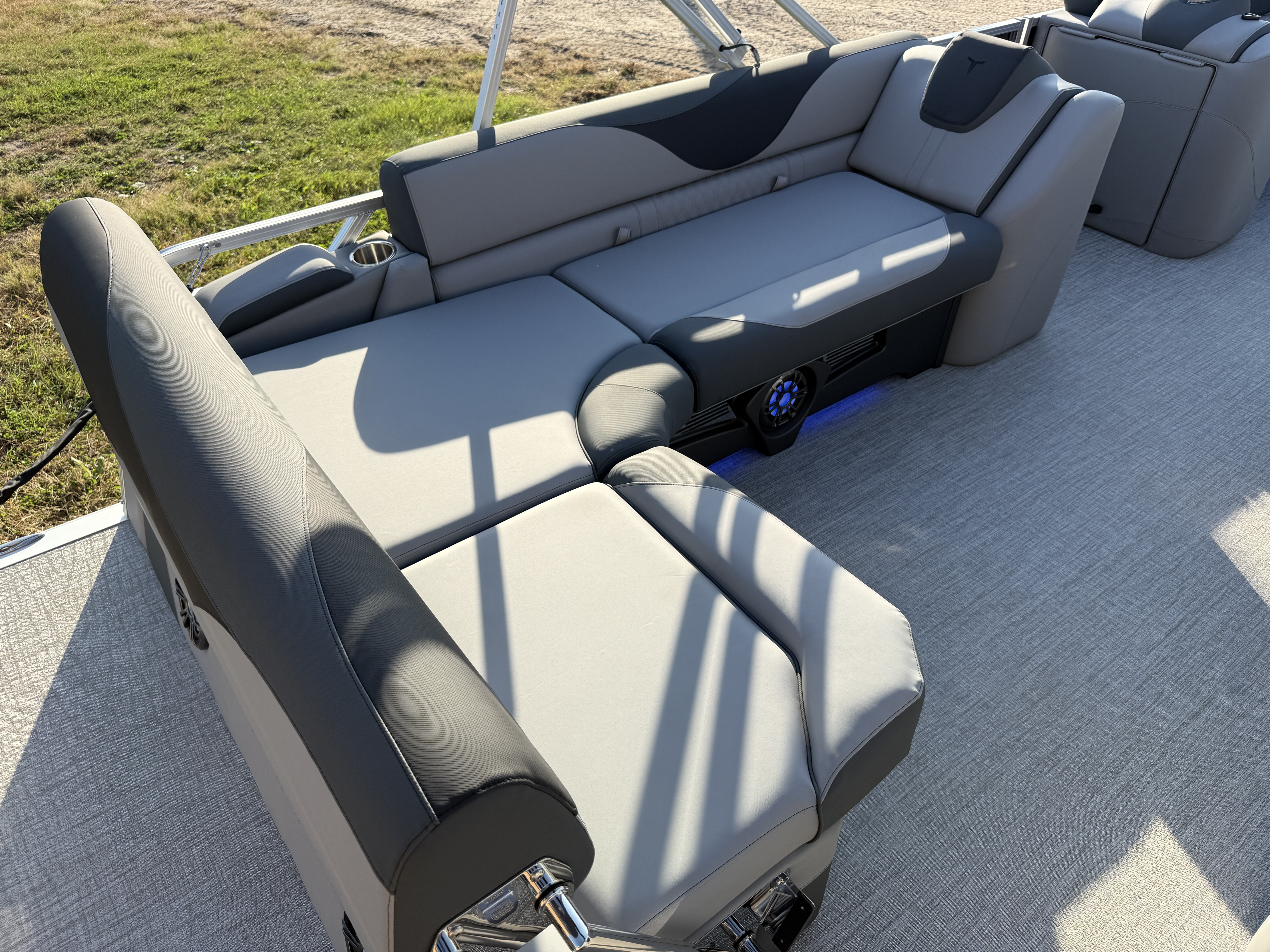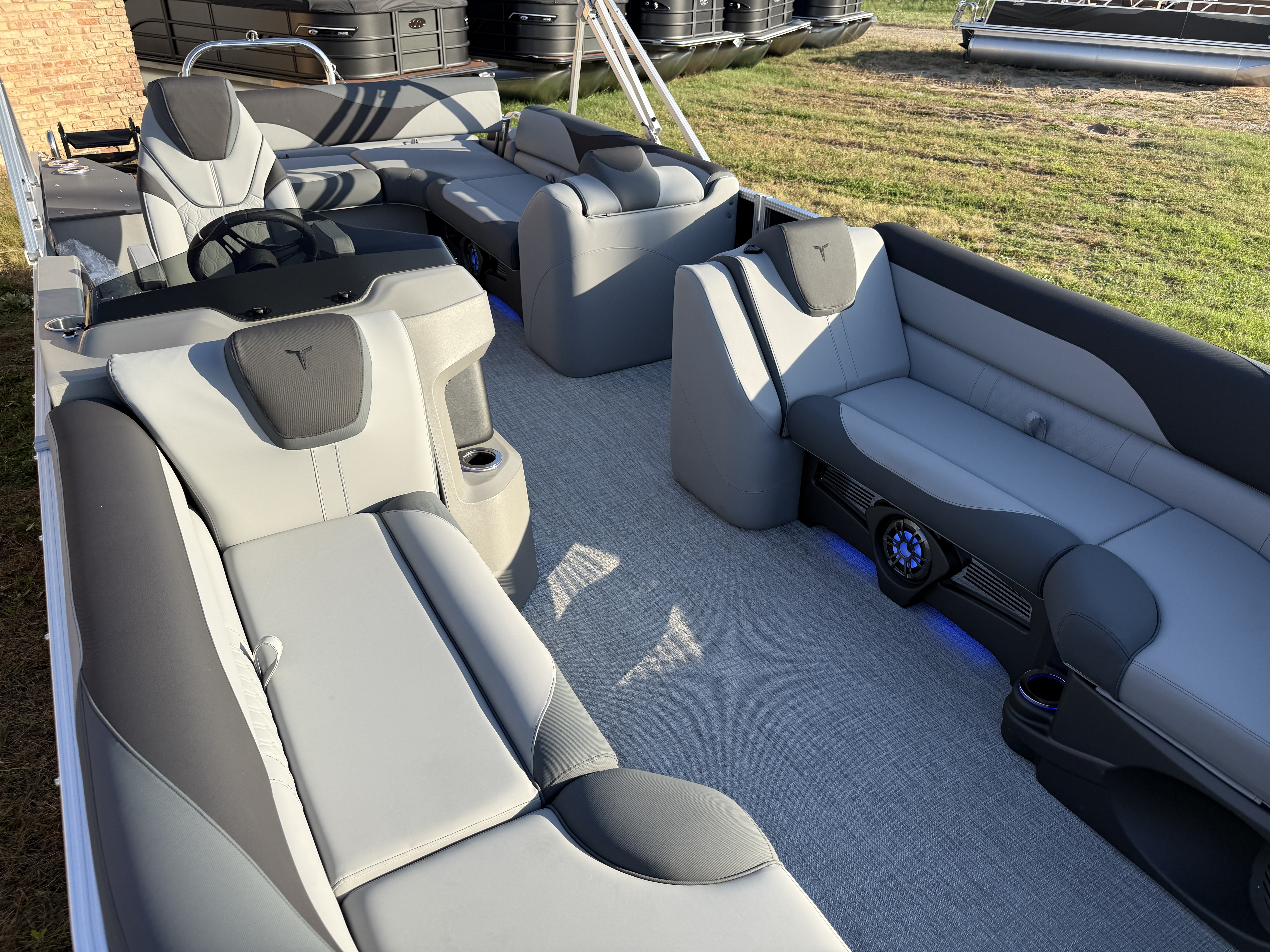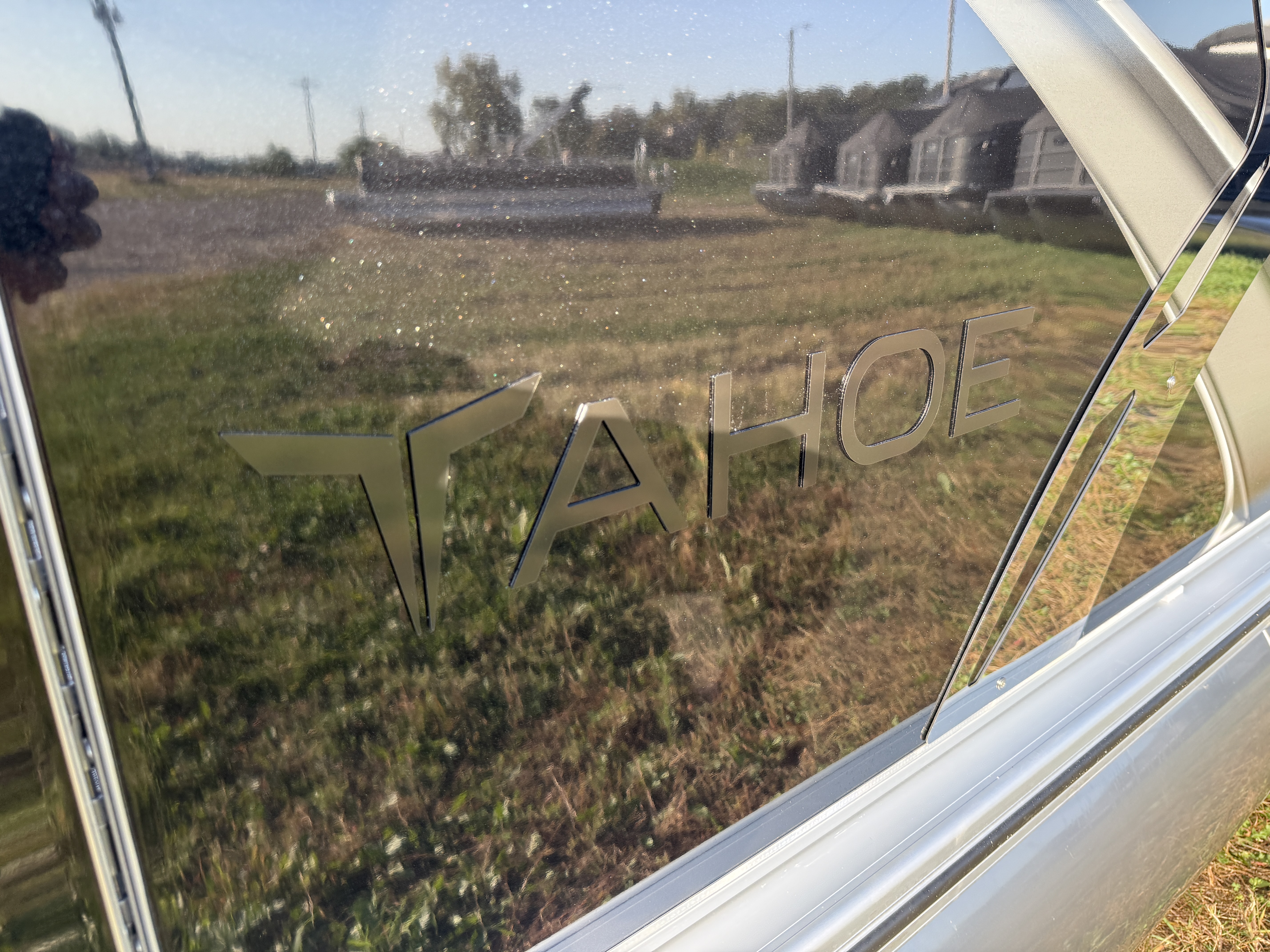 2026 Tahoe LTZ 2385 Cruise Rear Bench Tritoon Pontoon & Honda 4-Stroke EFI. This Tri-Toon Has Chaise Lounge Bench Seating Up Front With Storage, Huge Wrap Around Chaise Lounge Seating With Storage, High Back Reclining Admiral Captain's Chair, Graphite Interior Package w/Black Koolfab Vinyl, Rear Facing Swingback Bench Seat w/Chained Aft, Ski Tow Bar, Fusion Bluetooth Radio w/6 Speakers & Amp, USB Audio Input & Charge, Blue Ice Package, Built In 38 Gallon Gas Tank, Greywood Rectangle Table, Multiple Cup Holders, 10' Bimini Top, LTZ Platinum Package (Garmin 52CV GPS Depth Finder, SST Pull-Up Cleats, LED Smoked Chrome Docklights, Polished Corner Caps, SST Vent Covers, Platinum Edition Special Badging), Sport Performance Package, Starboard Aft Storage Center w/Garbage Can & Cup Holders, Lillipad Easy Step Ladder, Charcoal Cladding, New Battery And Prop, Riptide Vinyl Floor, Front And Rear Deck, Battery Selector, 25" Tubes, LED NAV Lights, Smoked Chrome Logos, Hydraulic Tilt Steering, Lifting Strakes, Aluminum Undersheeting, Bow USB Charging Port, Mooring Cover. Rated For 12 People.