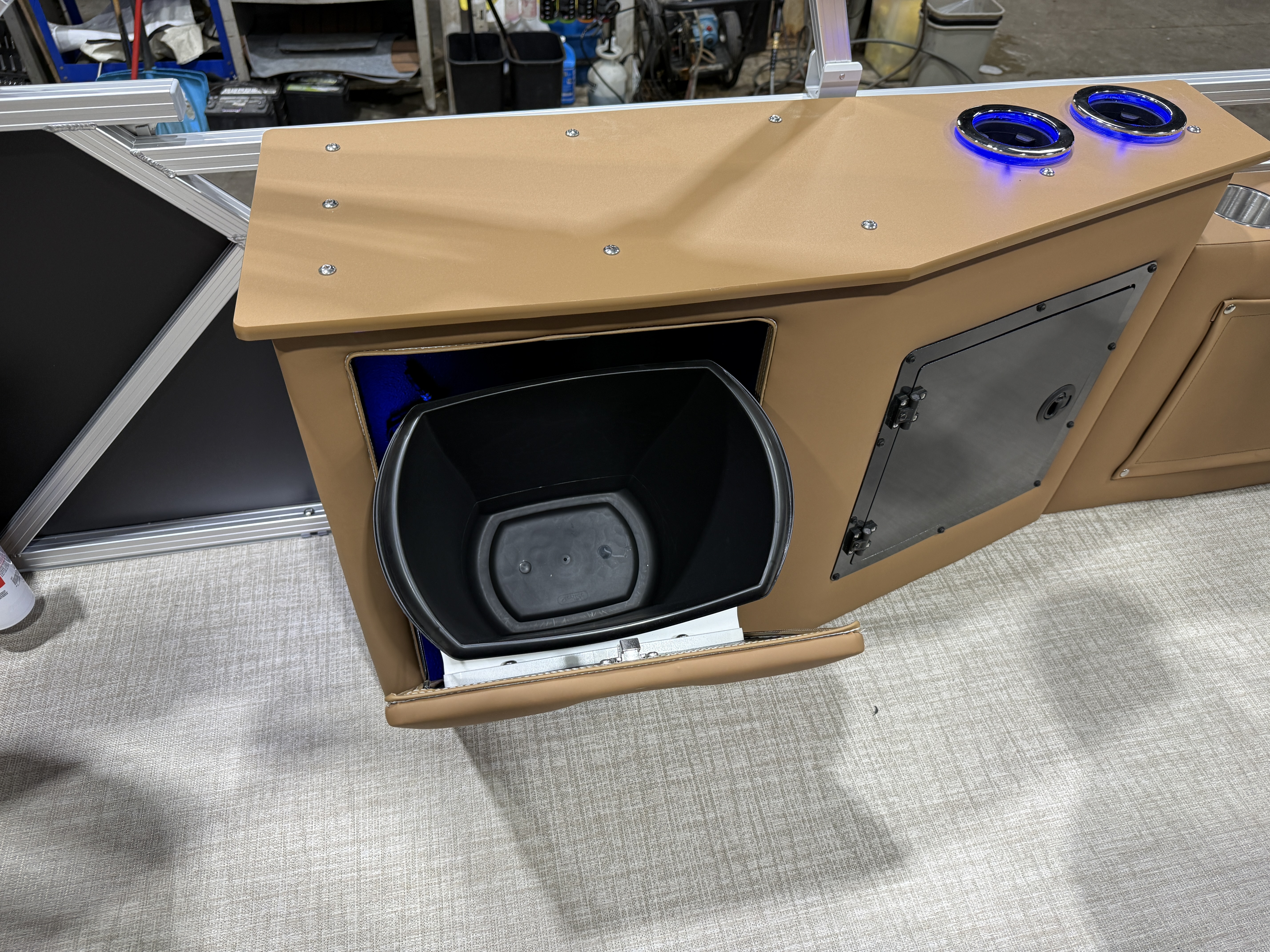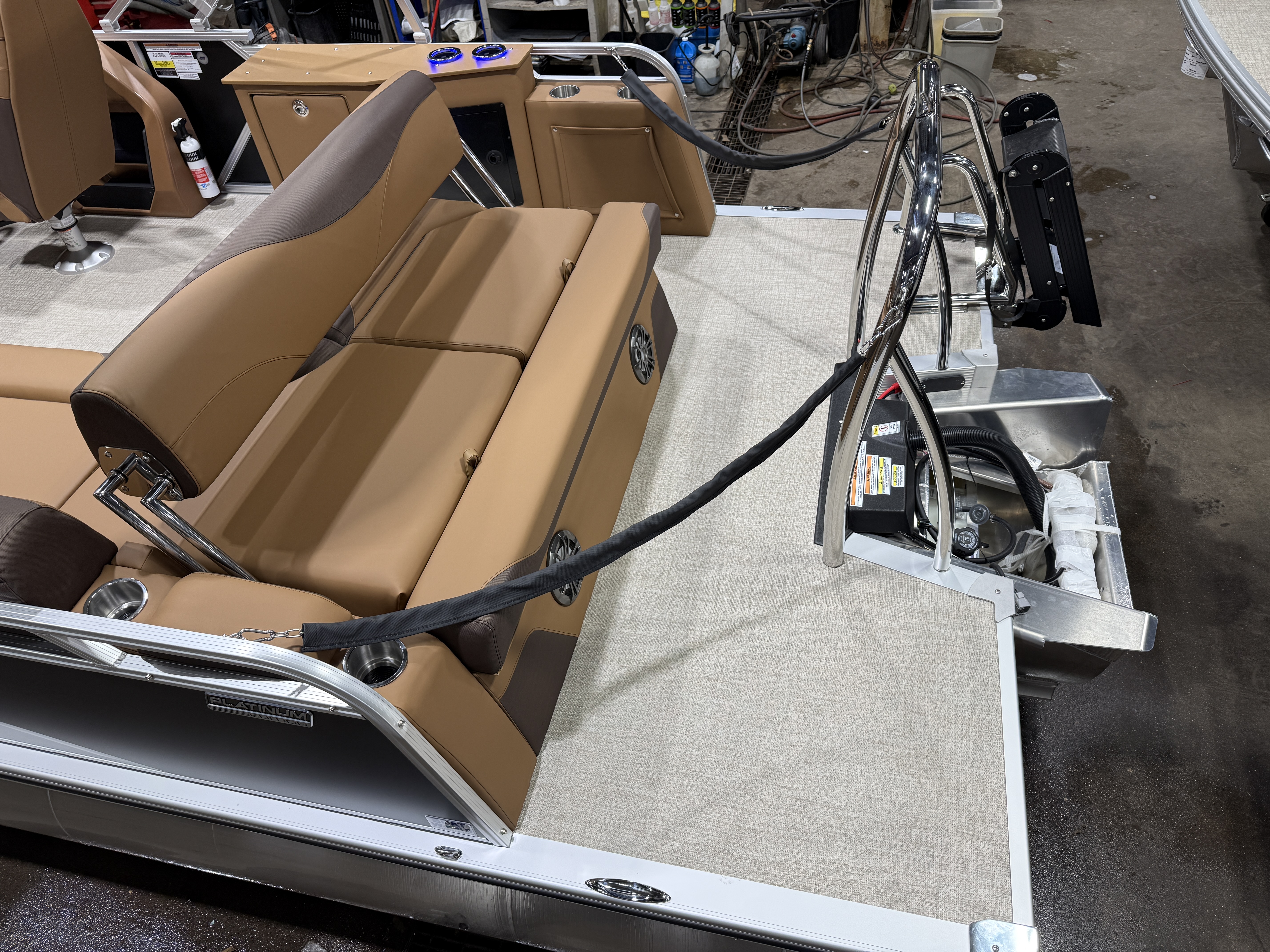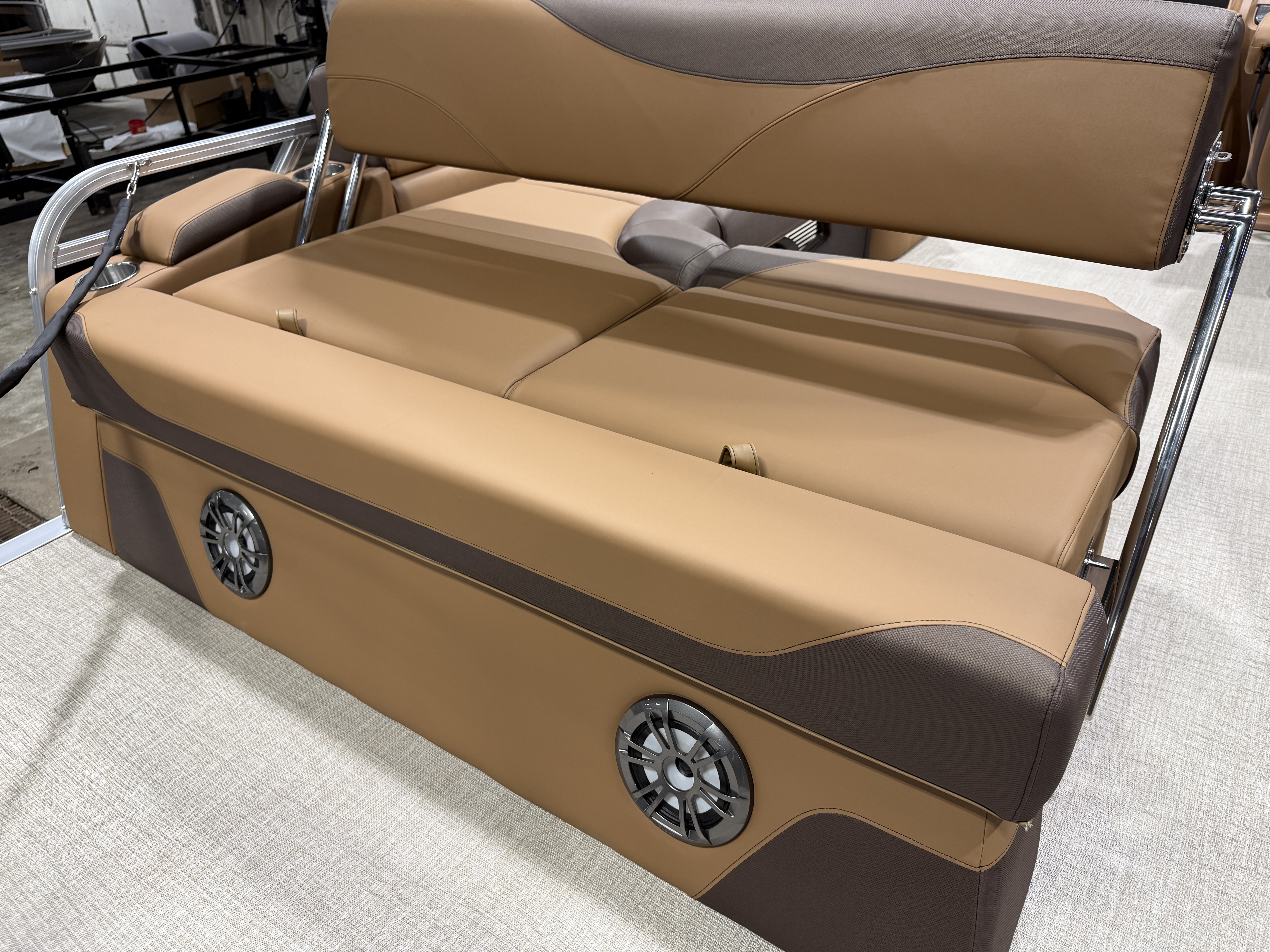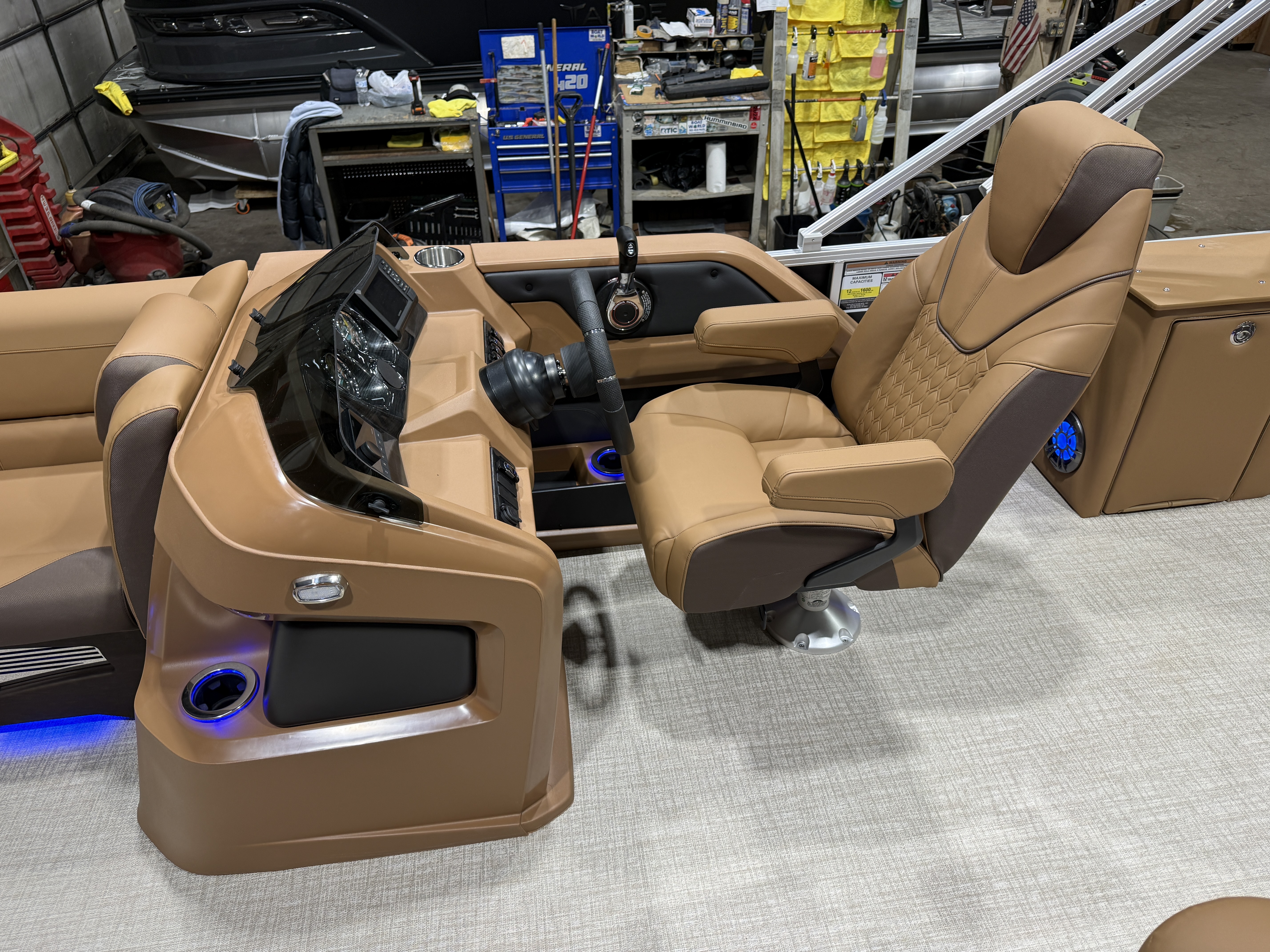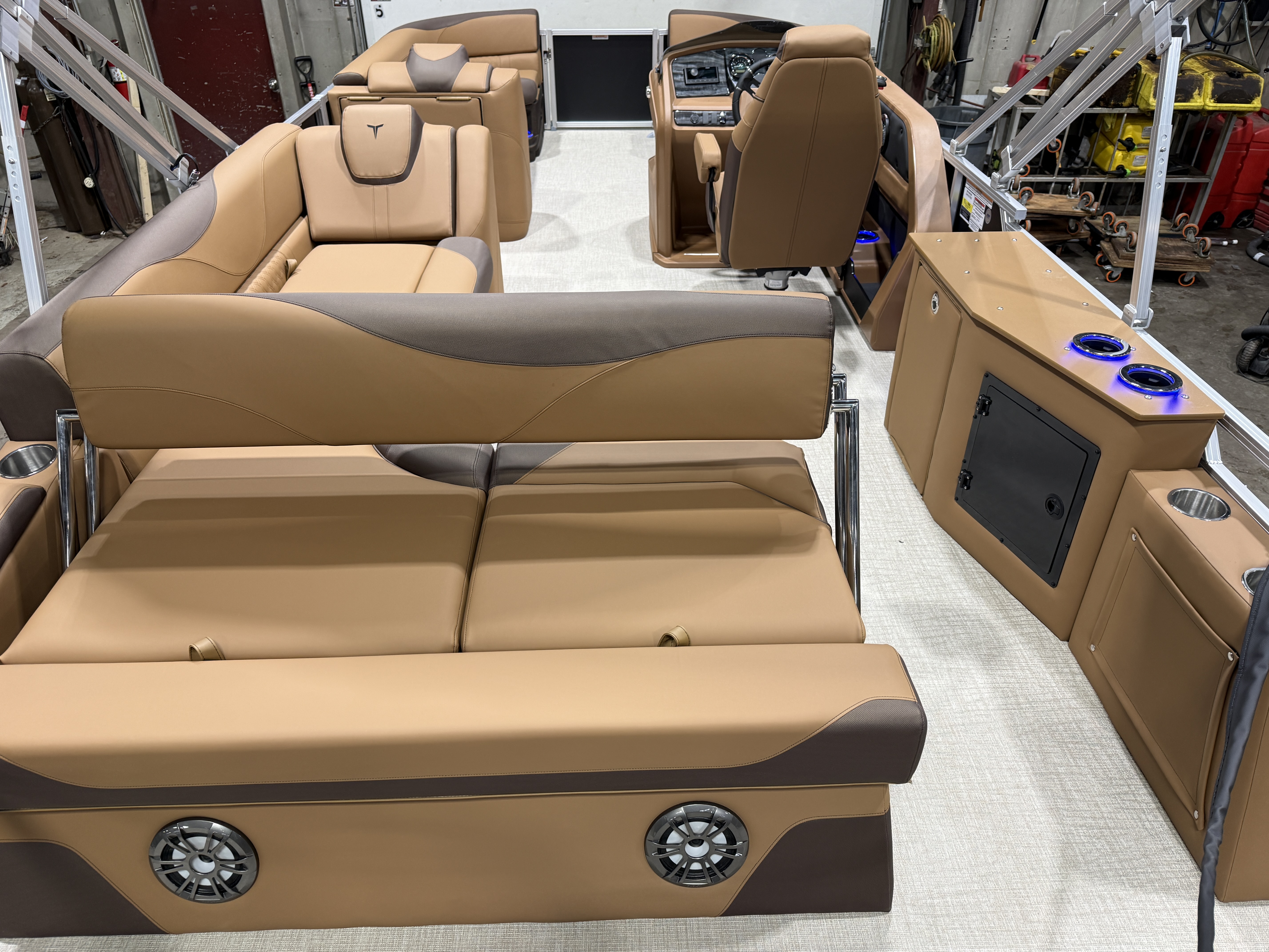 2026 Tahoe LTZ 2385 Cruise Rear Bench Tritoon Pontoon & Honda 4-Stroke EFI. This Tri-Toon Has Chaise Lounge Bench Seating Up Front With Storage, Huge Wrap Around Chaise Lounge Seating With Storage, High Back Reclining Admiral Captain's Chair, Cognac Interior Package w/Expresso Accent, Rear Facing Swingback Bench Seat w/Chained Aft, Ski Tow Bar, Fusion Bluetooth Radio w/6 Speakers & Amp, USB Audio Input & Charge, Blue Ice Package, Built In 38 Gallon Gas Tank, Greywood Rectangle Table, Multiple Cup Holders, 10' Bimini Top, LTZ Platinum Package (Garmin 52CV GPS Depth Finder, SST Pull-Up Cleats, LED Smoked Chrome Docklights, Polished Corner Caps, SST Vent Covers, Platinum Edition Special Badging), Sport Performance Package, Starboard Aft Storage Center w/Garbage Can & Cup Holders, Lillipad Easy Step Ladder, Brushed Bronze Cladding, New Battery And Prop, Riptide Vinyl Floor, Front And Rear Deck, Battery Selector, 25" Tubes, LED NAV Lights, Smoked Chrome Logos, Hydraulic Tilt Steering, Lifting Strakes, Aluminum Undersheeting, Bow USB Charging Port, Mooring Cover. Rated For 12 People.