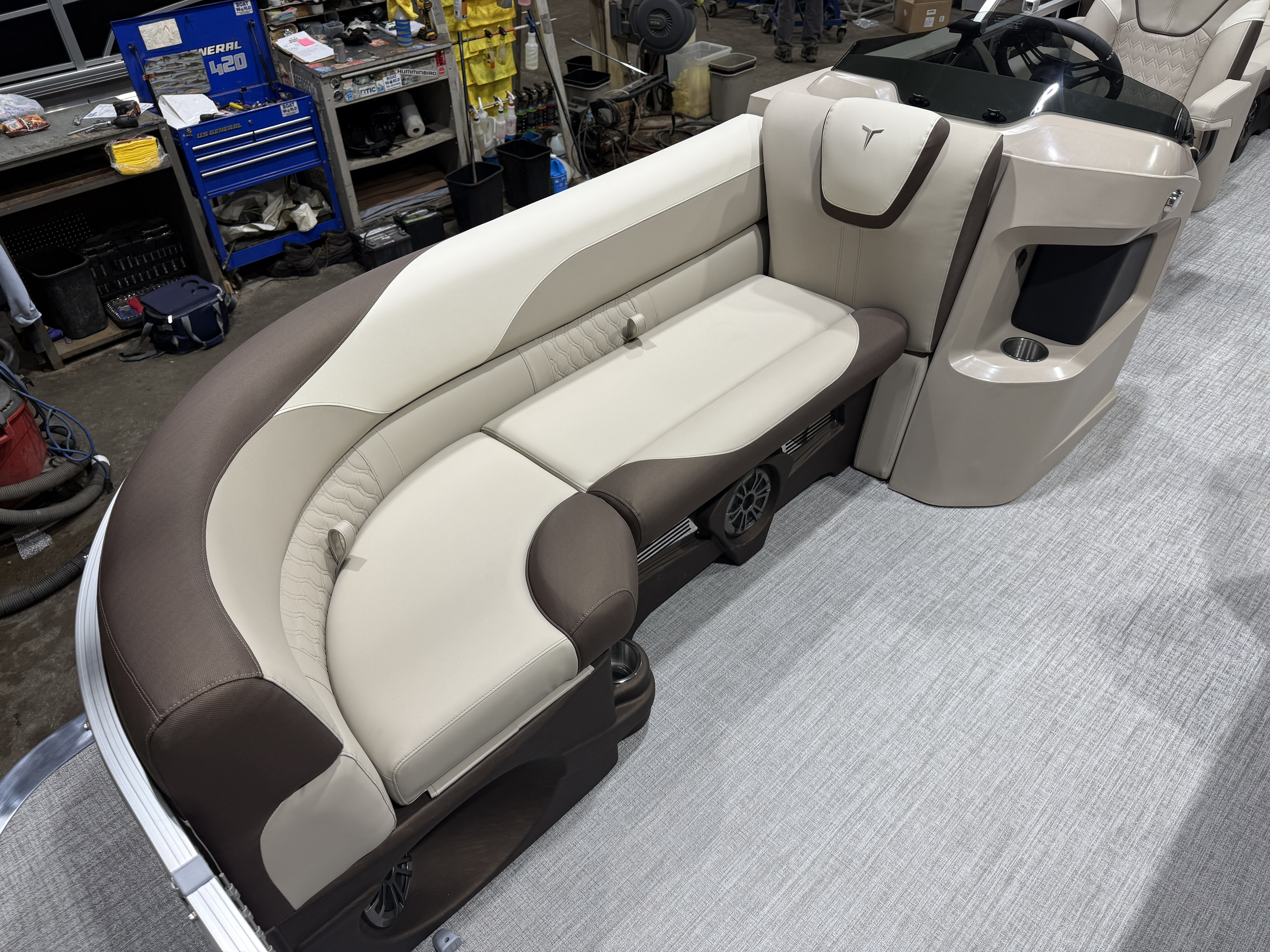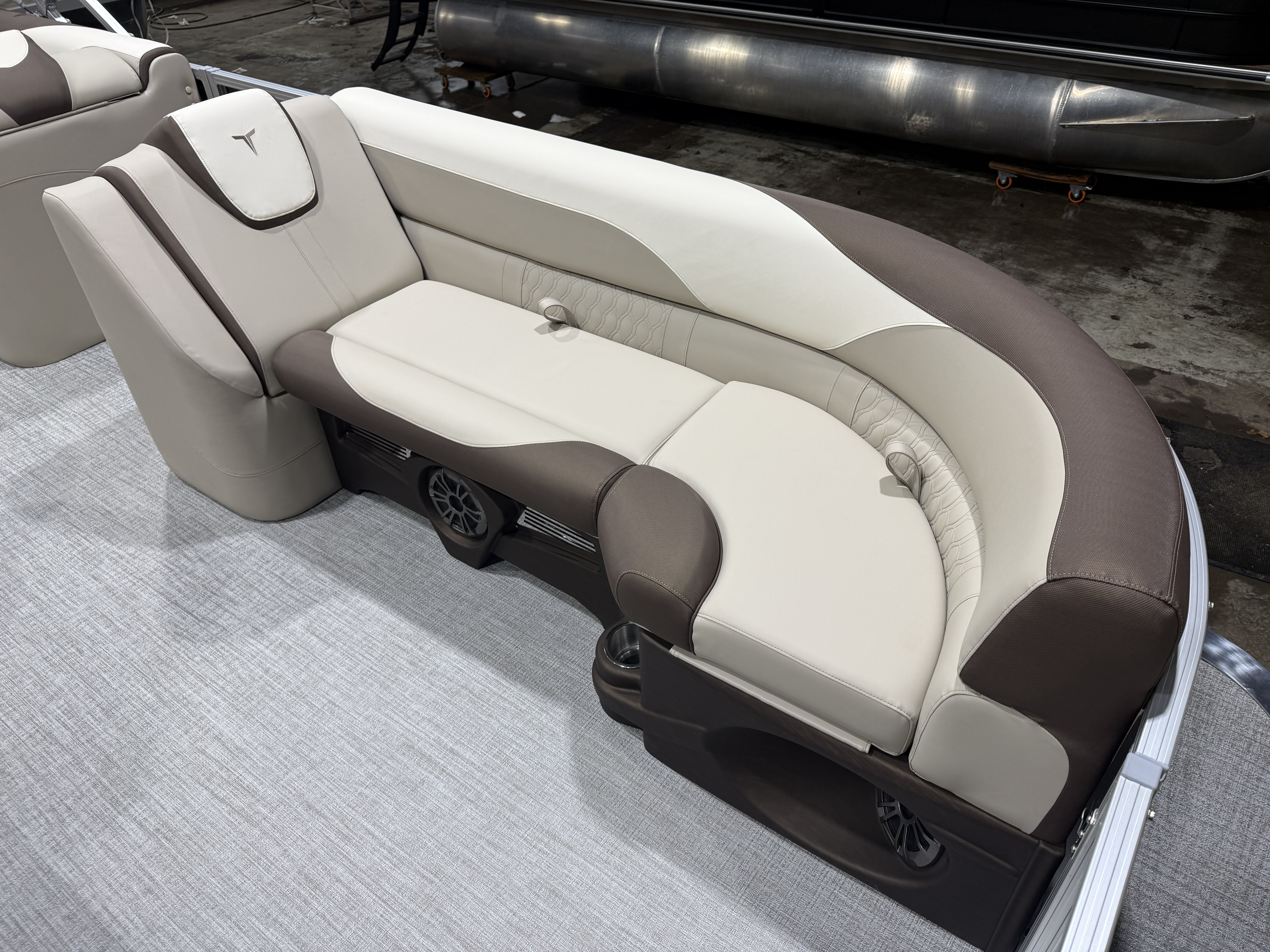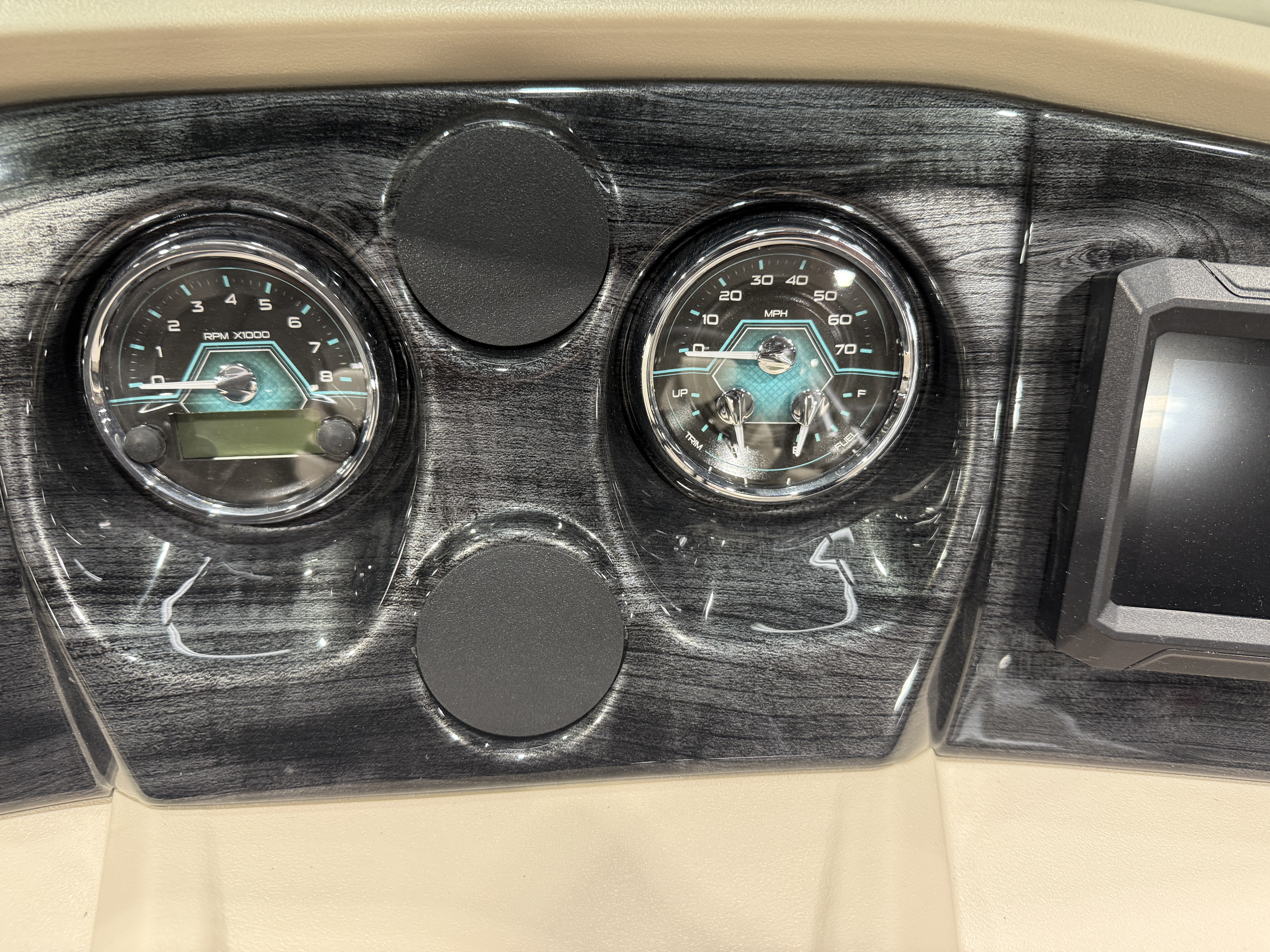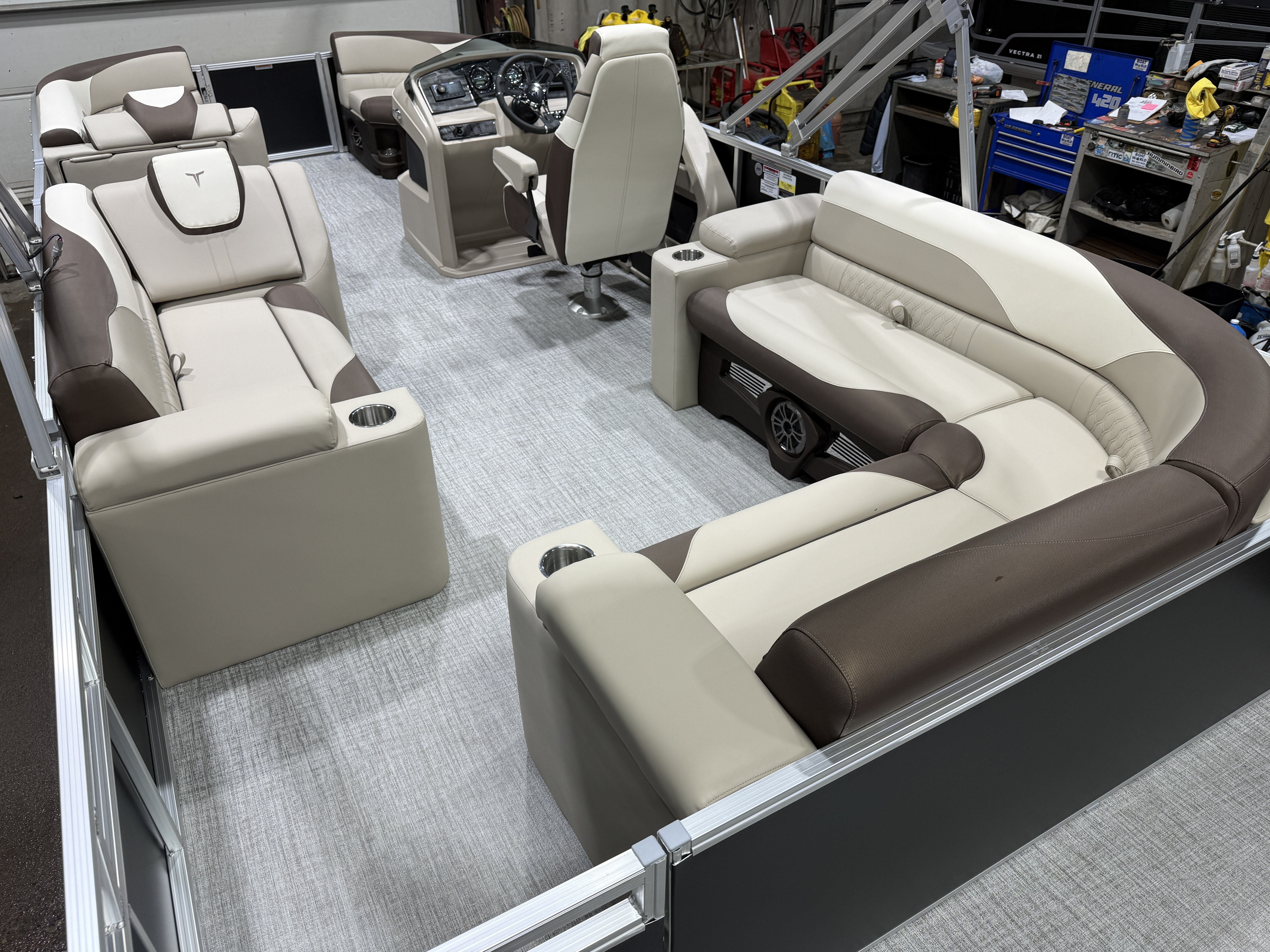 2026 Tahoe LTZ 2385 Elite Cruise Pontoon & Honda 4-Stroke EFI. This 23' Matte Black Walls Cruise Pontoon Has 2 Lounge Bench Seating Up Front With Storage, Side Chaise Lounge Seating With Storage (Great Spot For The Spotter), Rear Wrap Around Lounge Seating, Riptide Vinyl Floor, Built-In 25 Gallon Gas Tank, LTZ Platinum Package (Admiral Reclining Captain's Chair, Ultrafine Touch Vinyl Upgrade, Garmin 52CV GPS Depth Finder, SST Pull-Up Cleats, LED Smoked Docking Lights, SST Vent Covers, Polished Corner Caps, Platinum Edition Special Badging), Mooring Cover, Buckskin Vinyl Package w/Expresso Accent, LED Nav Lights, Gauge Package With Hour Meter, Bluetooth Fusion Radio With 6 Speakers & Amp, Tilt Steering, Lillipad Easy Step Ladder, Greywood Rectangle Table, Lifetime Aluminum Seat Frames, Adjustable 10' Bimini Top, 25" Tubes, Multiple Cup Holders, Battery Switch, Bow USB Charging Port, Smoked Chrome Logos, New Battery, Front And Rear Swim Deck. Rated For 11 People.